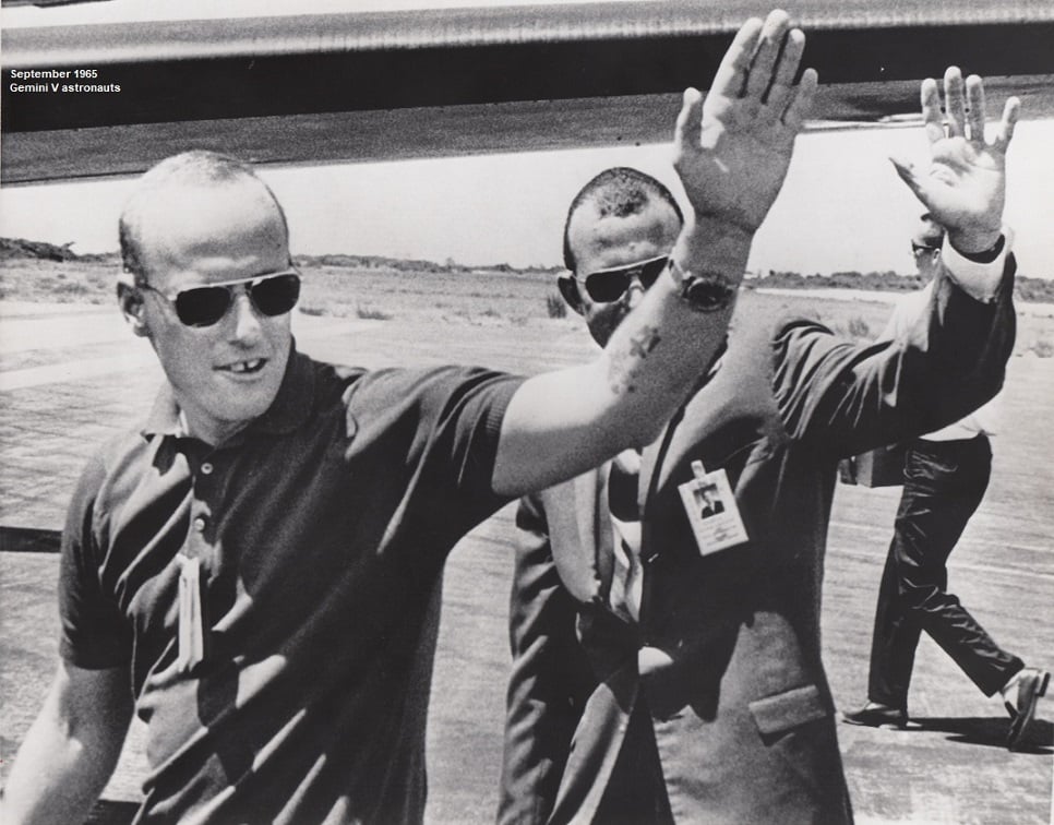 路September 1965... post-flight Gemini V, astronauts Charles Conrad and Gordon Cooper boarded a plane to leave Cape Canaveral Florida for the Manned Spacecraft Center in Houston Texas. Astronaut Charles "Pete' Conrad, more than probably the first astronaut with a tattoo to fly in space described the mission as " 8 days in a garbage can "...