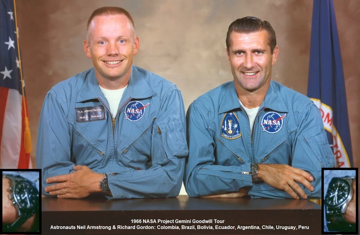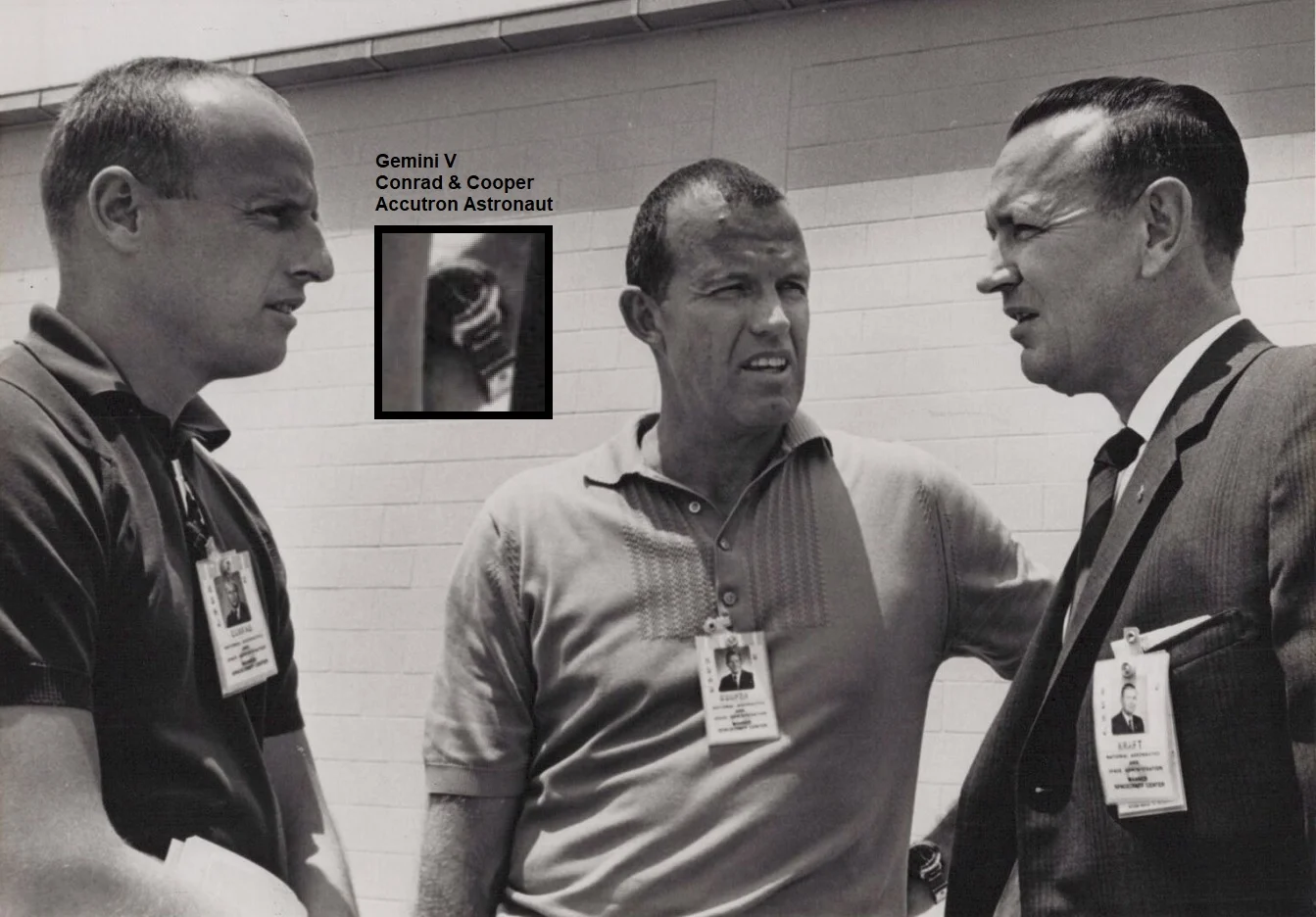 The second photo shows Cooper wearing an Accutron Astronaut, which he also wore during Gemini V, a mission Pete Conrad recalled as " 8 days in a garbage can!".