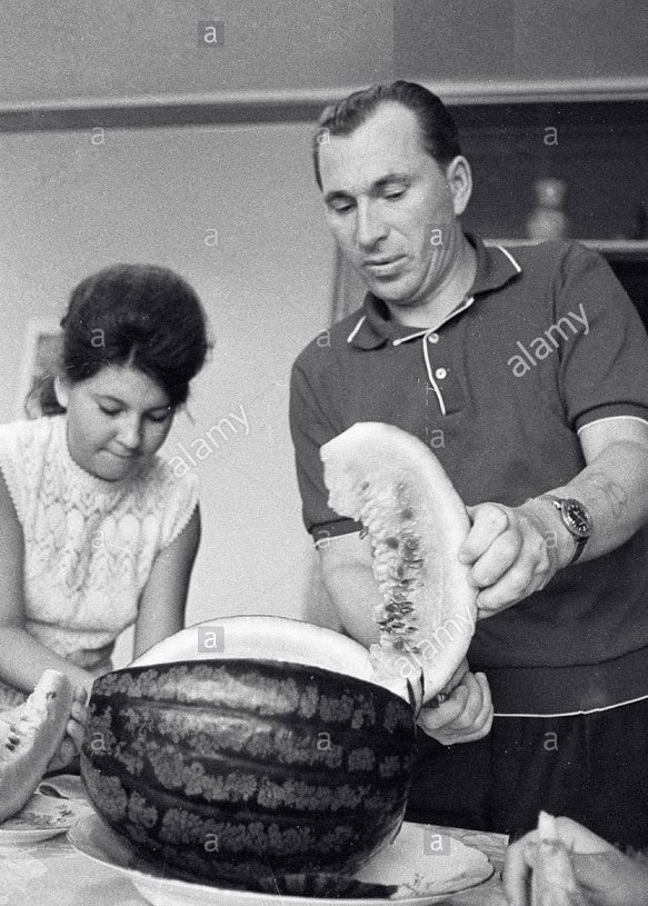 This is a photo of cosmonaut Belyayyev wearing the Accutron Astronaut microsonic GMT pilot watch at home with his daughter in September 1967.