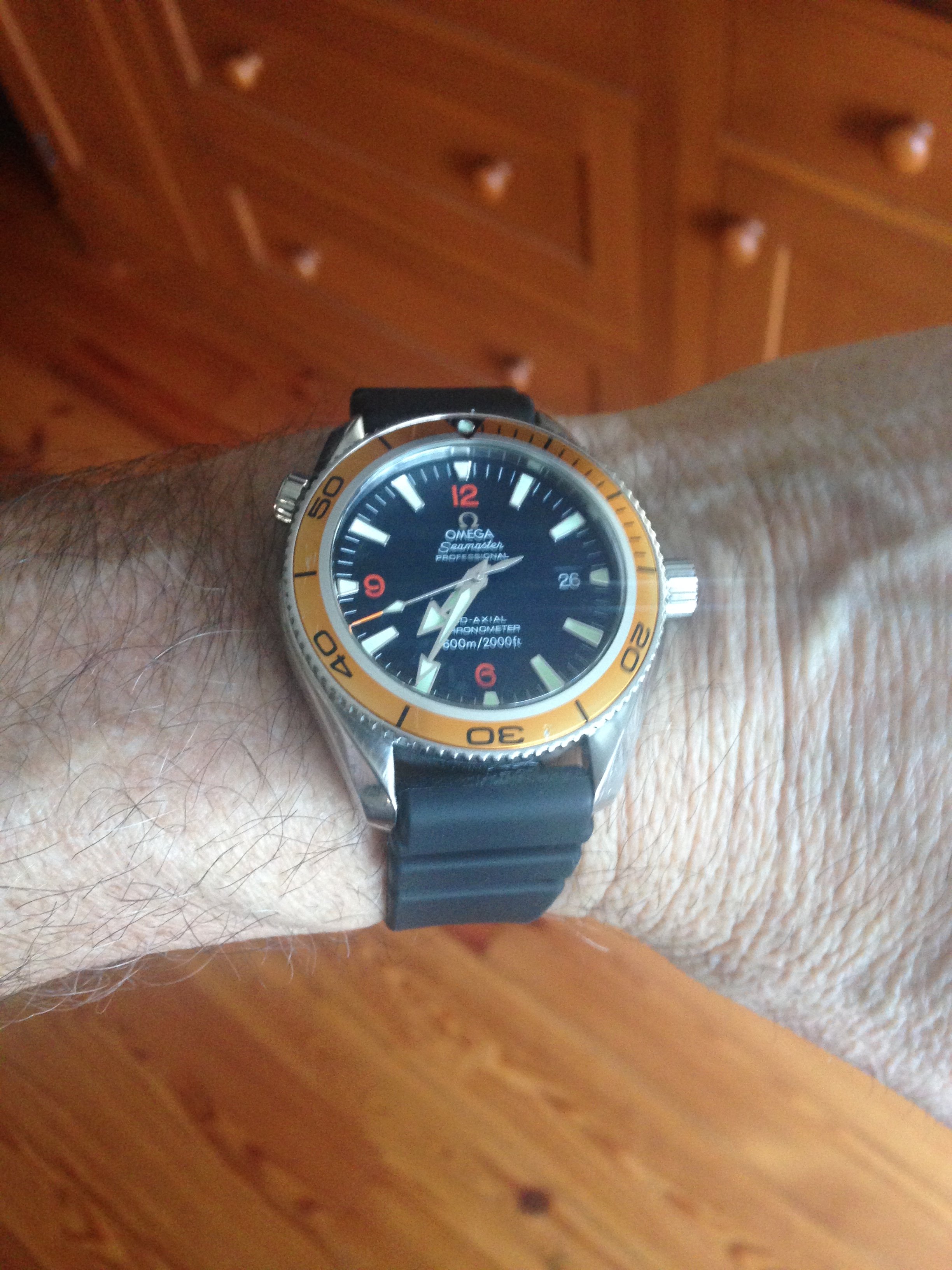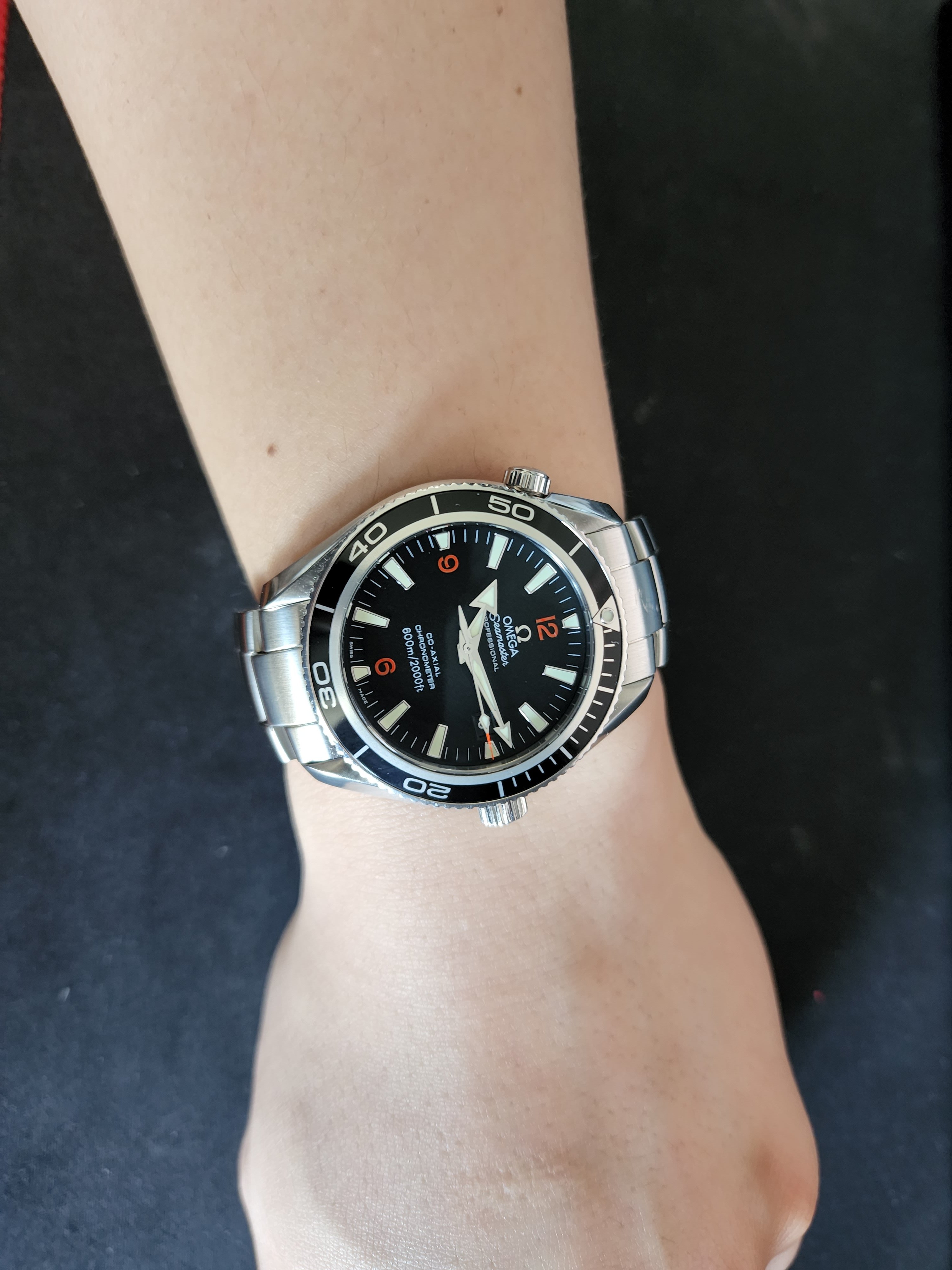 This is my 1st generation planet ocean 42mm(2201.51) with orange indices. I have a small 6.25 wrist with flat top wrist. I think it fits my small wrist well. I havent been using this watch alot lately and i think i need to start using it again.