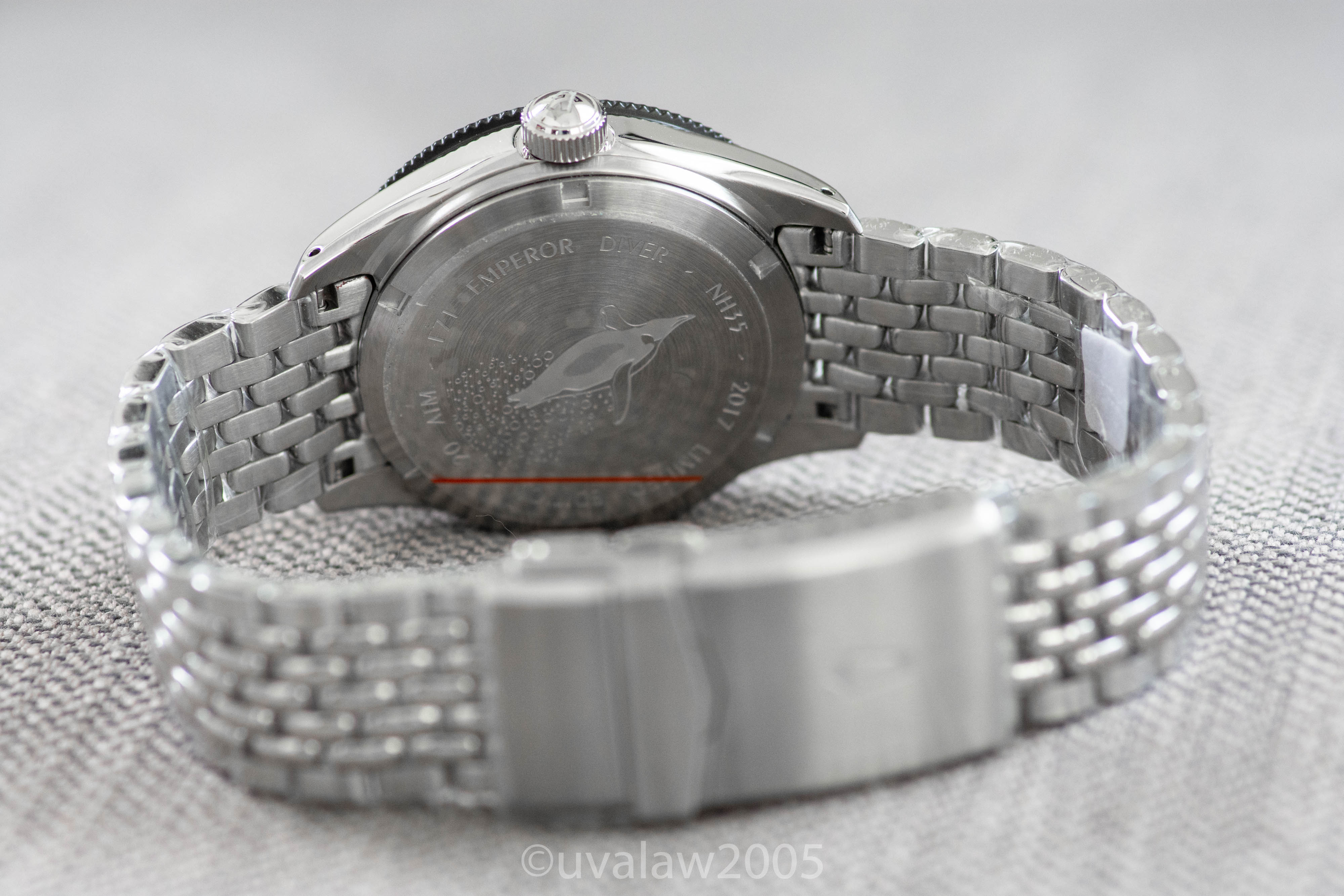 - Crown: Signed, Screw Down Caseback: Screw Down Stainless Steel, Etched Emperor Penguin Logo
