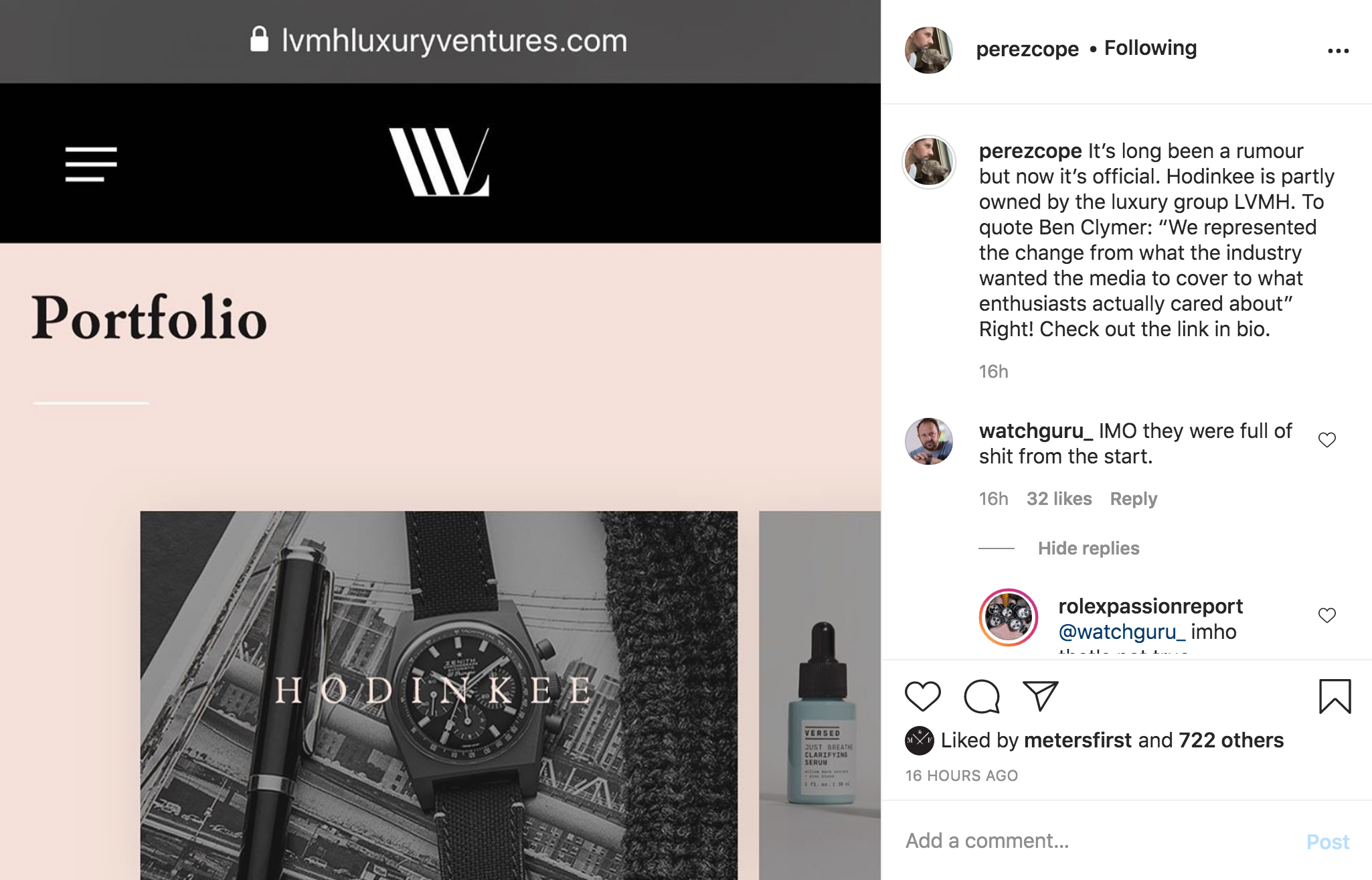 路Have you all noticed the chatter about LVMH being investors in Hodinkee? I first noticed it on Perezscope's IG account: