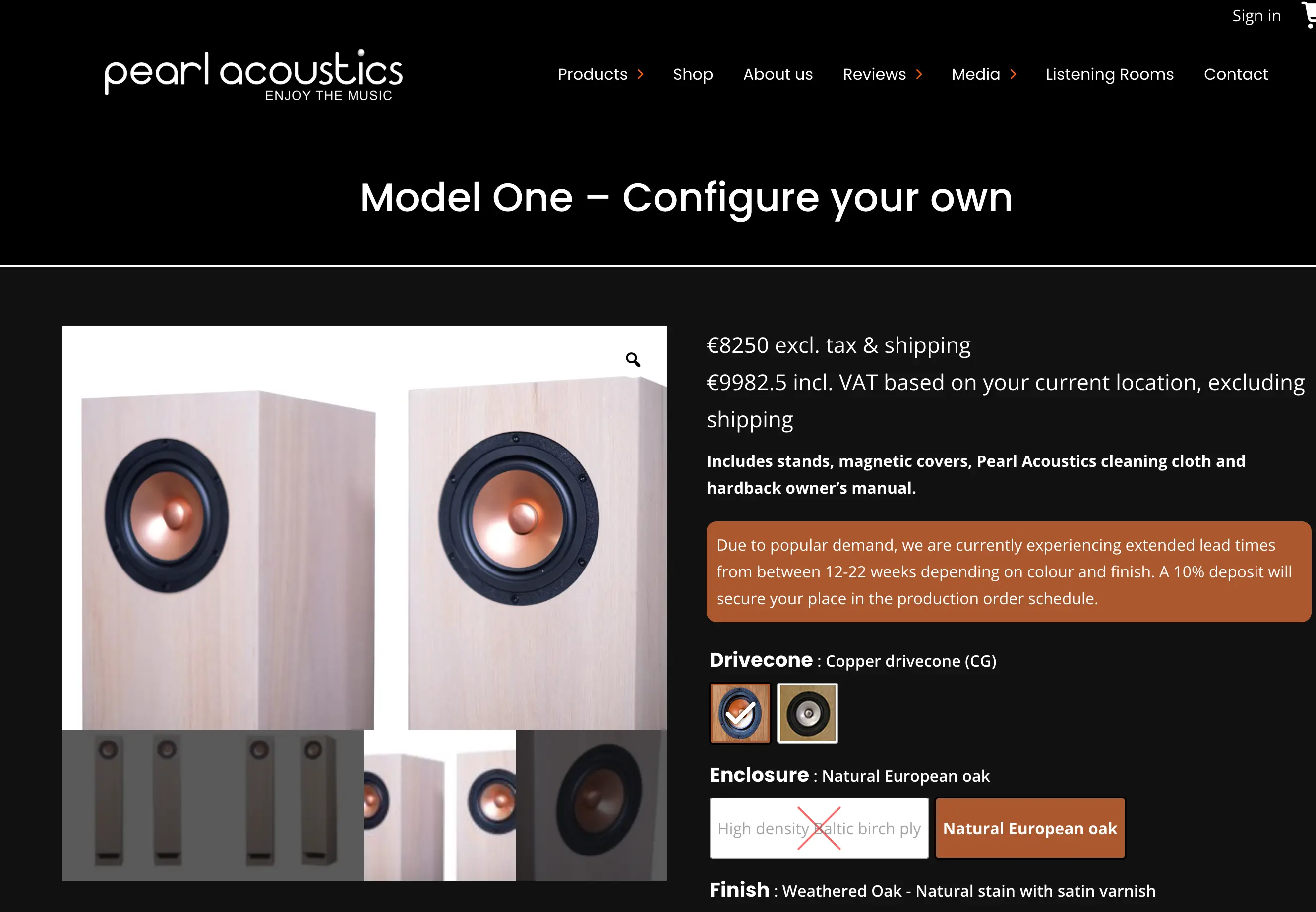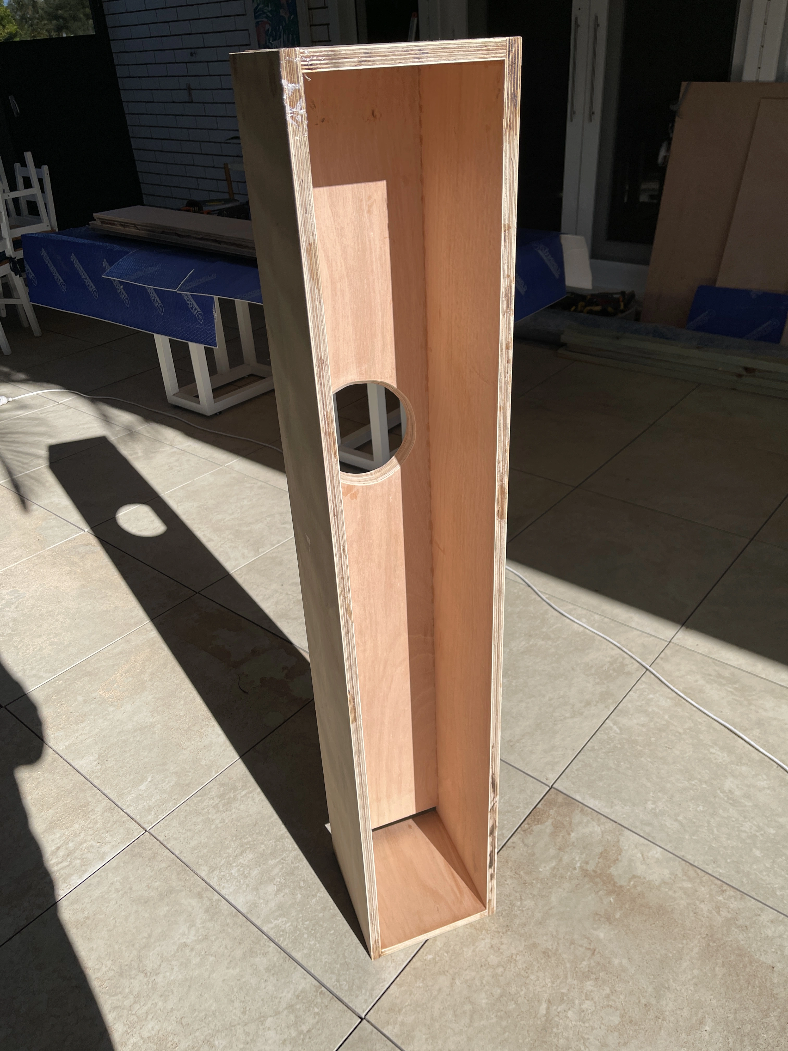For the speakers we wanted something with a smaller footprint that can be placed up against a wall. Eventually, I decided on the Sea Stack ML-TL by Woden Design with front-facing port. Around 1.4 m (about 4 ft 7 in) tall, but footprint is only 25x25cm(10x10in). We’re going for a narrow tower design instead of a bookshelf speaker + stand, as it occupies a similar amount of space while offering extended bass response. This design uses the single Alpair wideband driver, so doesn't require any crossover electronics.