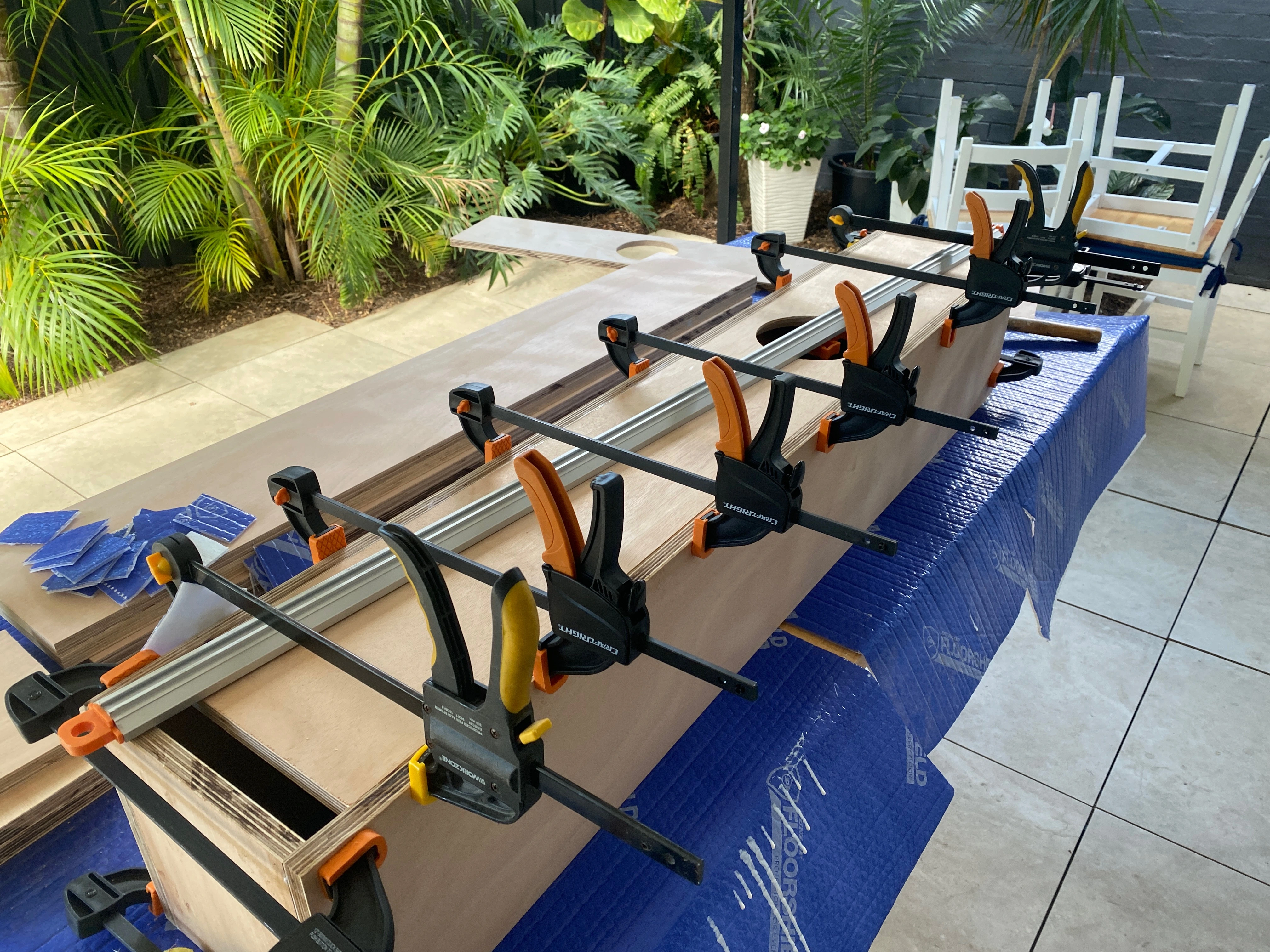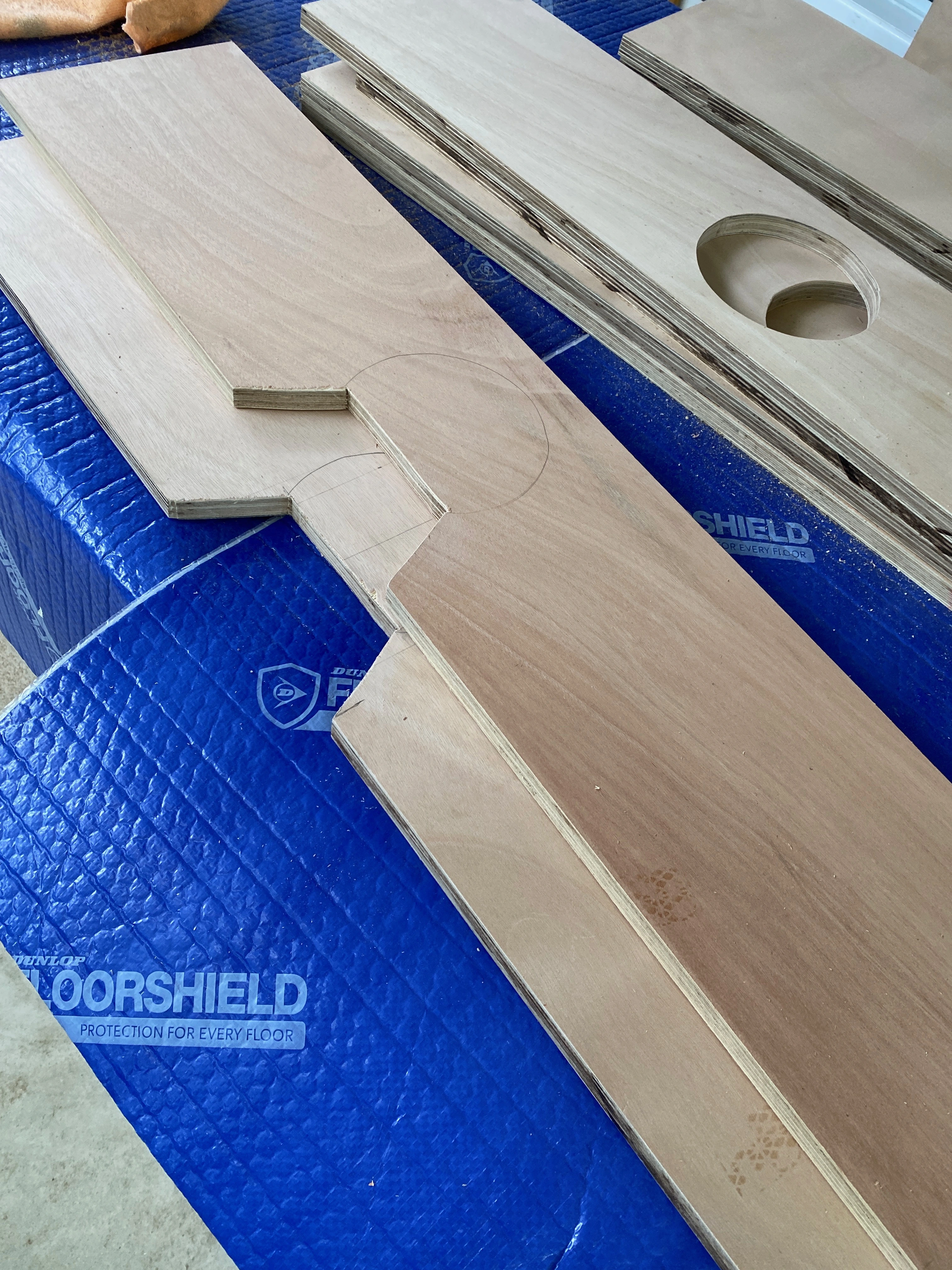 We found a local dealer with good prices on marine ply with Okoume top layers, which we'll probably just wax and buff for finishing. Ended up buying 2 full 2.4m sheets because there's internal bracing required too. I don't have much in the way of woodworking tools or experience, so thankfully have my dad to help out and prevent anything from going horribly wrong.