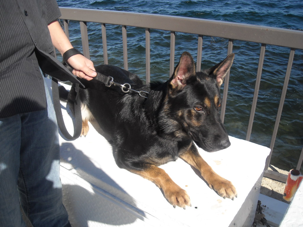 That Shepard is looking at something. A juicy steak or somebodies leg?