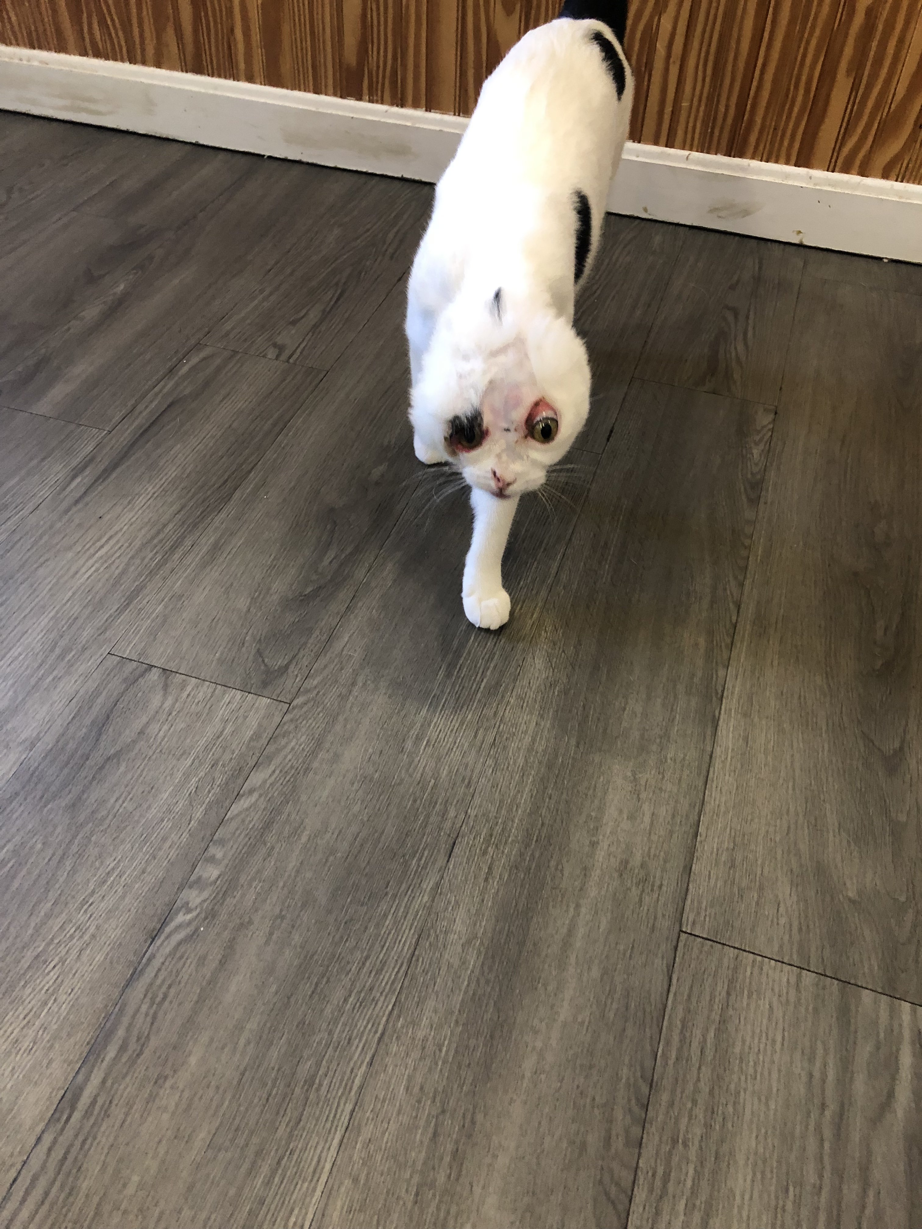 upload the photoThought I’d put this up. About two years ago a gentleman in my town went out to start his pick up on a cold day. He hears a terrible noise, opened the hood and found a cat under the hood that had been mangled by the cars fan. When I first saw this cat a year and a half ago I never thought it would look this good, and as you can see she looks pretty rough. The vet took this cat in and cares for it and did all these surgeries on her own. I was at the vet today and this is what the little fella looks like now