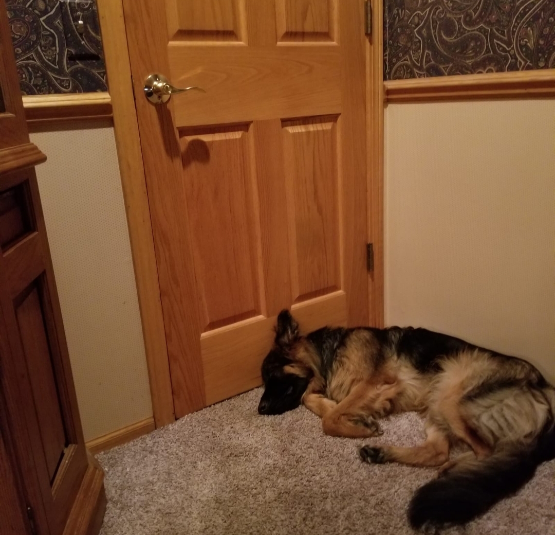 Here is one the wife sent me yesterday. I flew to DC for work over the weekene and she took this as soon as I left for the airport. Laina stayed like this for an hour and wouldn't move from the door after I left. Thought that was very cute!