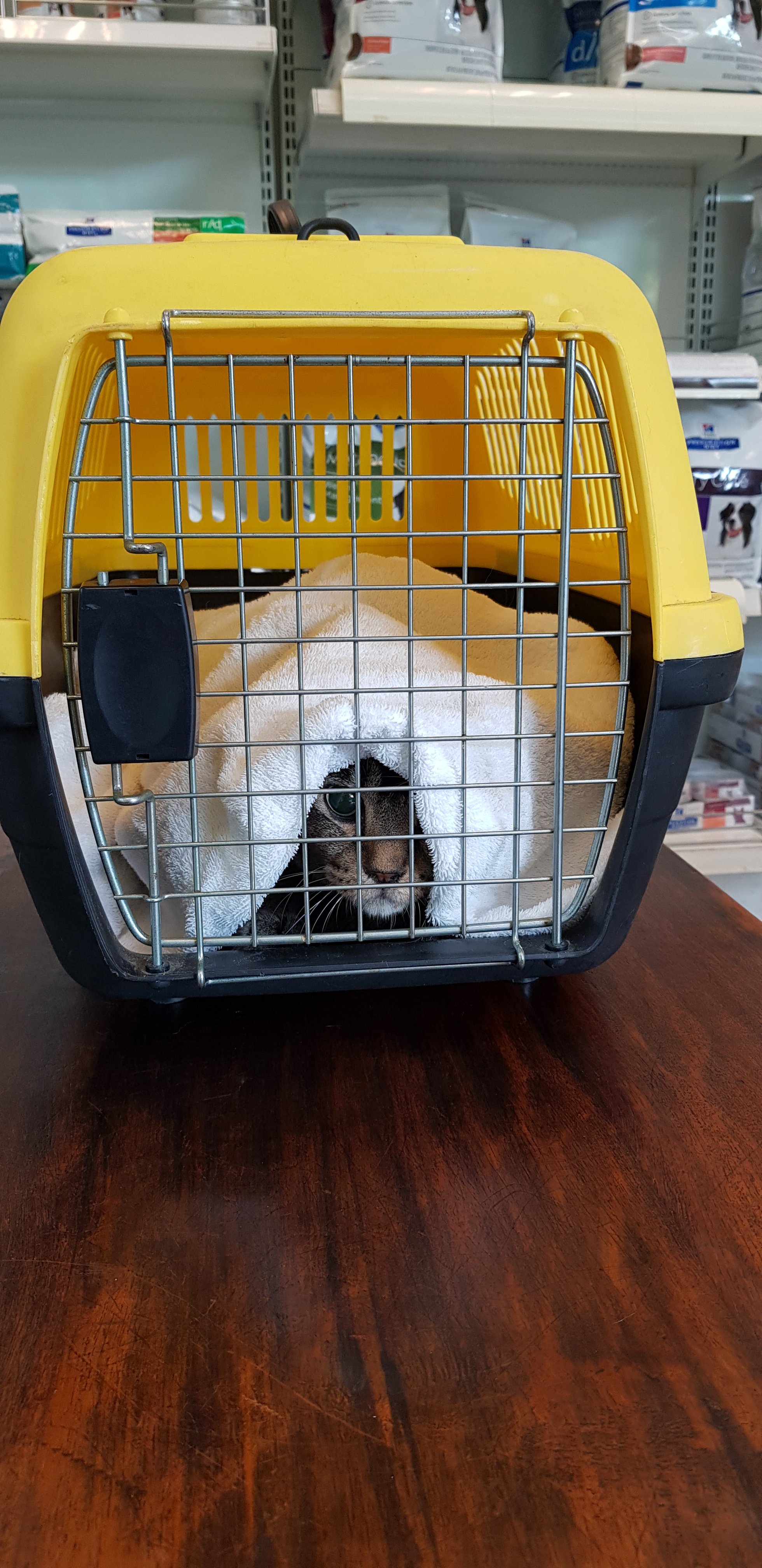 11.5 yrs old, and he hasn't been feeling too well lately. Blood test results show he's in the early stages of kidney failure. He's staying at tye vet's for a few more days.