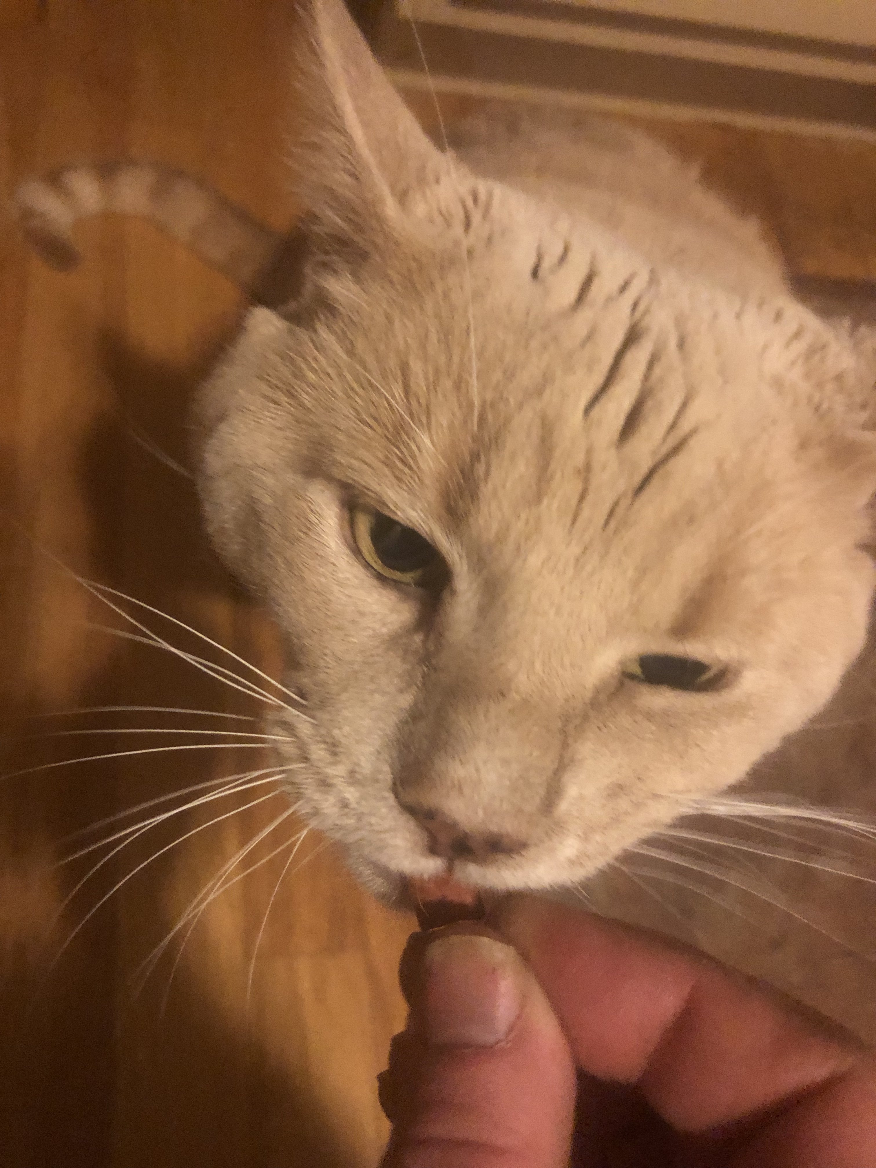 23 years old or so. Still going. Still just sees shapes, pretty deaf. Still loves to go outside and wander and sniff. Likes the butt scratch. Gave him a bath the other day and he had a fit. Billy doesn鈥檛 like being handled any more. Cannot trim his hair, he won鈥檛 allow it.