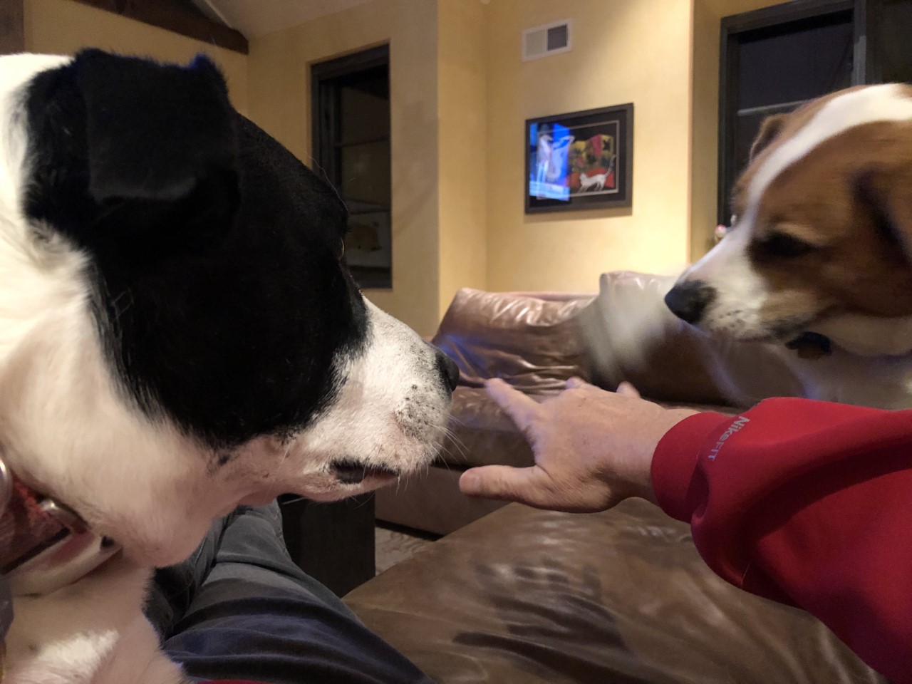 Both lived to 14...amazing given their medical issues over the years. Both of the individual photos were taken 3 weeks before they went over the rainbow bridge, Brandy (the large shepard), Bruin(the small Shiba/Shepard mix) 3 yrs later.