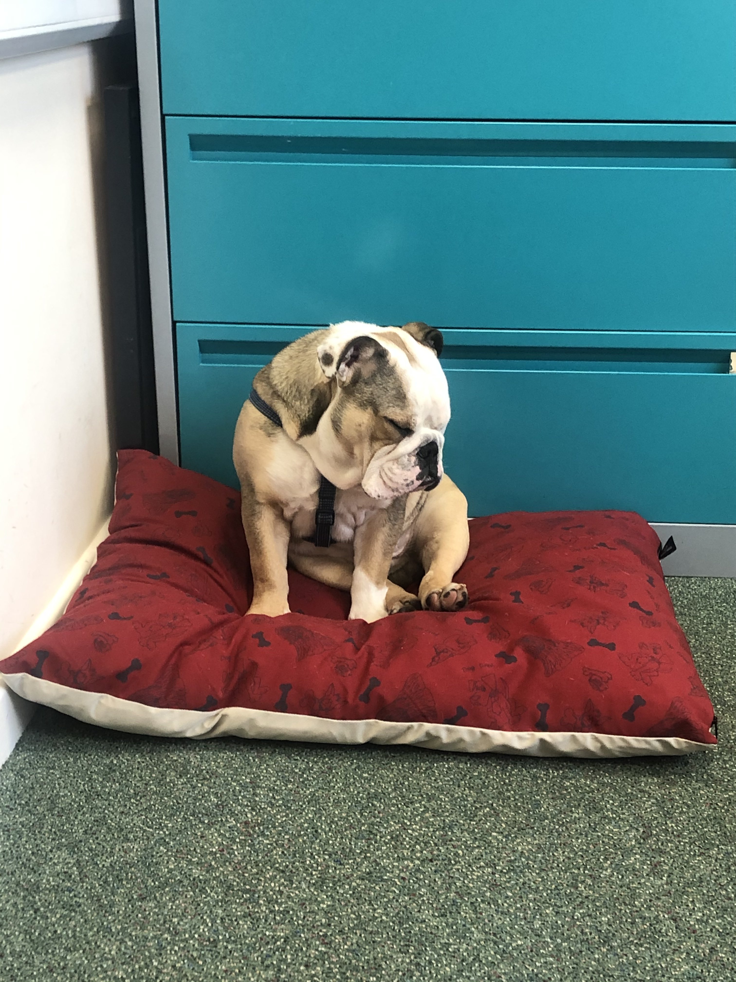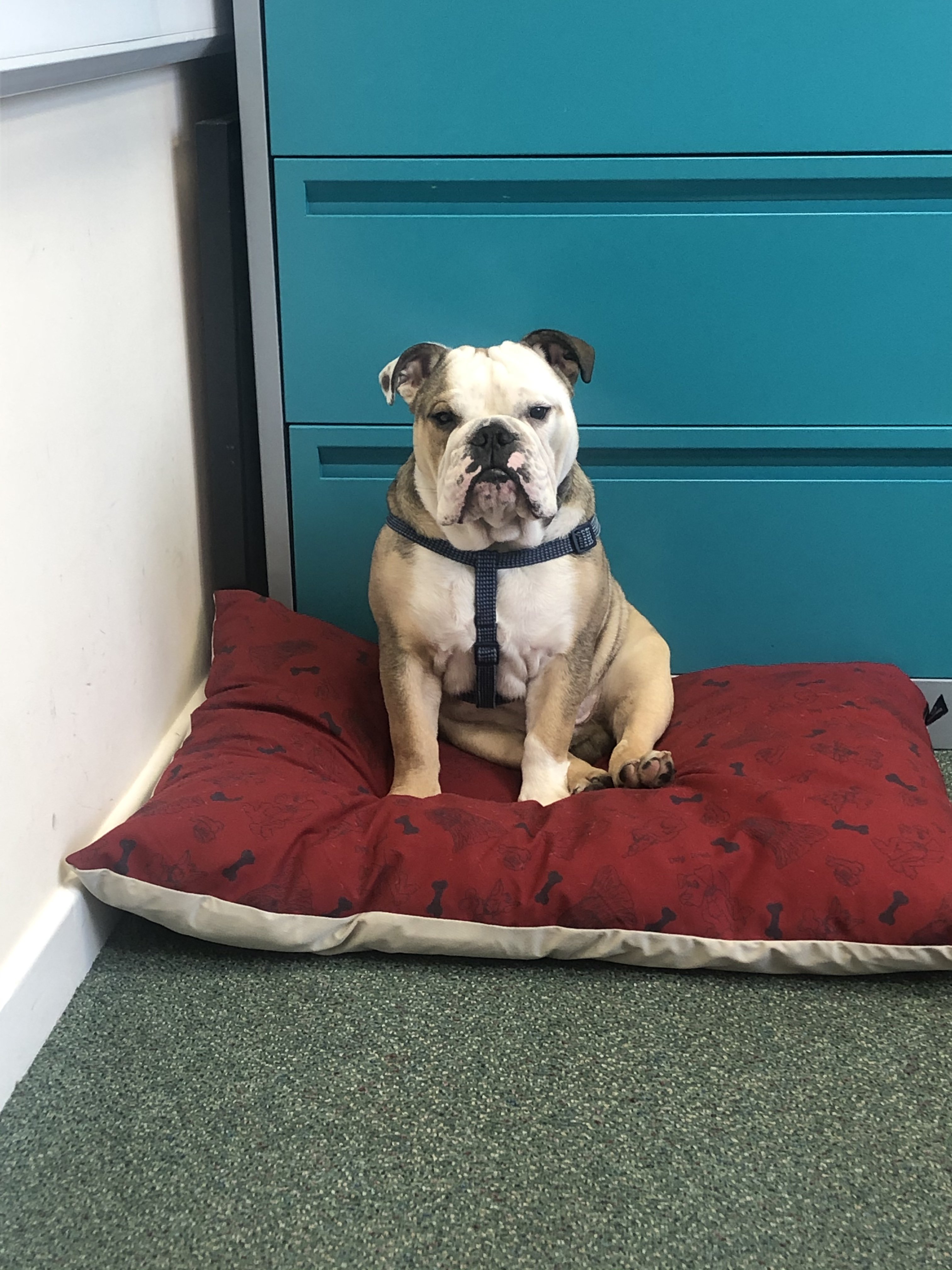 Eddie comes to work with me Wednesday to Friday which is great for me as it stops people knocking on my door all day, that is until he falls asleep on the job.