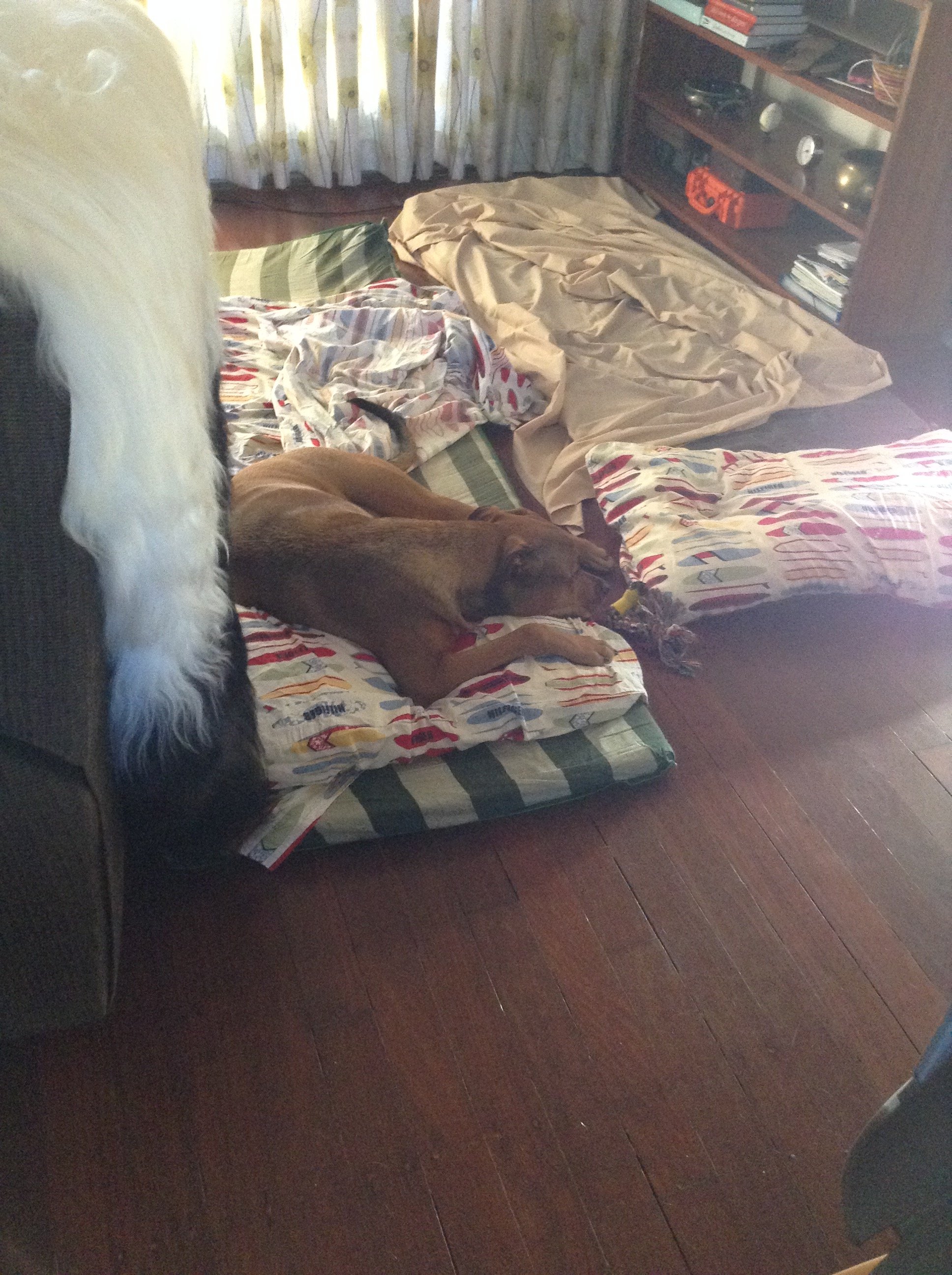 I should be getting mugged by my two dogs shortly. I've been out of town for 2 weeks and they've been moping around the house during that time. My wife was in the mountains with the dogs last night when I got in and is on her way home. Looking forward to some wagging tails and floor time with the boys.