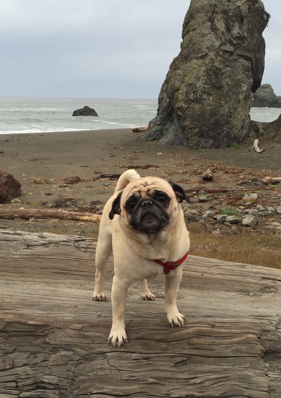 She carries her own gear, mainly her food, treats, dog bug spray if necessary, fleece jacket, leash, and bowl. It's a bit bulky, but not too heavy. For a three-night trip like we just did, her starting weight was about 5 pounds, which is less than 10% of her body weight. If we go out for more than 4 nights, I carry some of her stuff at first.