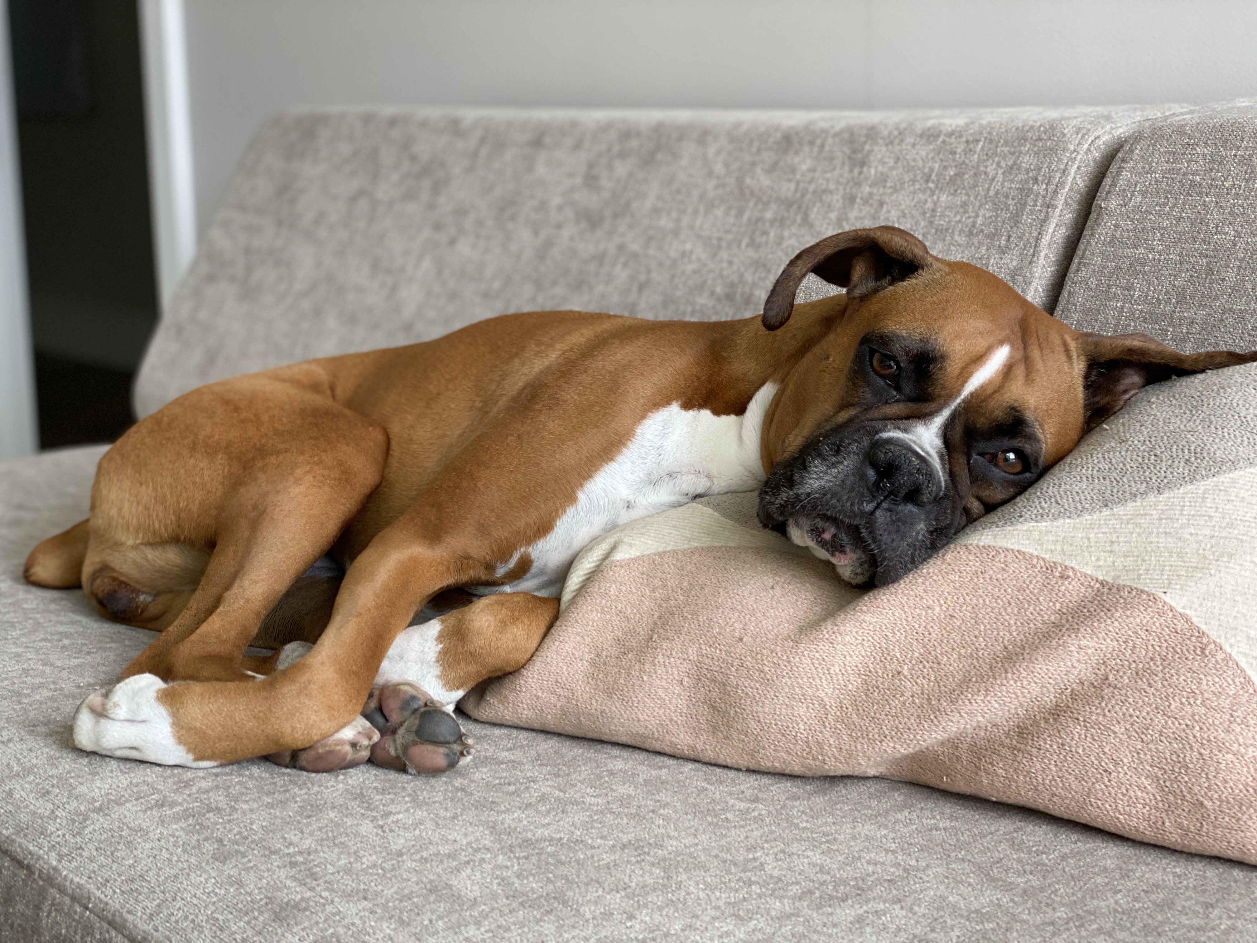 They get used to carrying the pack pretty easily. Our dogs have all carried their own gear. The Boxers will do anything you ask them to do. The Ridgebacks make a fuss at first and try to roll it off, but if you distract them with something, they forget about it pretty quickly. She loves to wear her fleece (photo below).