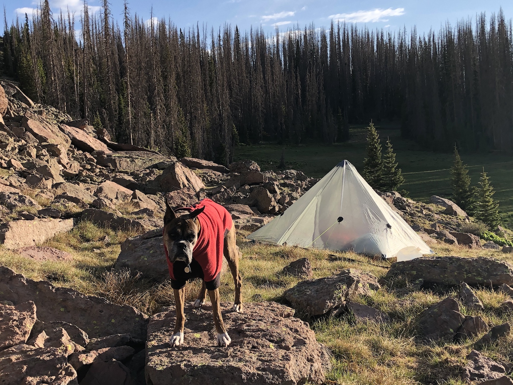 I find that really cool. For a minute I thought maybe you were involved in search and rescue or something but the fact you have your dog carrying its gear is very impressive. Must be a lot of fun. Not to put a bummer on the topic but years back I was a regular camper. My buddy slept walk off our site and fell 90ft. We were in the boondocks and a medical helicopter was the only way to get him out. He was paralyzed by the fall, fortunately he “only” lost use of his legs. To end on a happy note today he owns a car body shop and is doing very well. I am so glad he was able to grab hold of a positive attitude and do all the things he had done. So I still camp but don’t climb to much anymore, there is something so peaceful about laying out under the stars. As long as weather permits I prefer not using a tent but I have woken up with a snake in my bag more than once. Must be cool to bring dogs along we never did that.