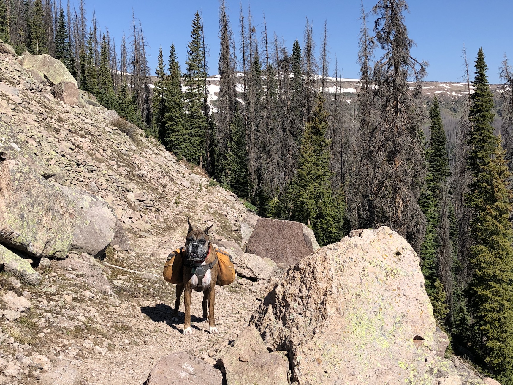 Dan is your dog trained for something. What are the packs he is wearing? Very interesting. I had my German Shepard trained well but she never liked being dressed up I don’t think she would have liked carrying anything