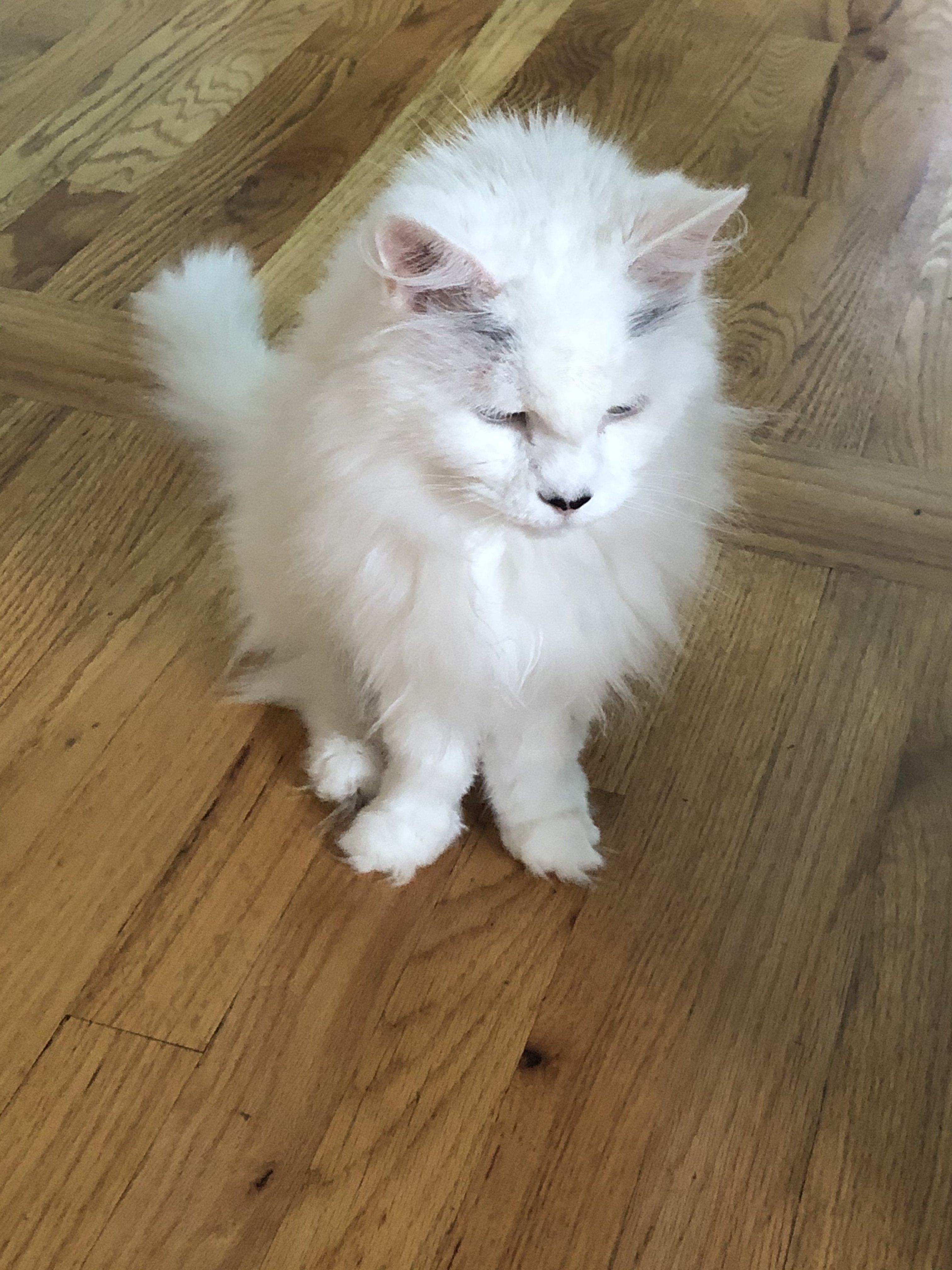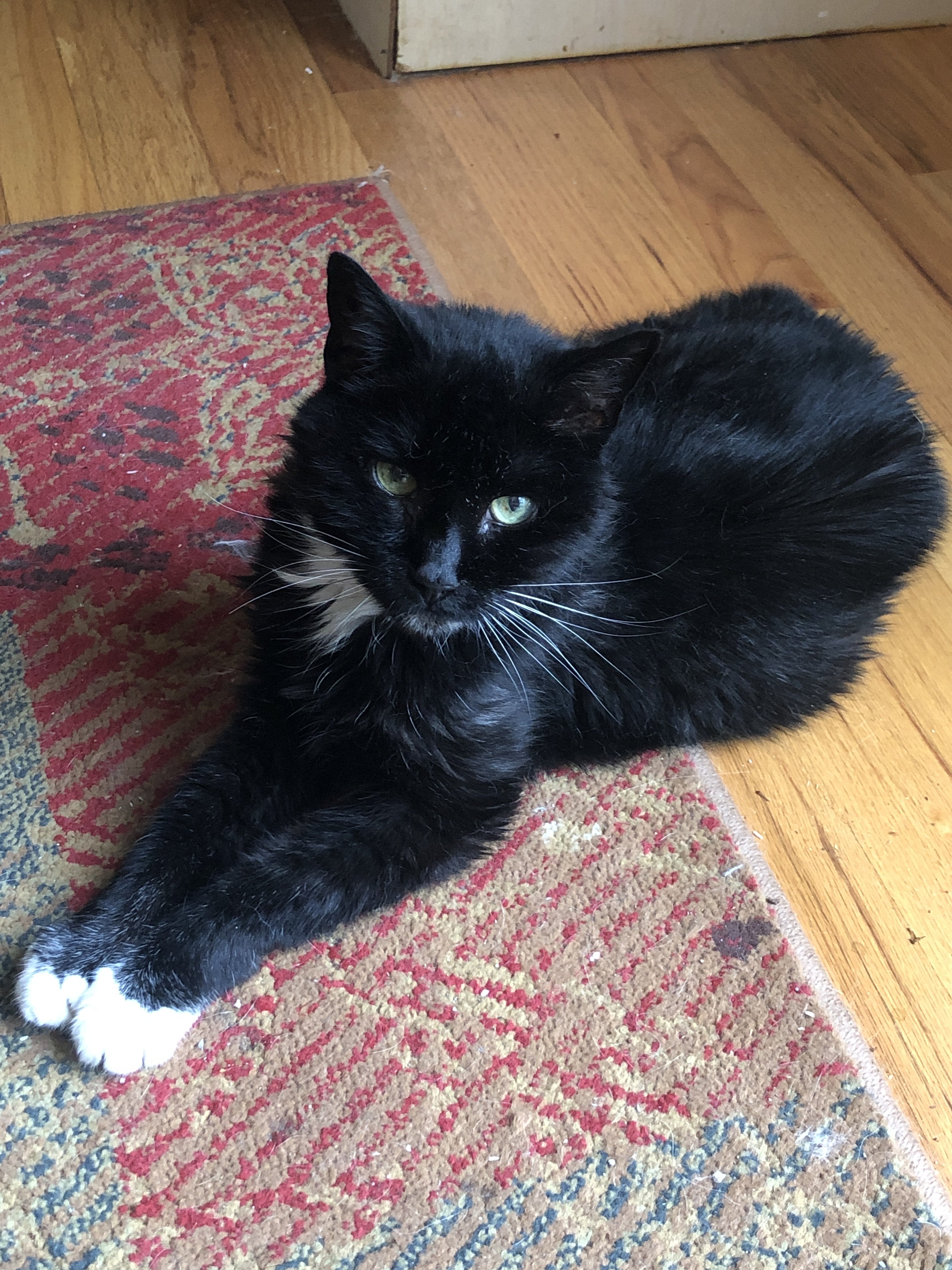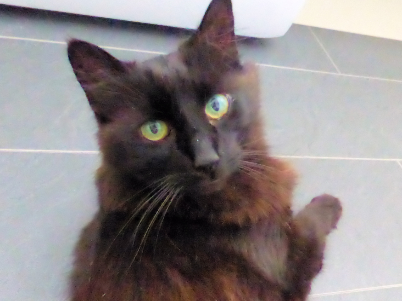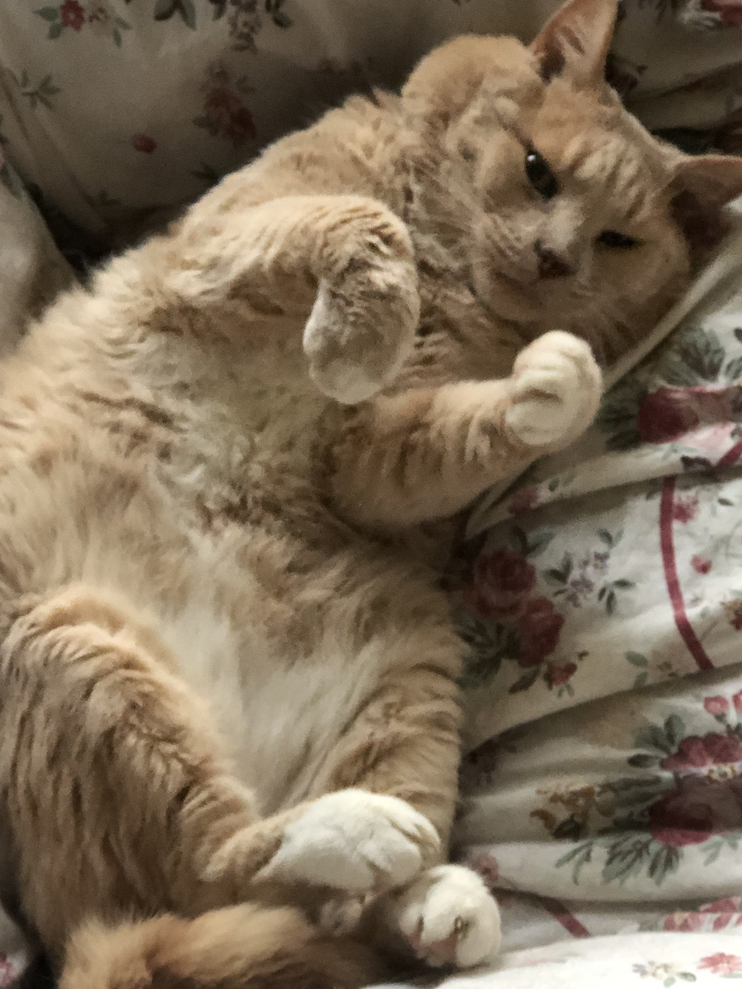 I was leaving the house this AM and hairy was in an unusual spot. As probably most everyone here knows pets pick specific spots to call their own. I noticed Hairy picked a spot taking advantage of a ceiling fan I had running. We are hitting 100 degrees f on the heat index so I decided to leave the fan running for her despite me leaving for the day. This isn’t a picture of her in that spot, she saw I was leaving and followed me to hit me up for a few treats before I left for the day. She has me well trained