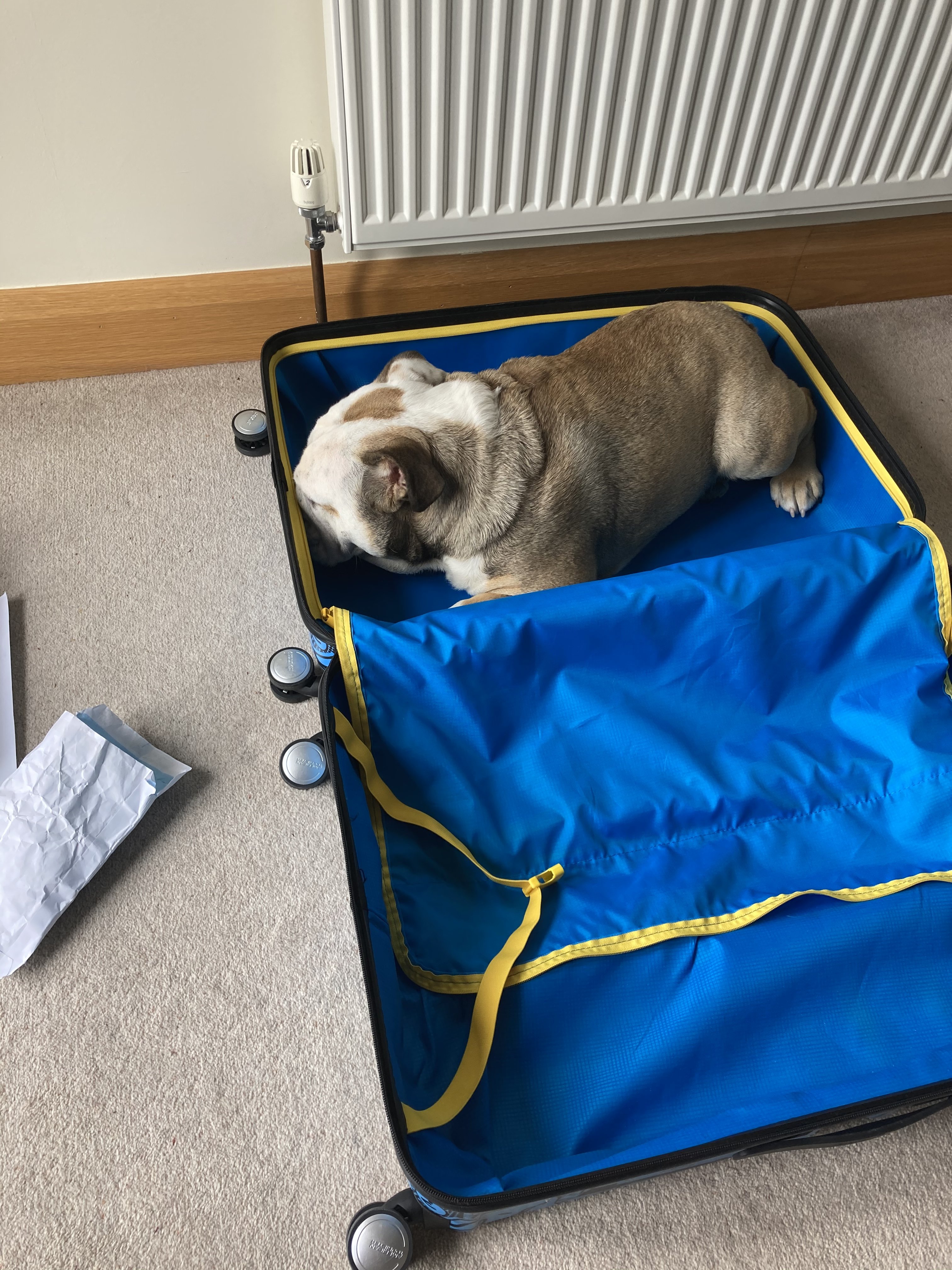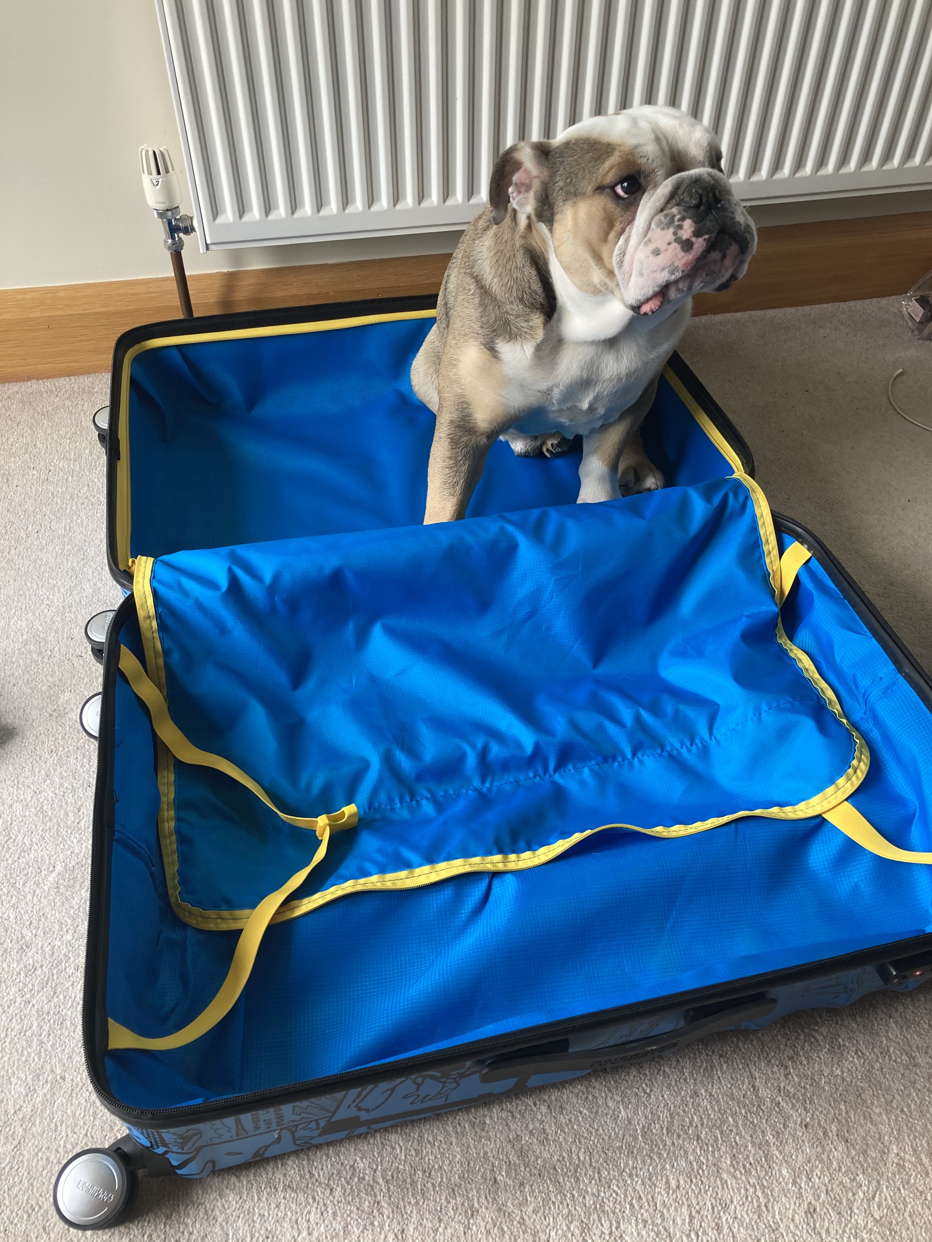 That's adorable. My first Boxer, Rosie, would clearly recognize when I was packing for a trip and would follow me around like my shadow. She would also lie on the luggage.