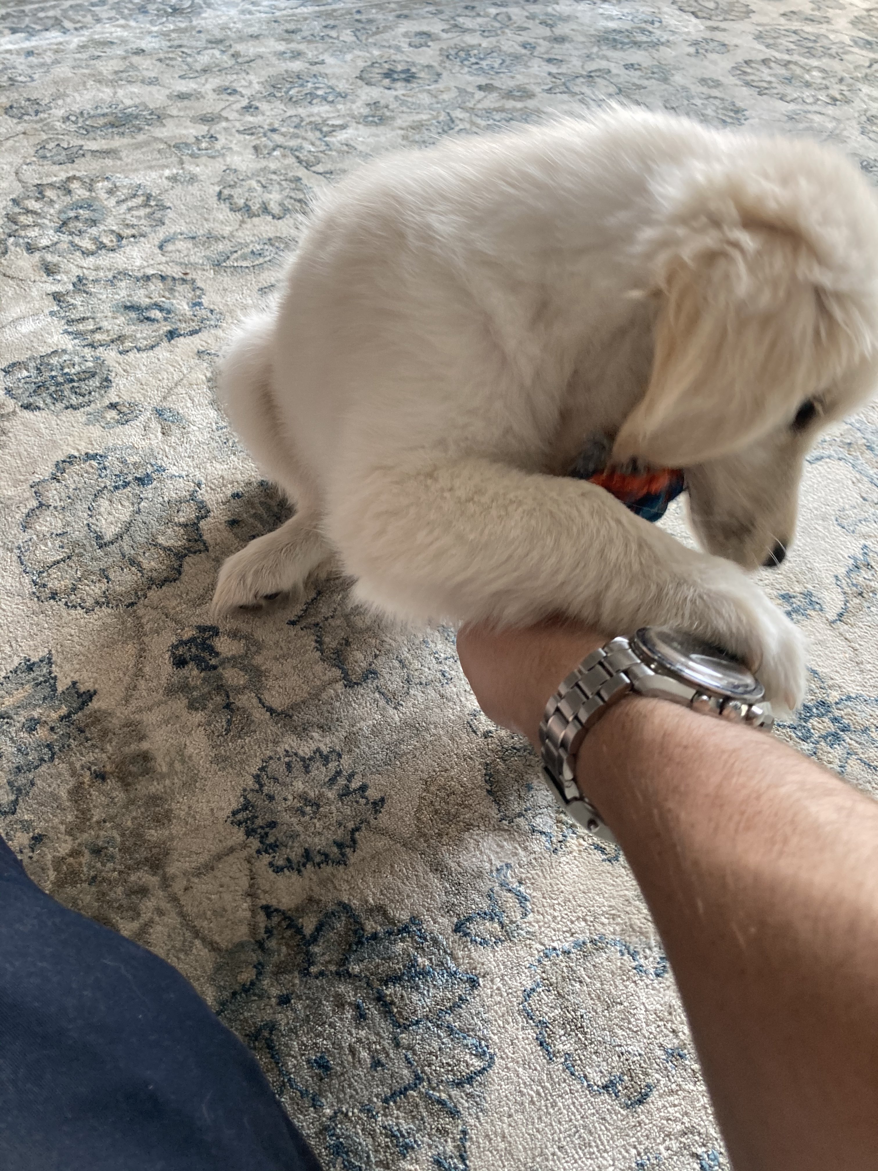 Puppy teeth and steel don’t mix, but she tries anyway![]()