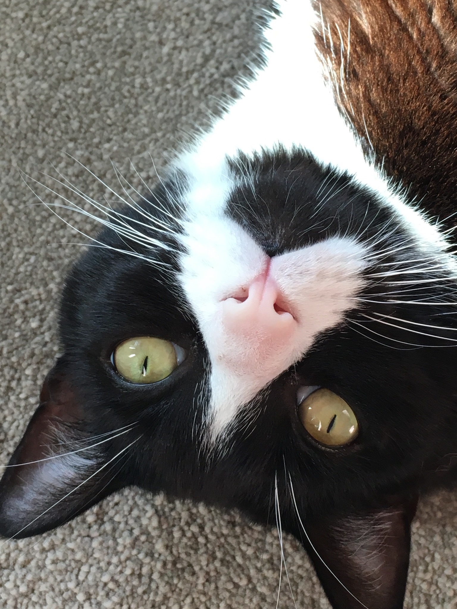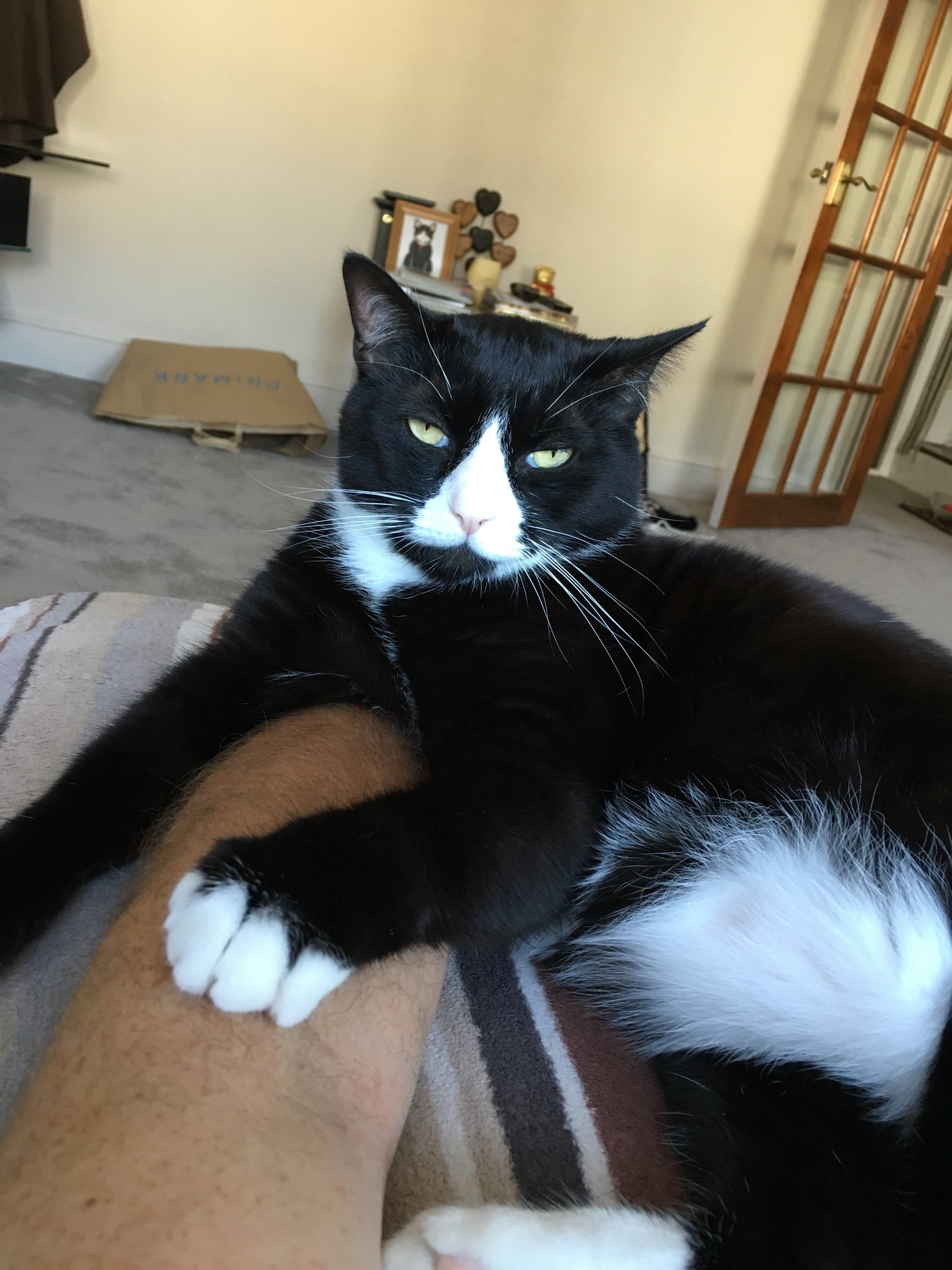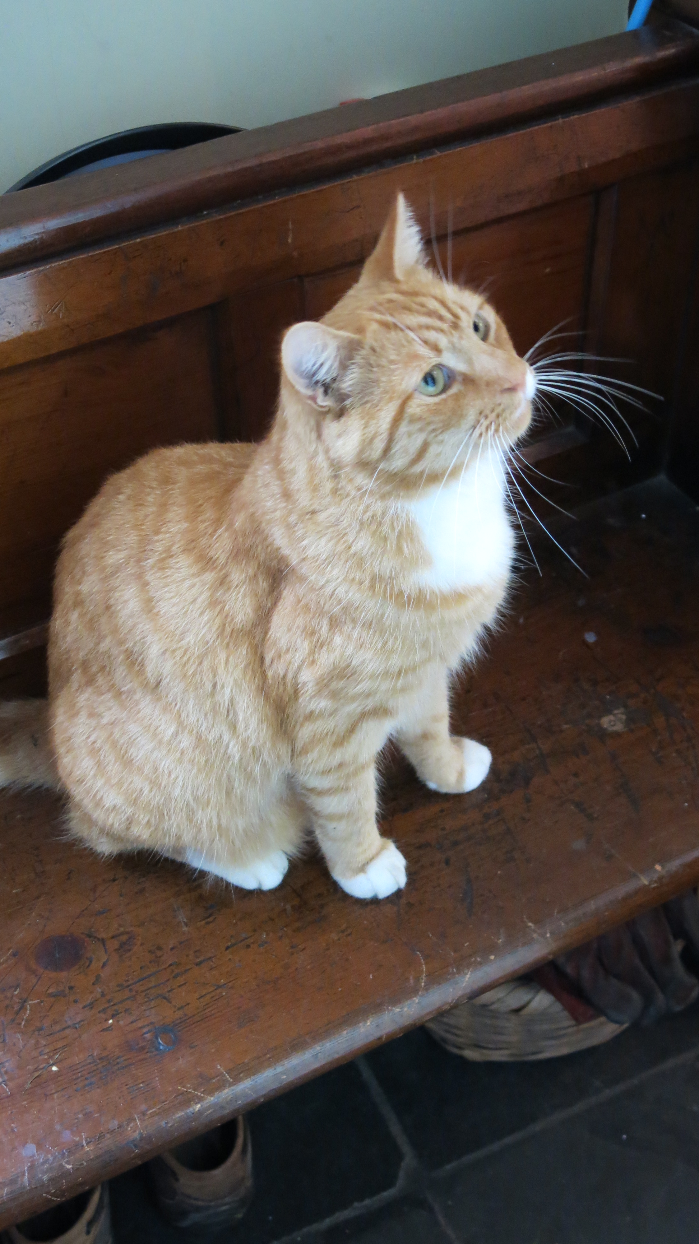 Cocoa, just got him about 2 months ago, he was in a very unsafe area where the cats were either getting injured or disappearing. He eats chili & loves any sort of eucalyptus/menthol/deep heat.... really weird, he rubs in it like it was catnip 馃榾