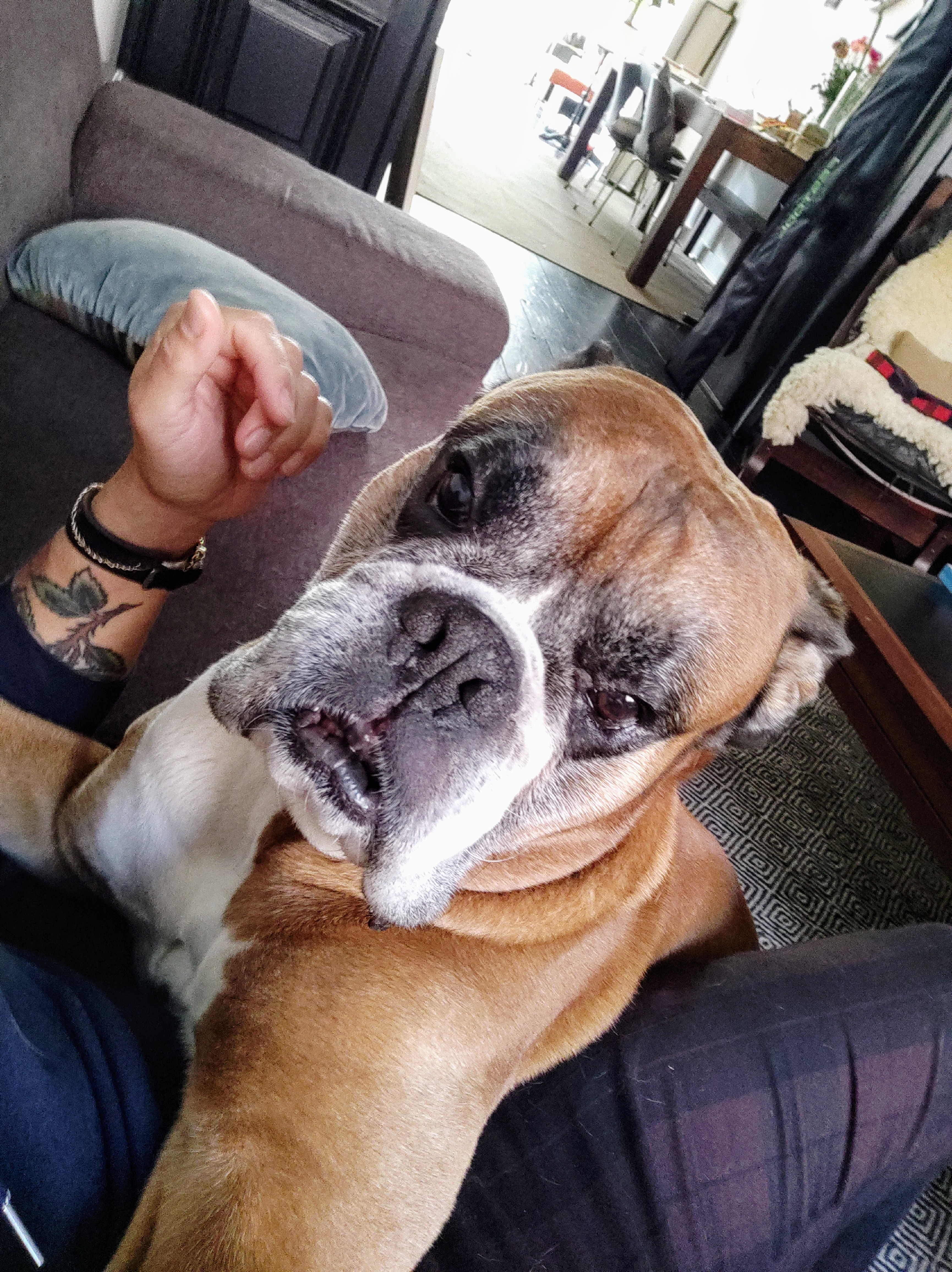 路Zelda was bitten by this rattlesnake on our hike today and is in the hospital. She was on leash, but neither of us saw the snake along the side of the trail. She went to sniff at something ... and BAM! She barely reacted, so I was hoping she wasn't actually bitten, but within a few minutes, she wasn't her normal self, so we walked home and I took her to the emergency vet. They couldn't find any bite, and sent me home. At home, she was obviously not doing well and when I checked her over, her neck had swollen up, so I took her back. They are giving her a bottle of antivenin, IV fluids and pain killers, and I am just sitting at home hoping for the best. They say that dogs usually survive, but I am really worried about her.