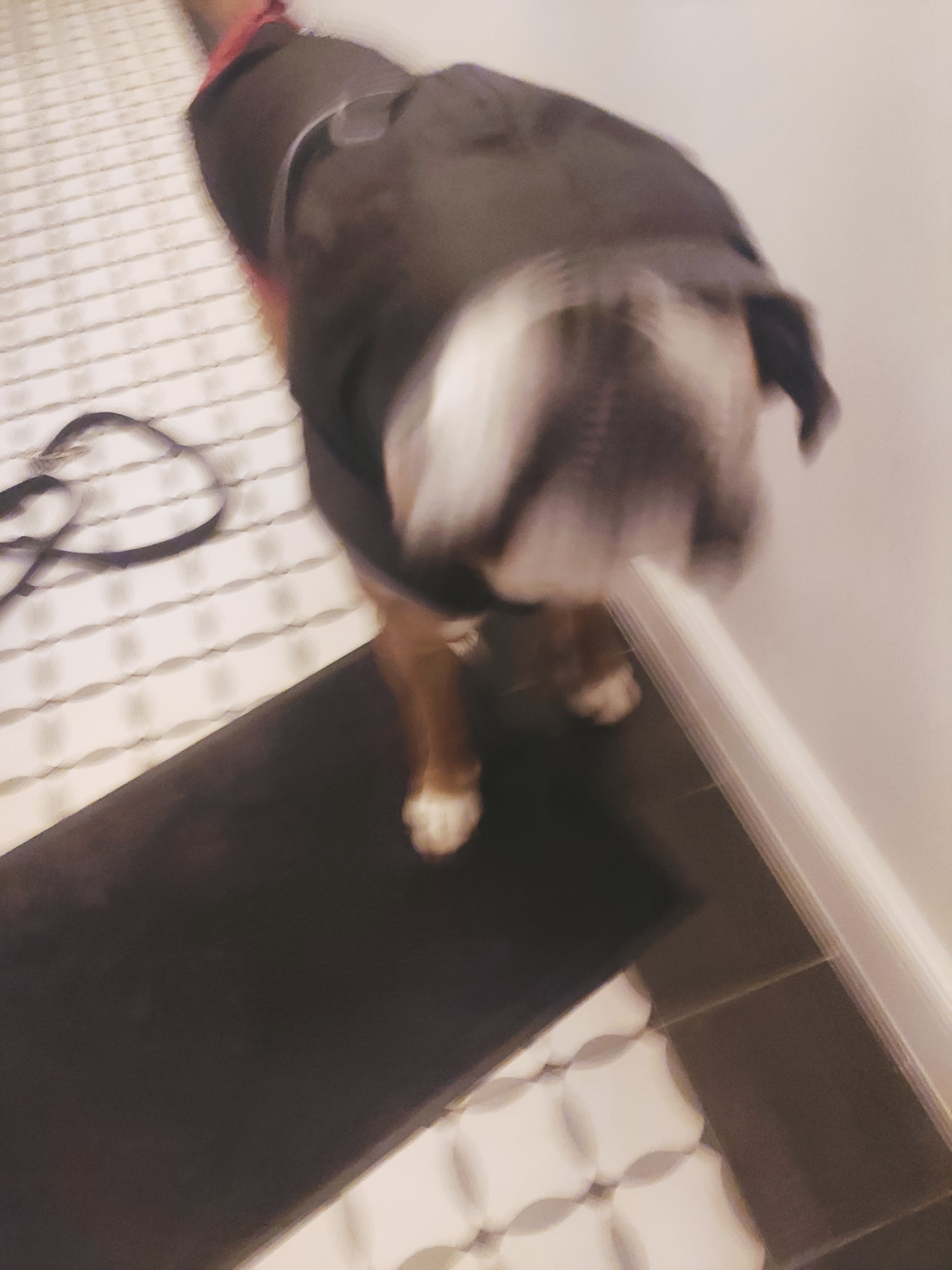 We think he had a bad dismount from a bed, came crawling into my office to me straight afterwards, were lucky as had him in the vets by 9am. No improvement yet, just hoping it's all deep muscle and not a blown/ damaged disc.