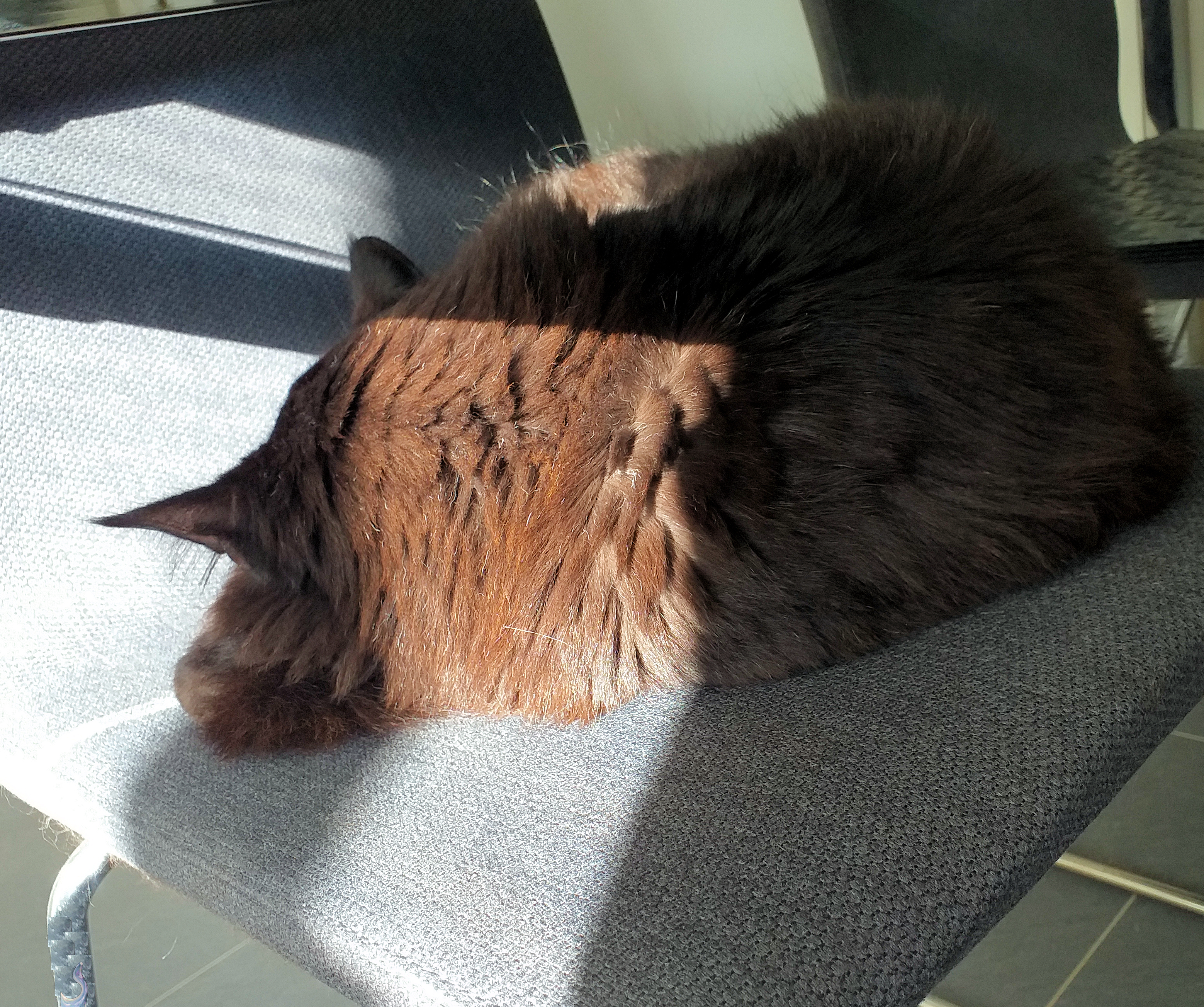 We have a nice day today ... so the old boy has currently taken up residence in the kitchen and will now doubt follow the sunshine around all day ... who needs a pyranometer.