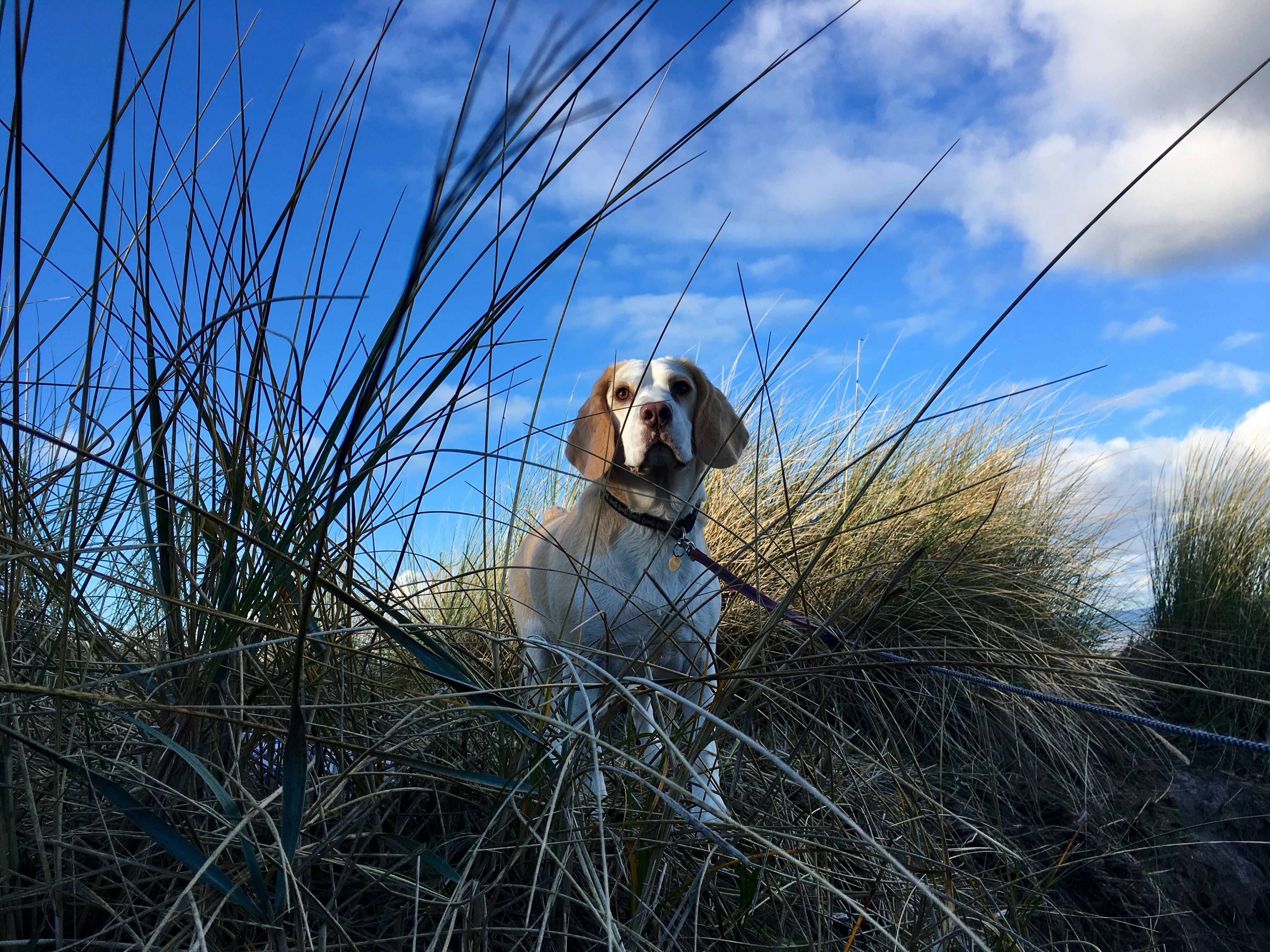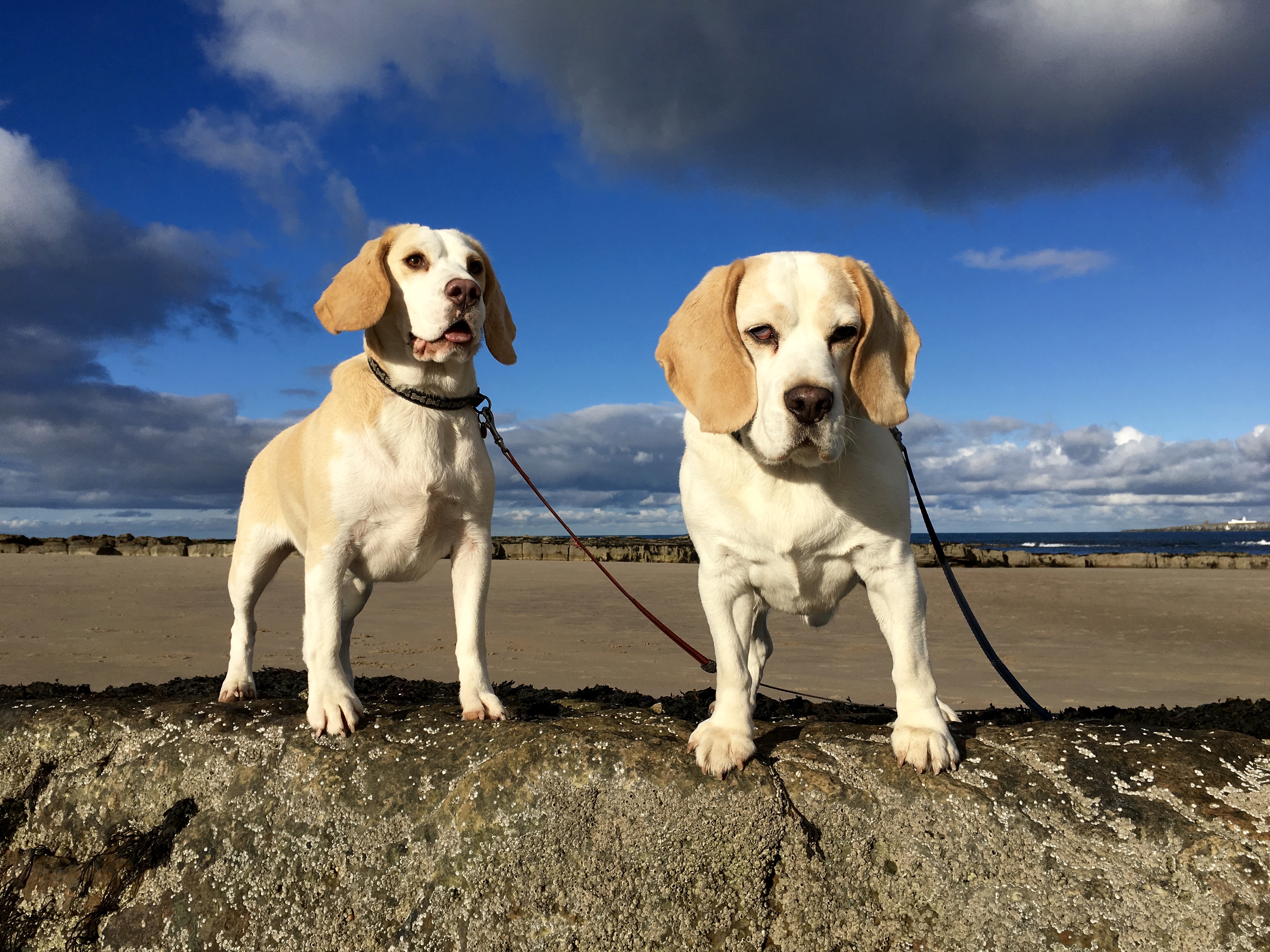 Here is a really old one without a Beagle in sight, my sadly missed black Lab and her best pal out playing in the fields.