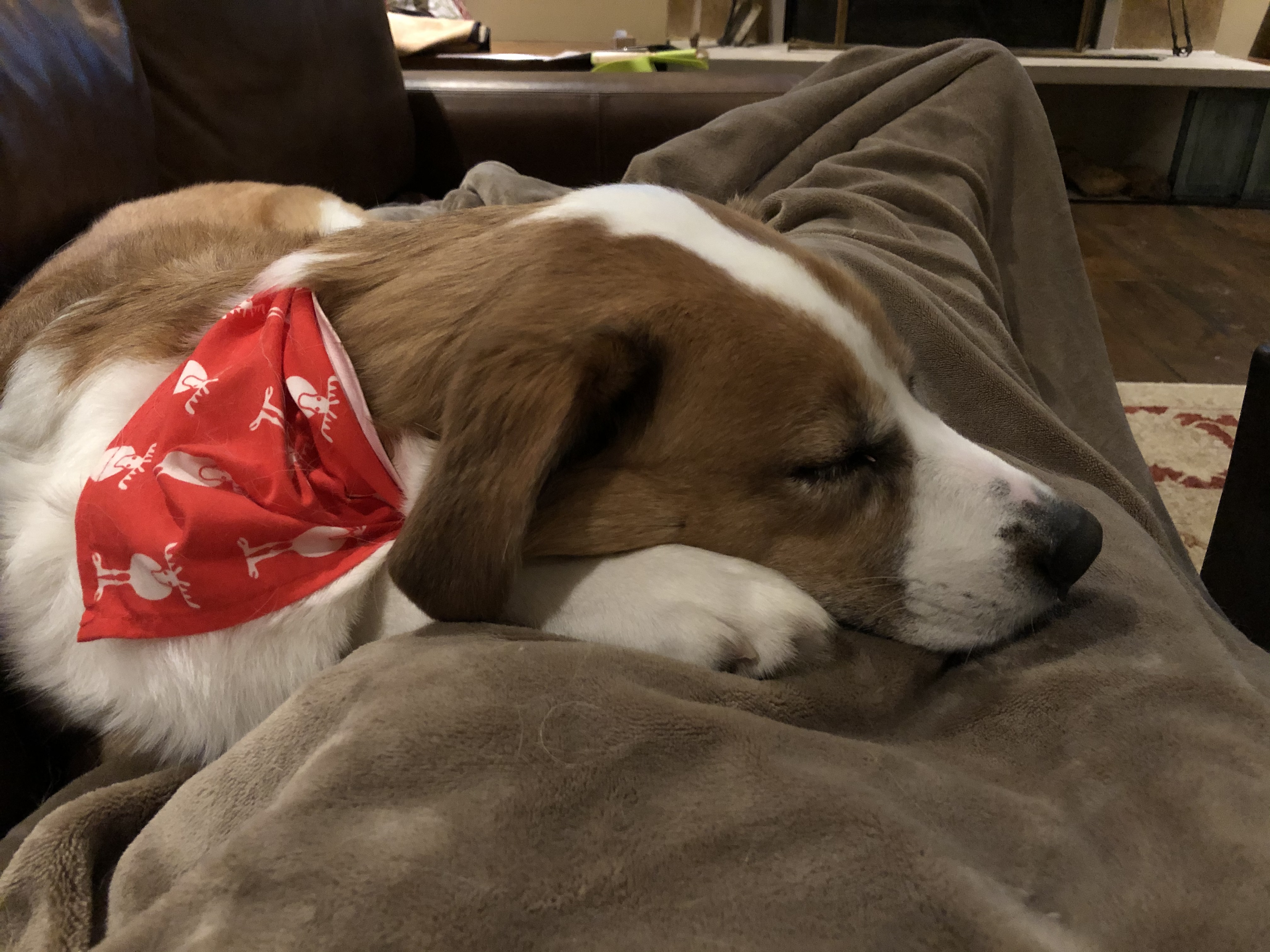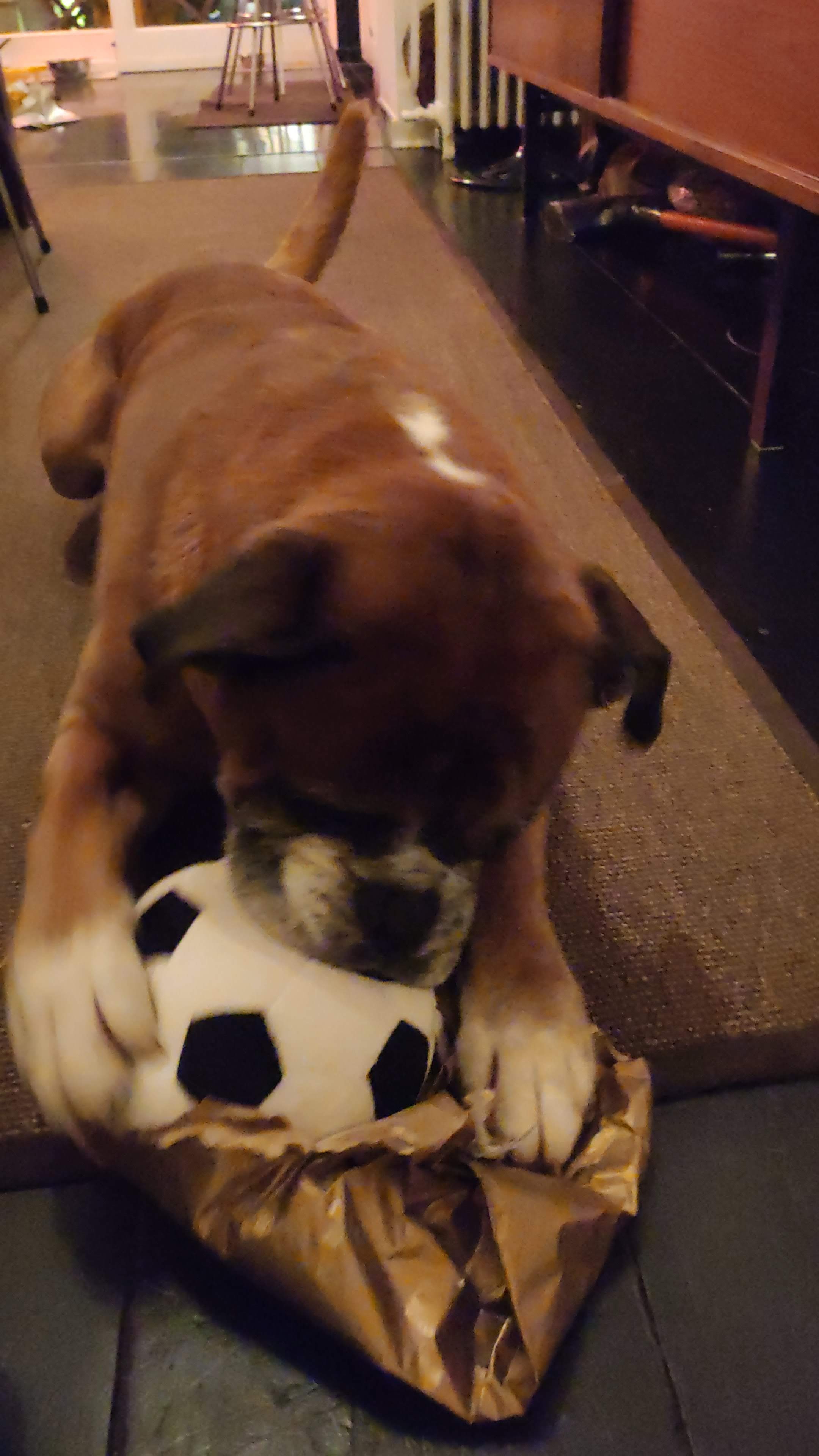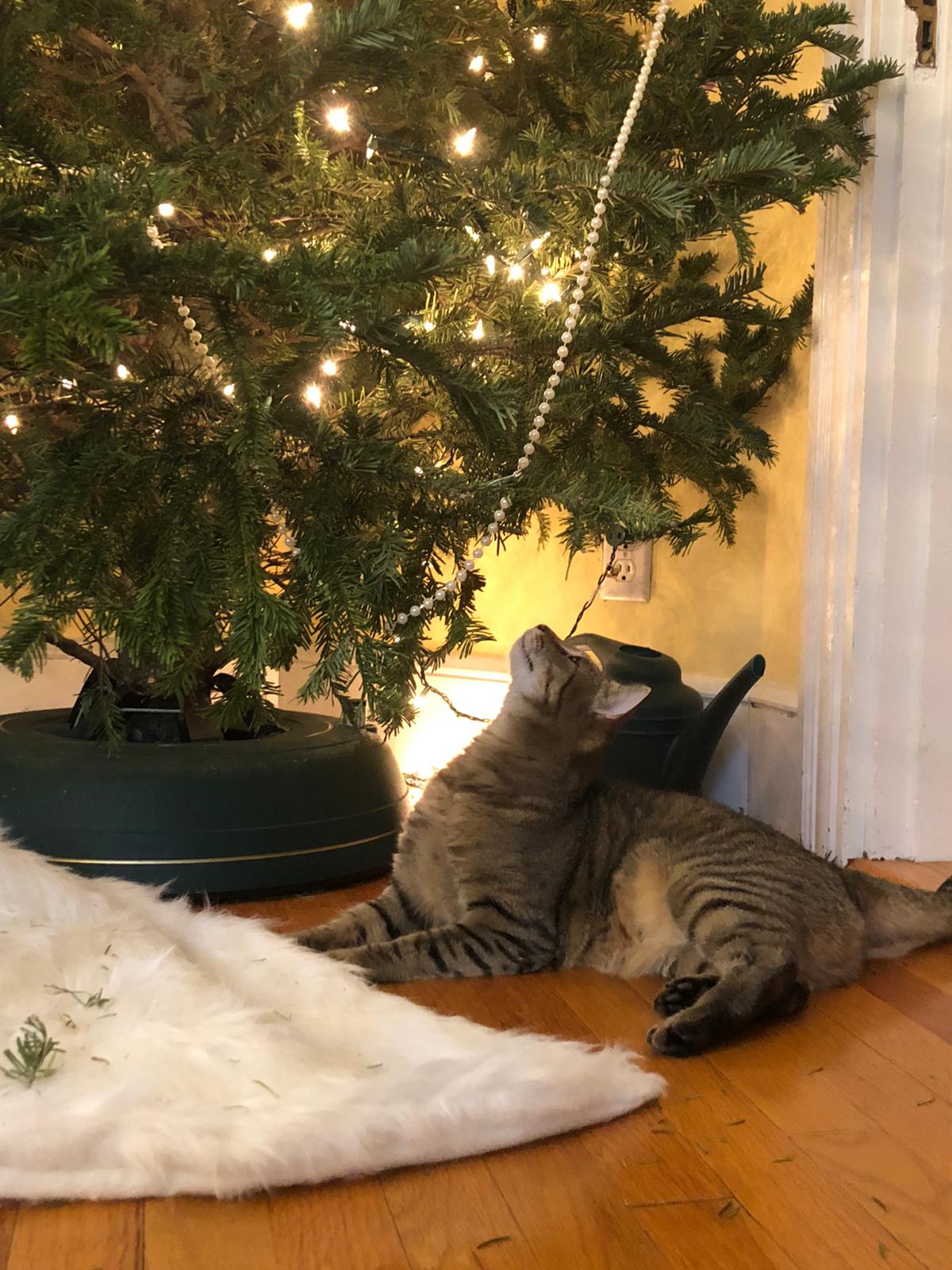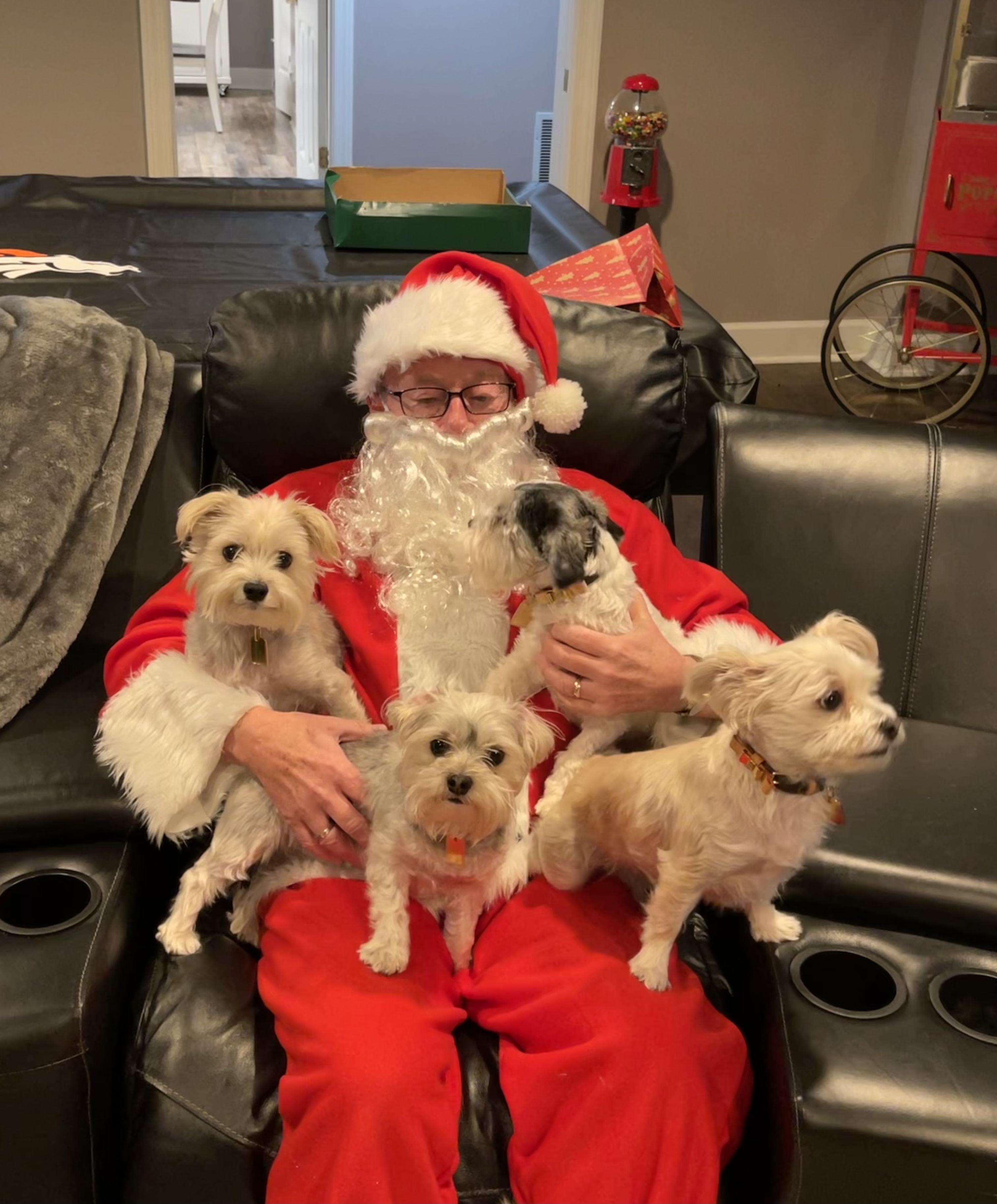 Not sure whether sugar plums are dancing in Charlie's head or if he got into the bowl of eggnog.....both, perhaps.