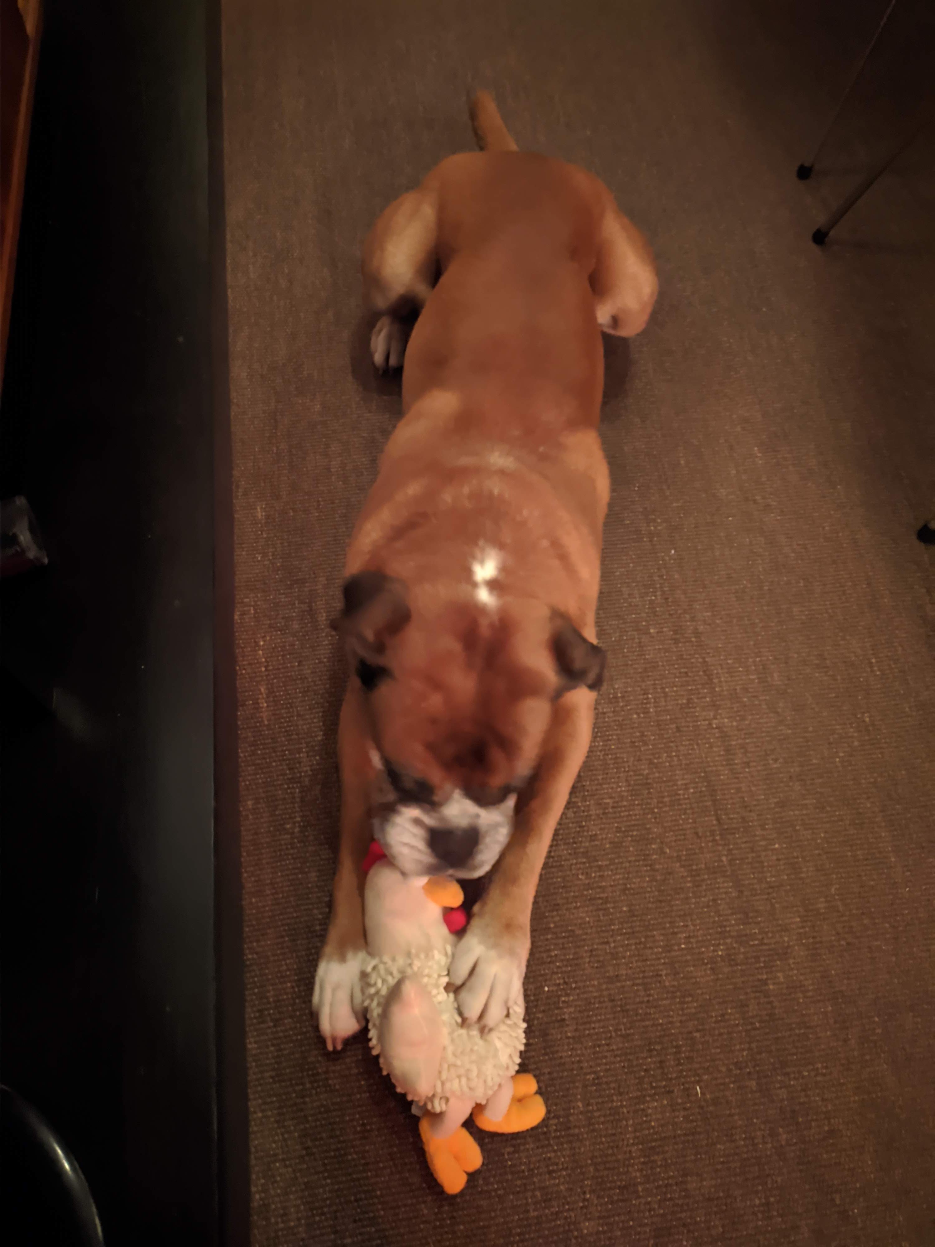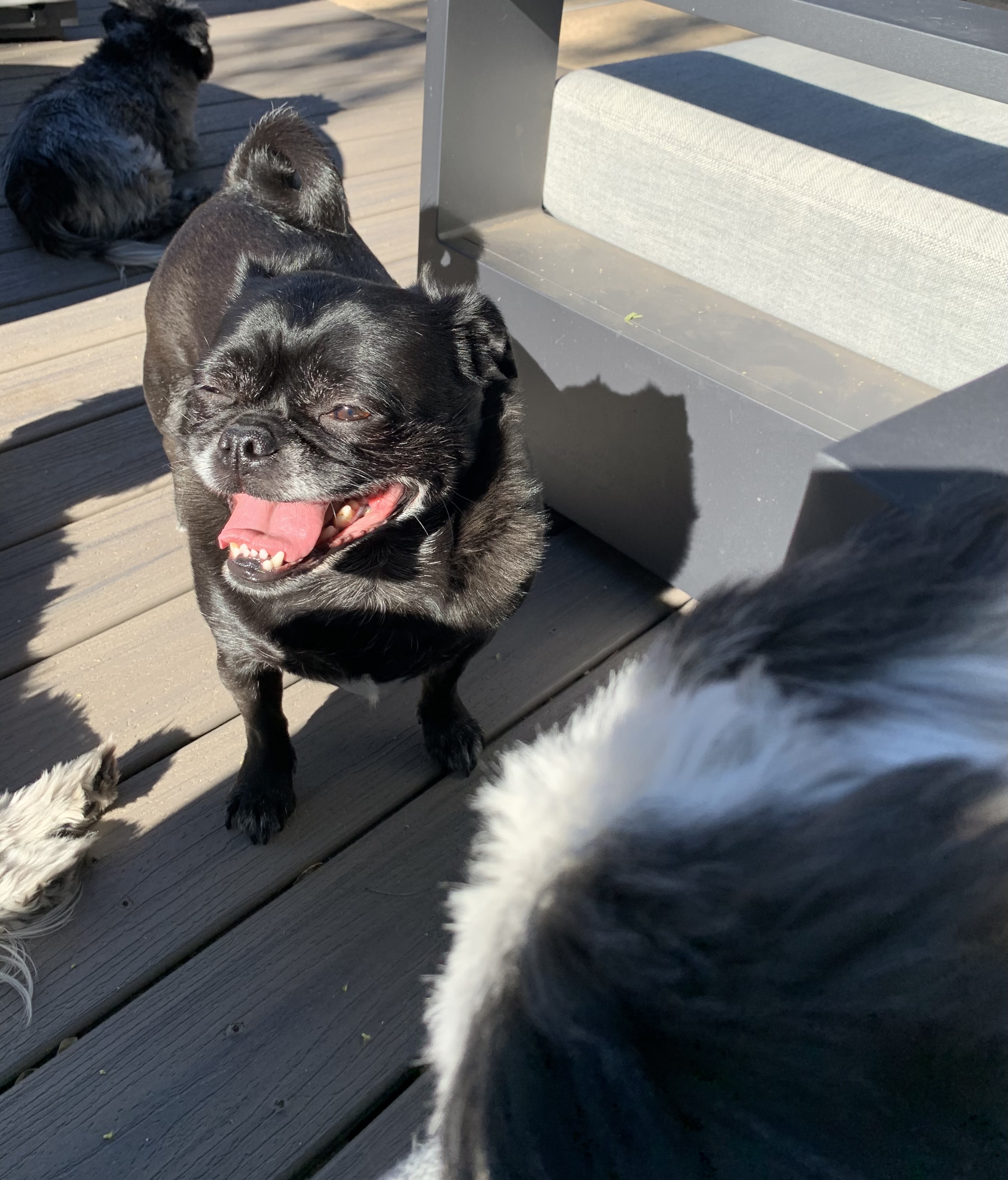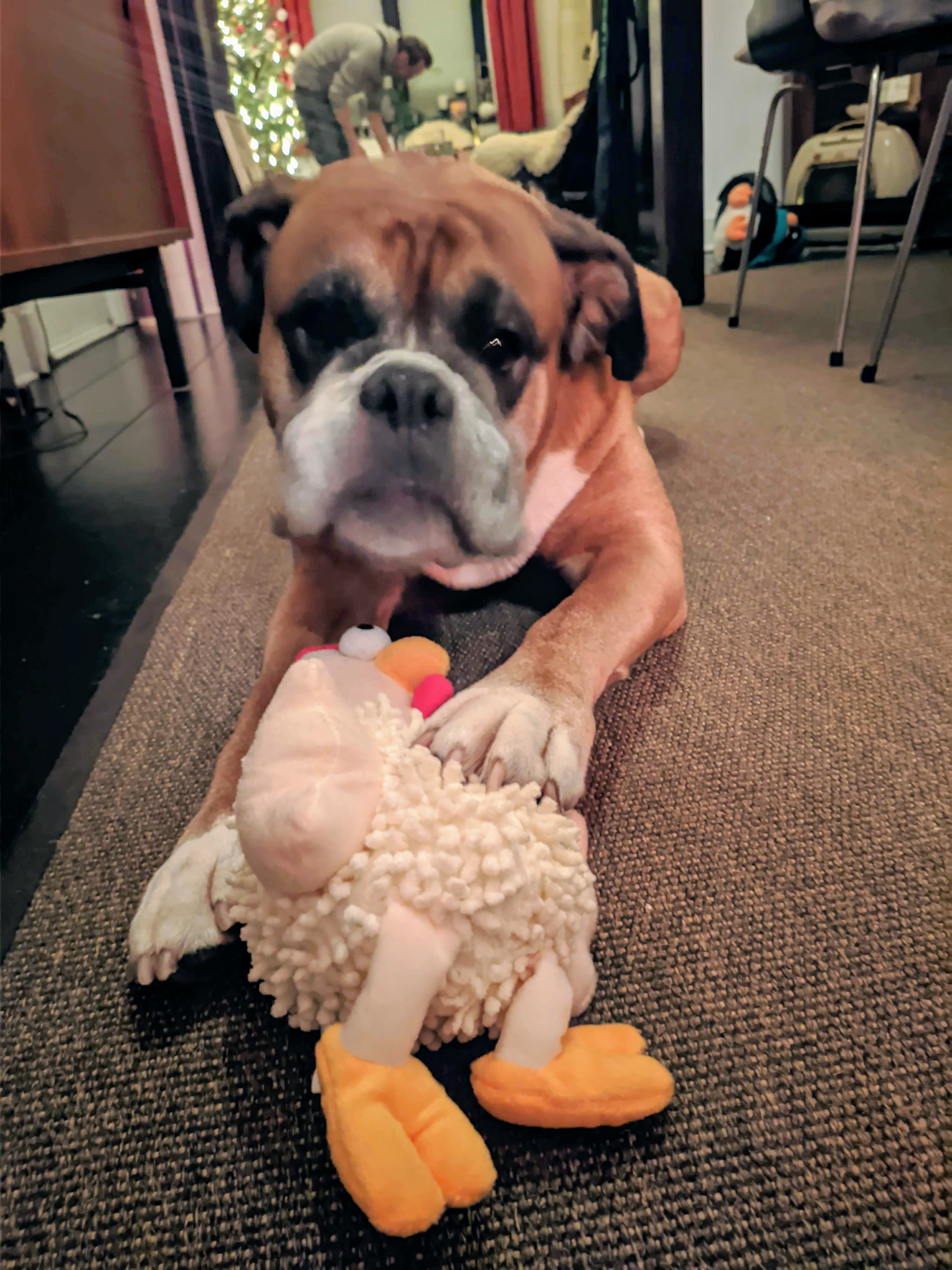 Not sure whether sugar plums are dancing in Charlie's head or if he got into the bowl of eggnog.....both, perhaps.