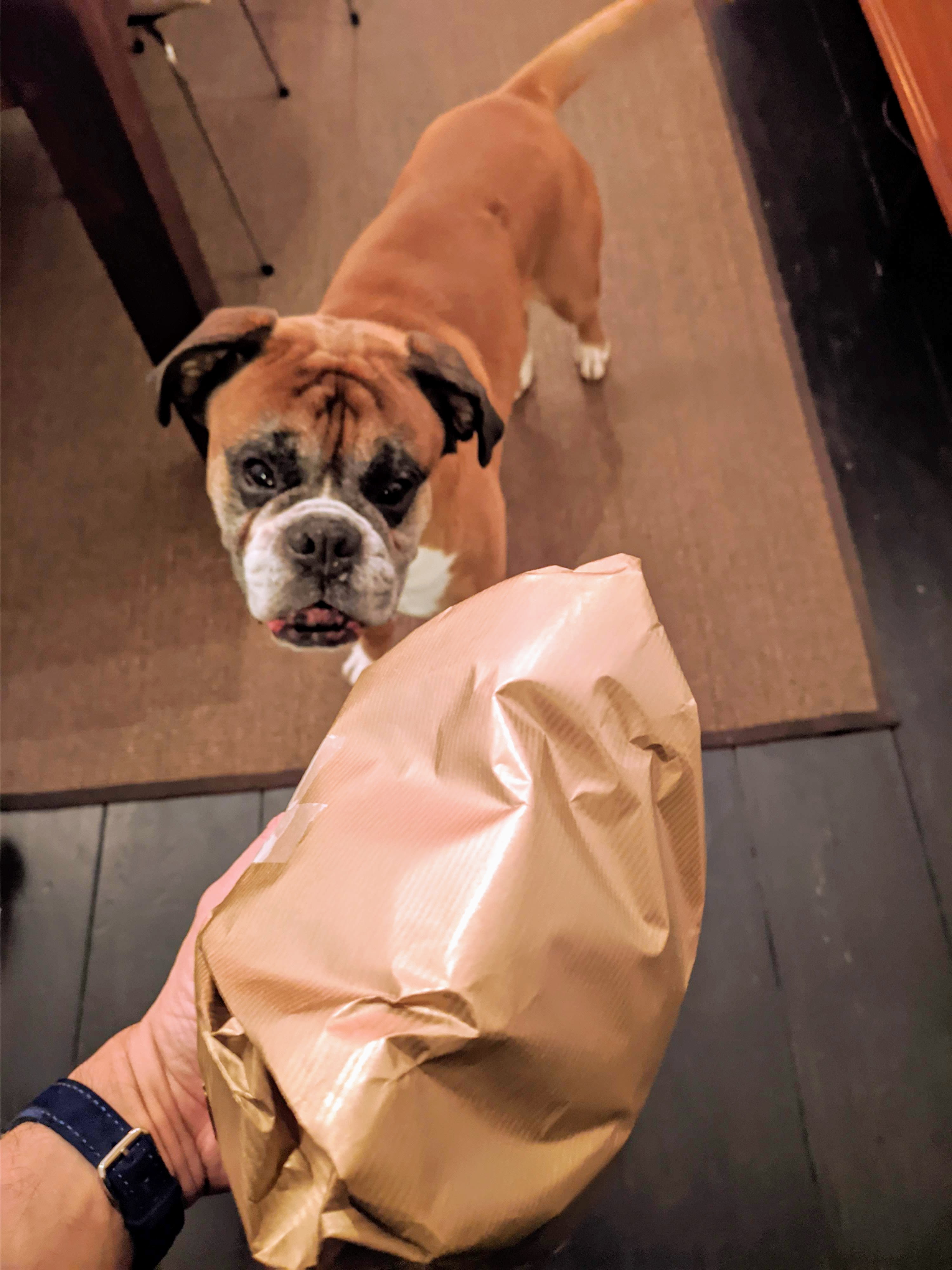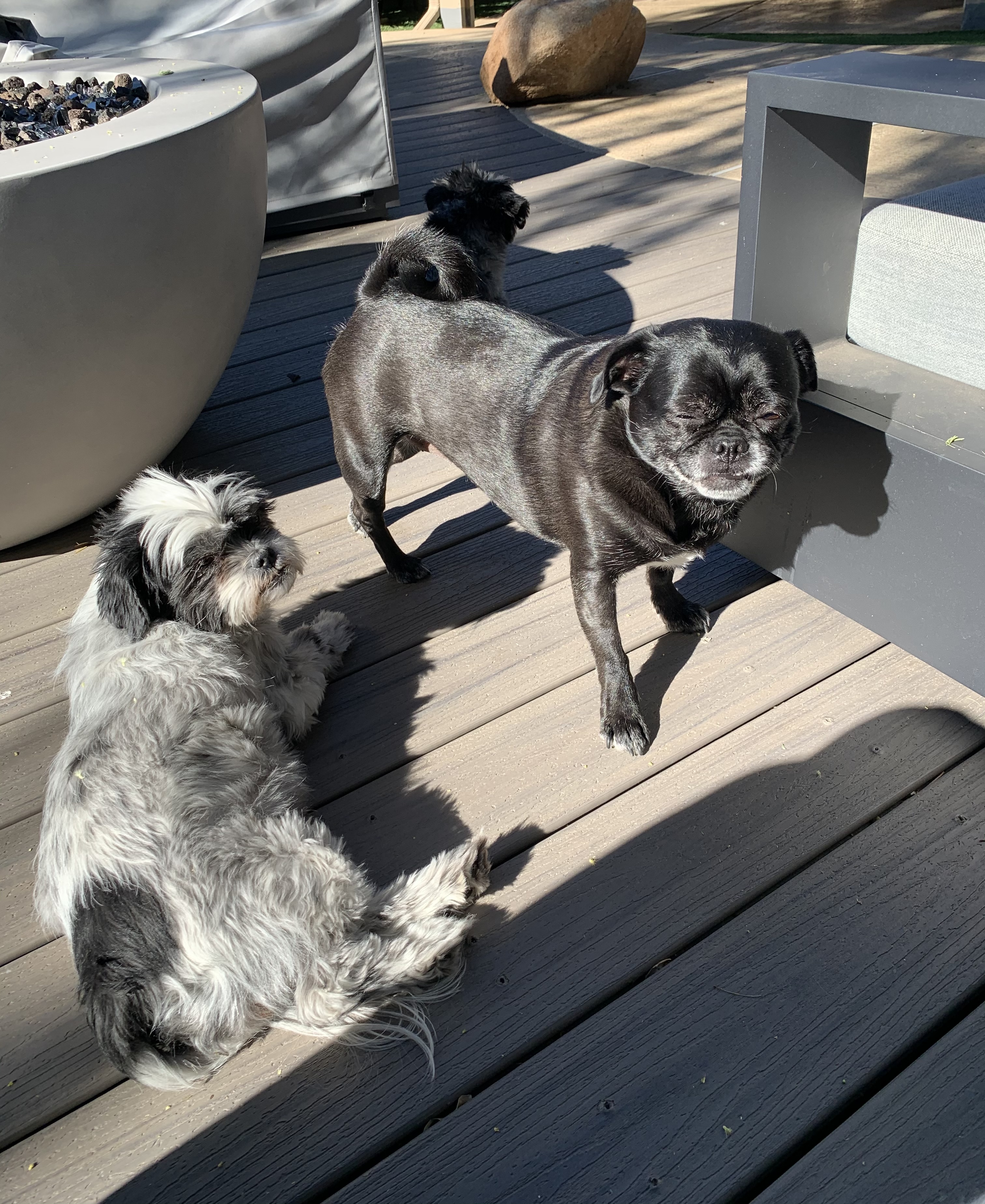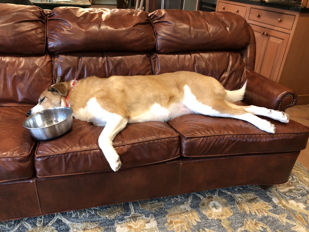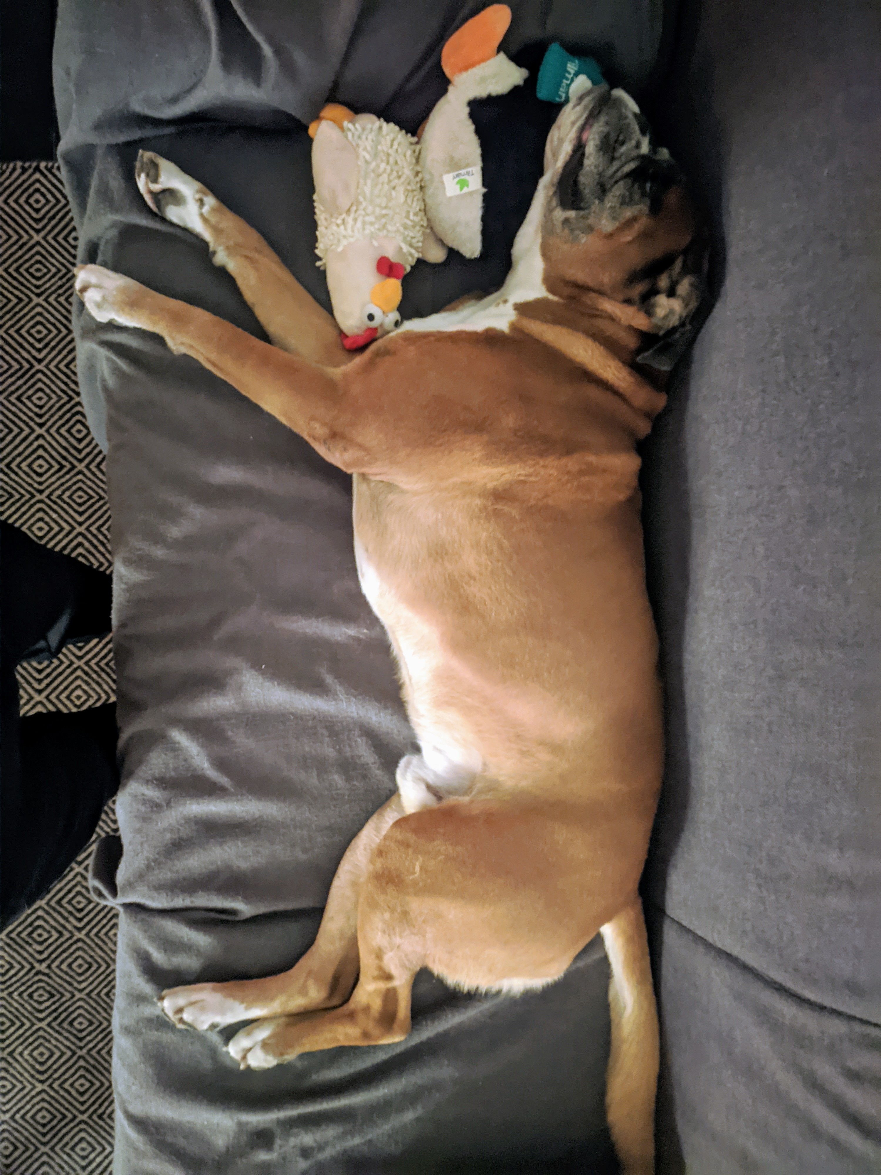 Not sure whether sugar plums are dancing in Charlie's head or if he got into the bowl of eggnog.....both, perhaps.
