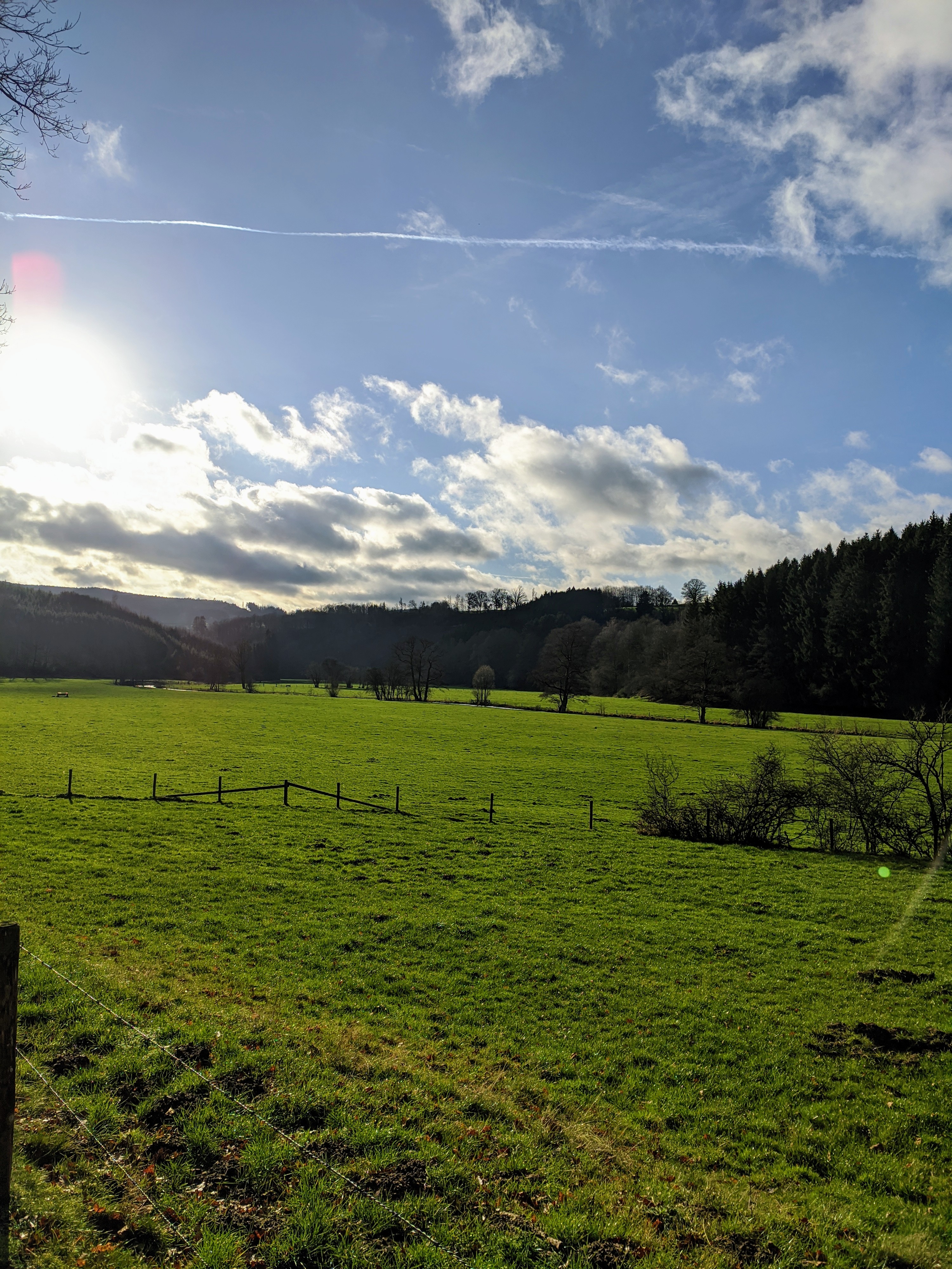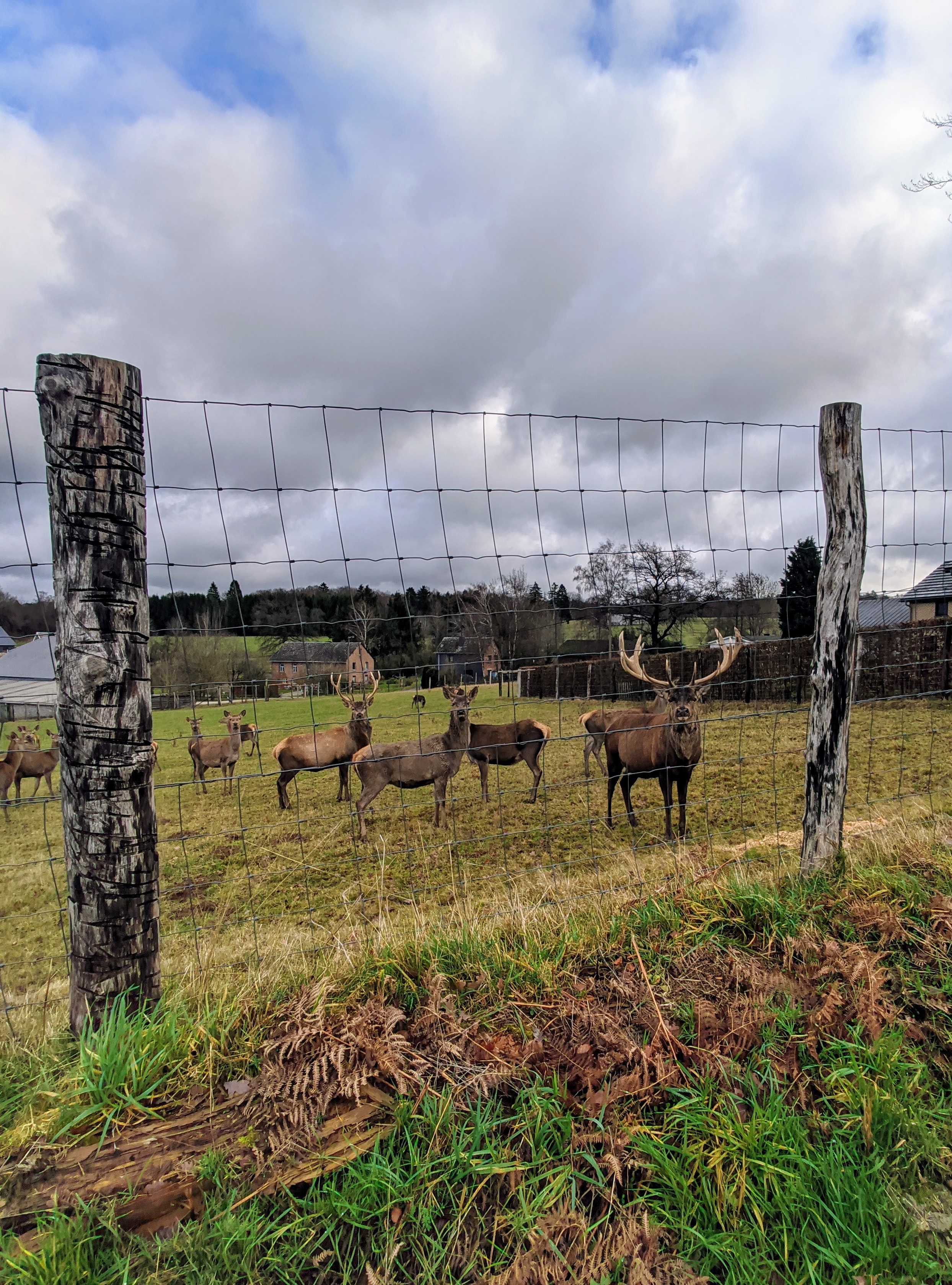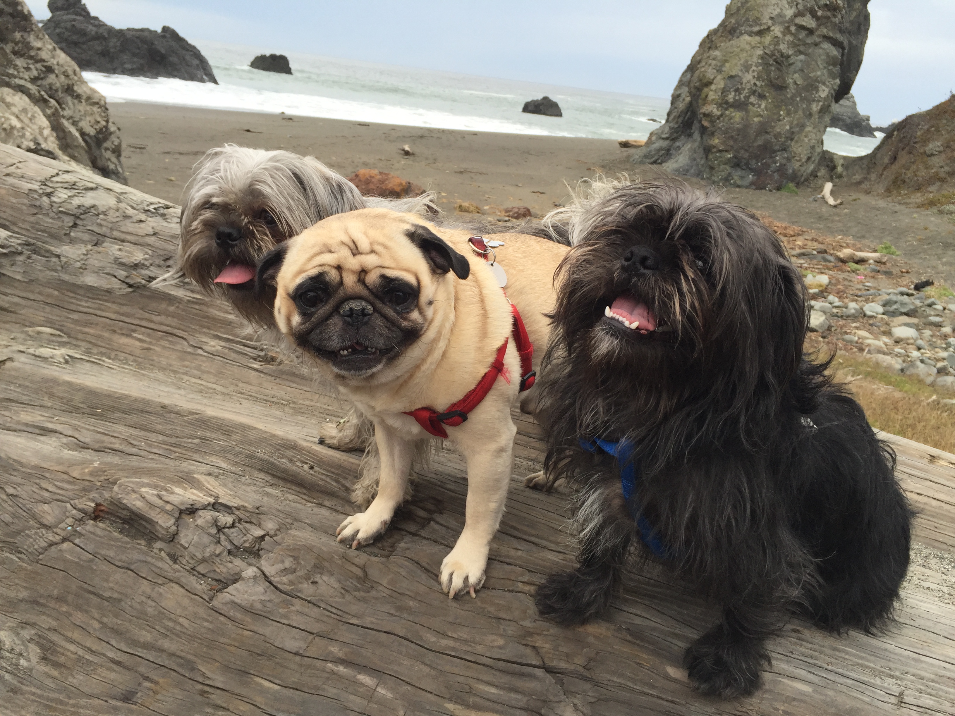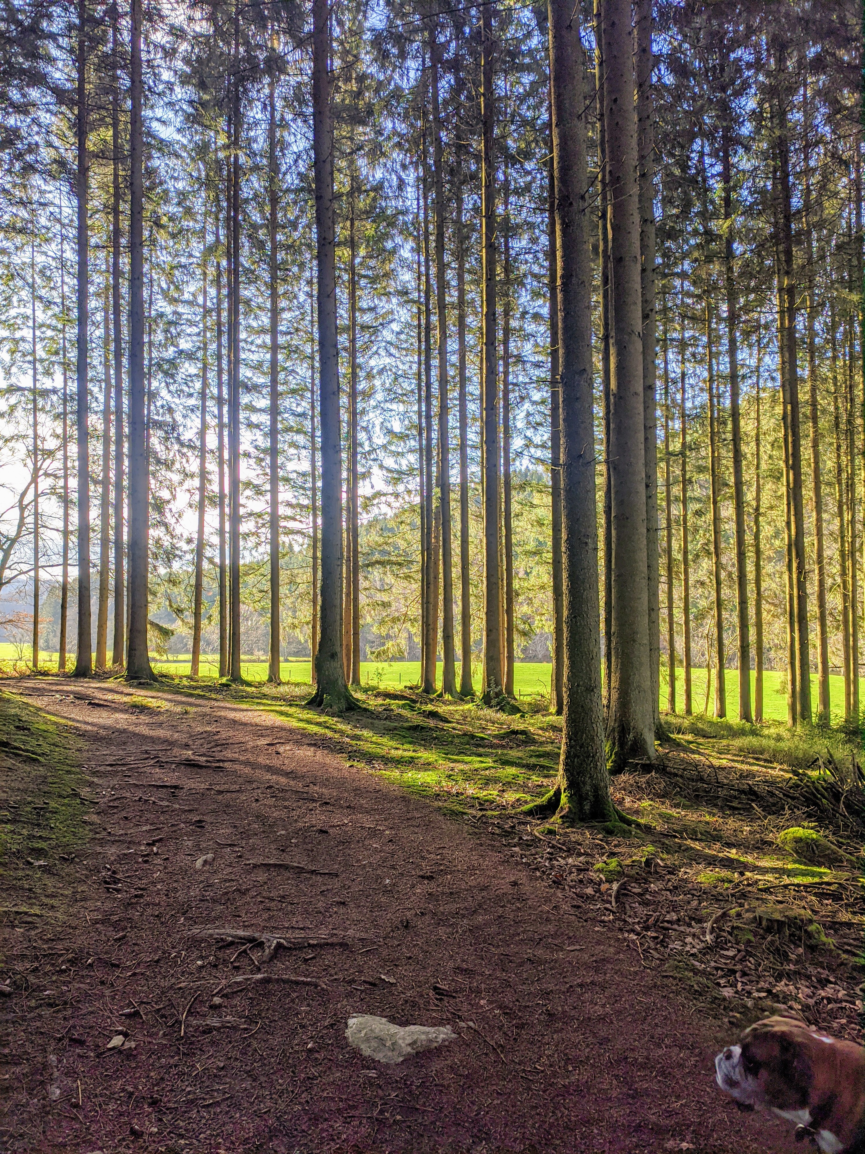 In a cabin in the mountains for a white snow-filled Christmas time. Doggy roasting herself by the fire.