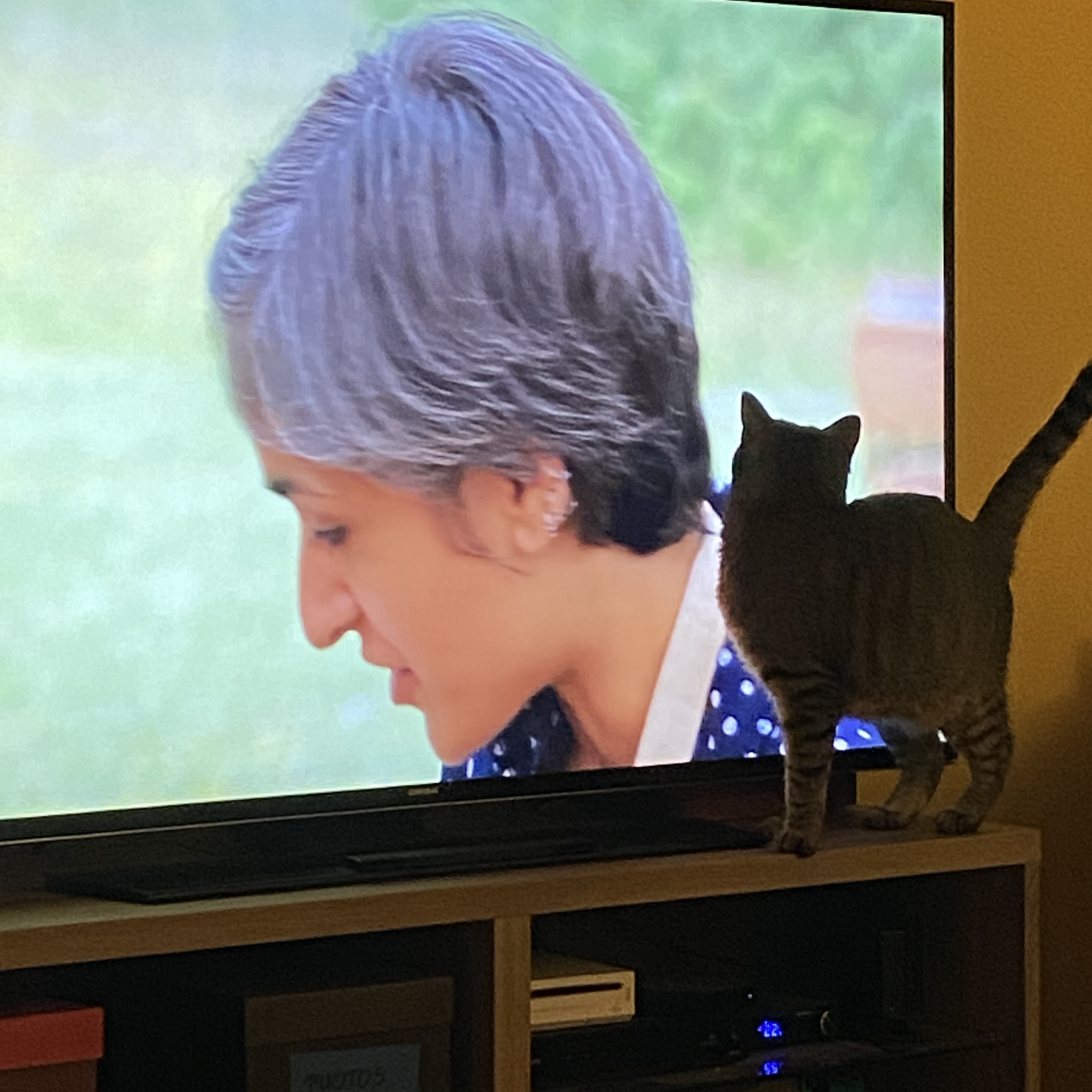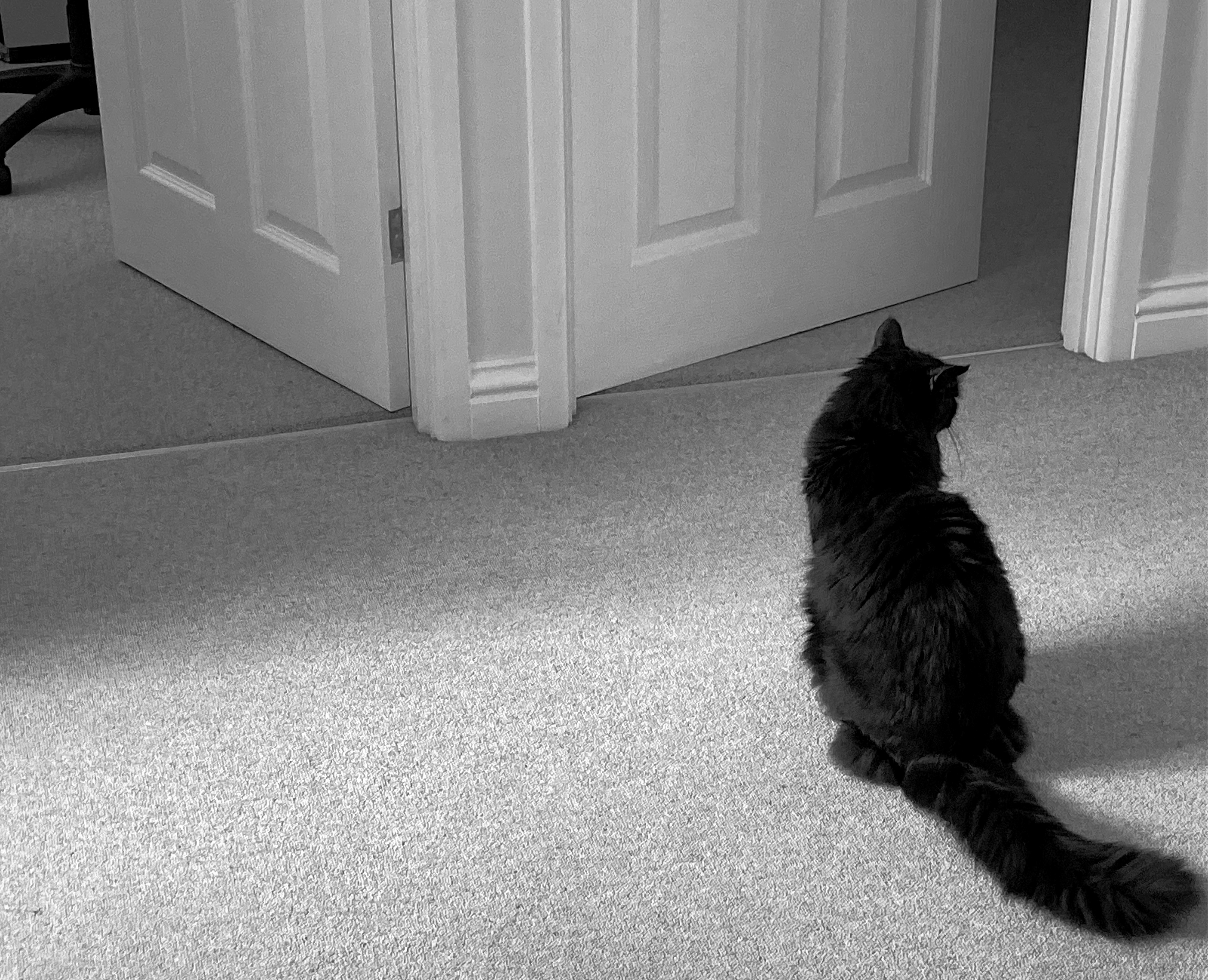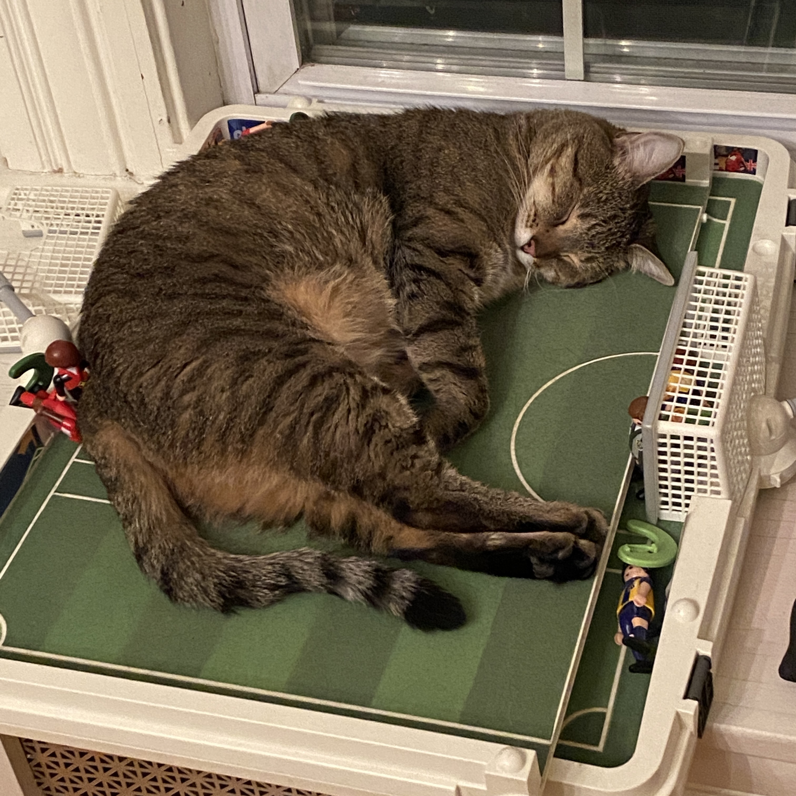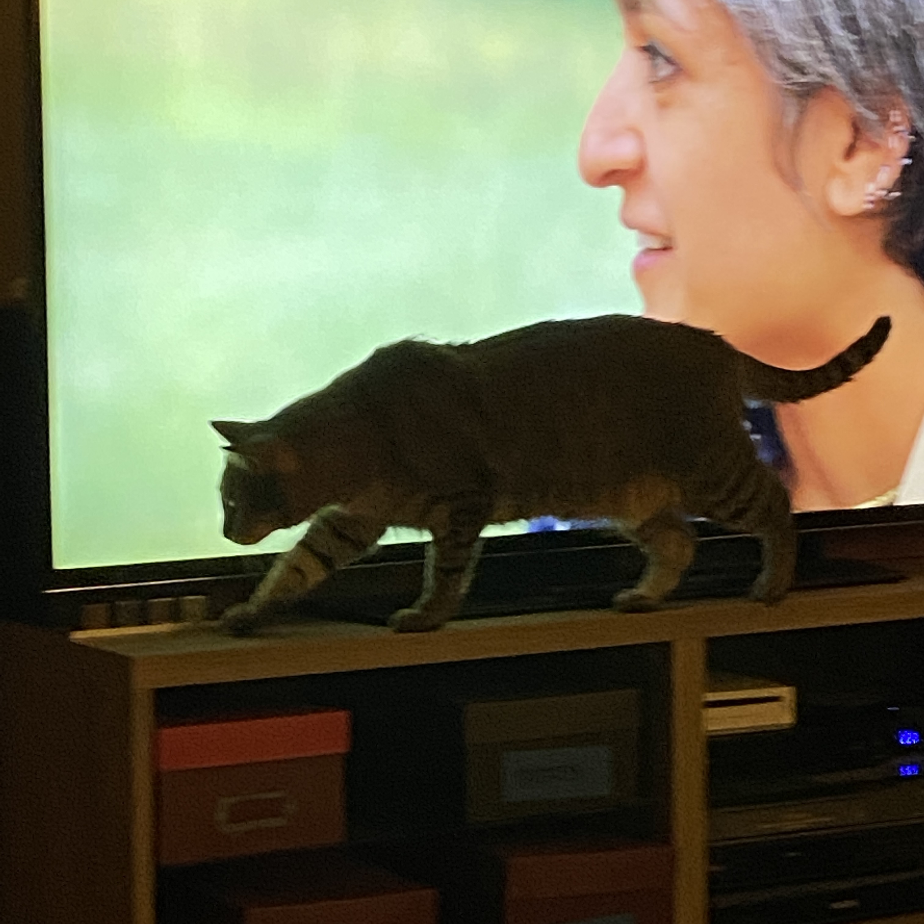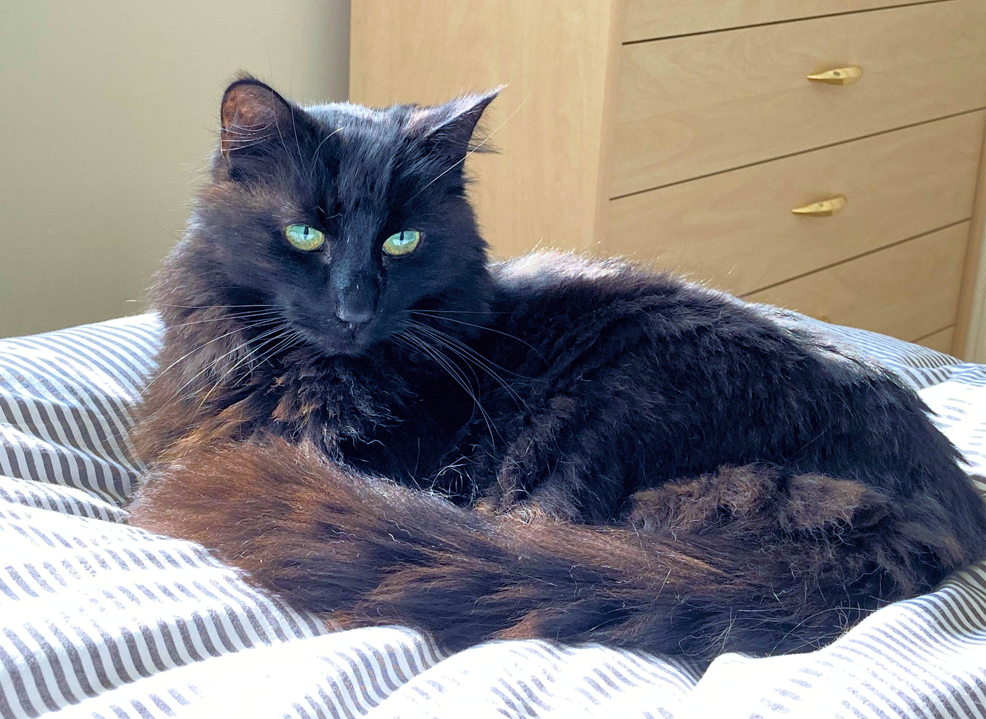 Last evening , my wife and I finished restoring and reupholstering this antique corner chair for our entry way for people to use while taking off and putting on shoes when entering or leaving the house. Guess who made sure he was the first to use it.