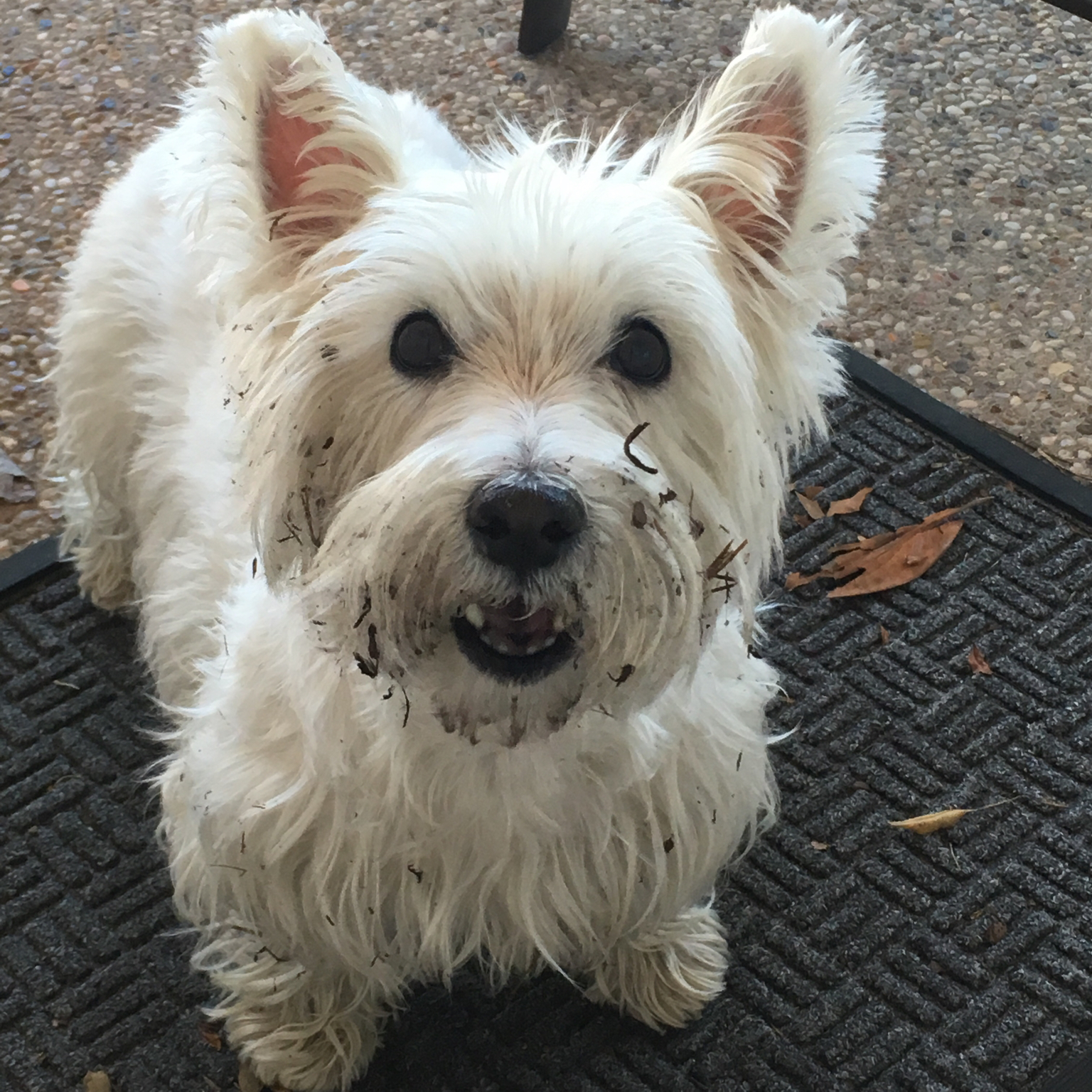 Charlie finished his breakfast then decided to go out and wipe his face in the flower bed