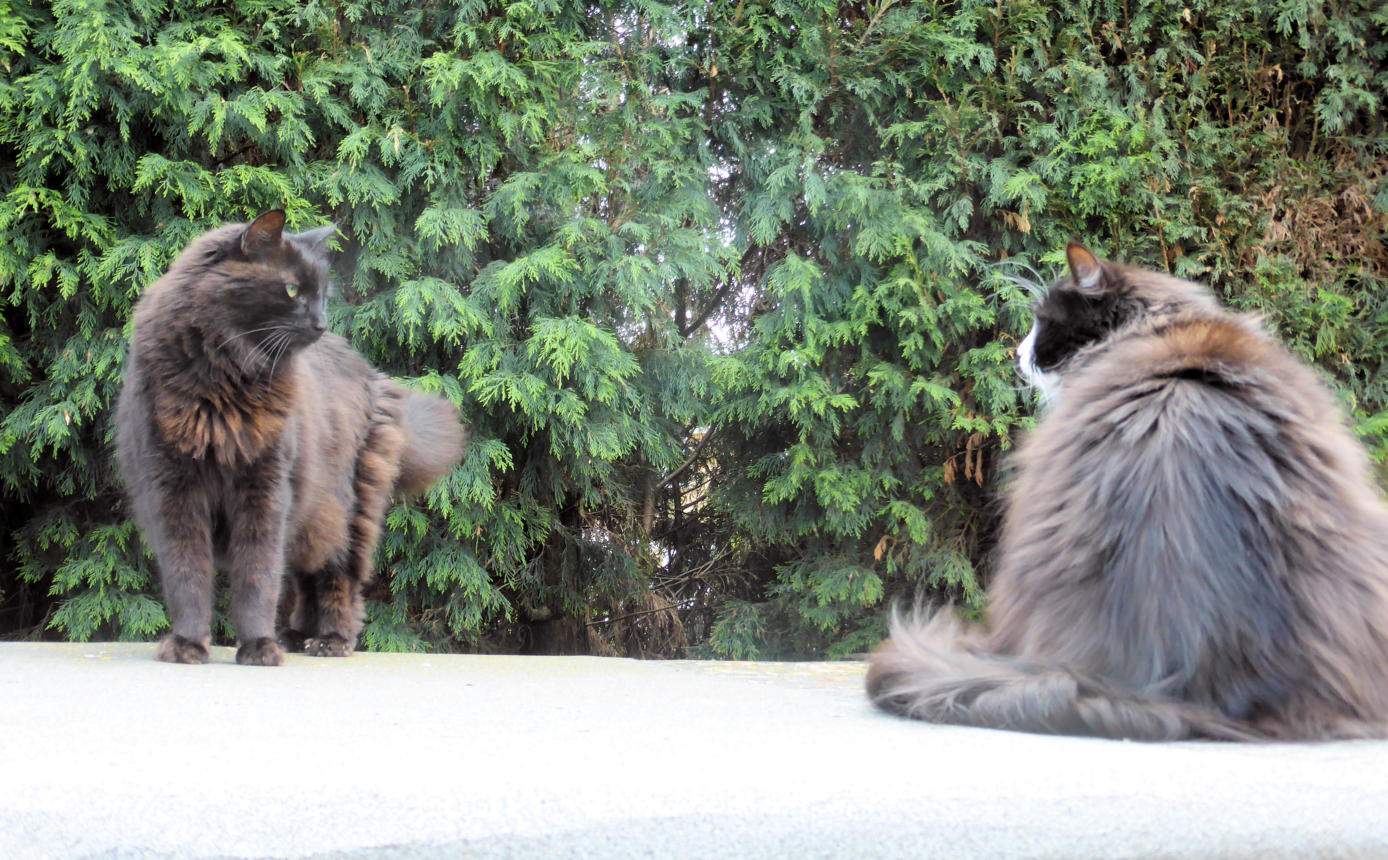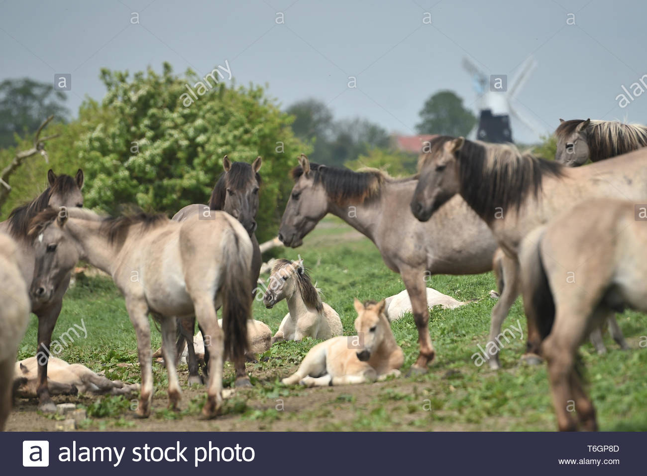 These Konik ponies do it too, part of the male battle for the females I think. These are semi-wild although quite used to humans and very curious, the younger ones will nibble anything to see if it's edible -- even bicycles and back-packs.