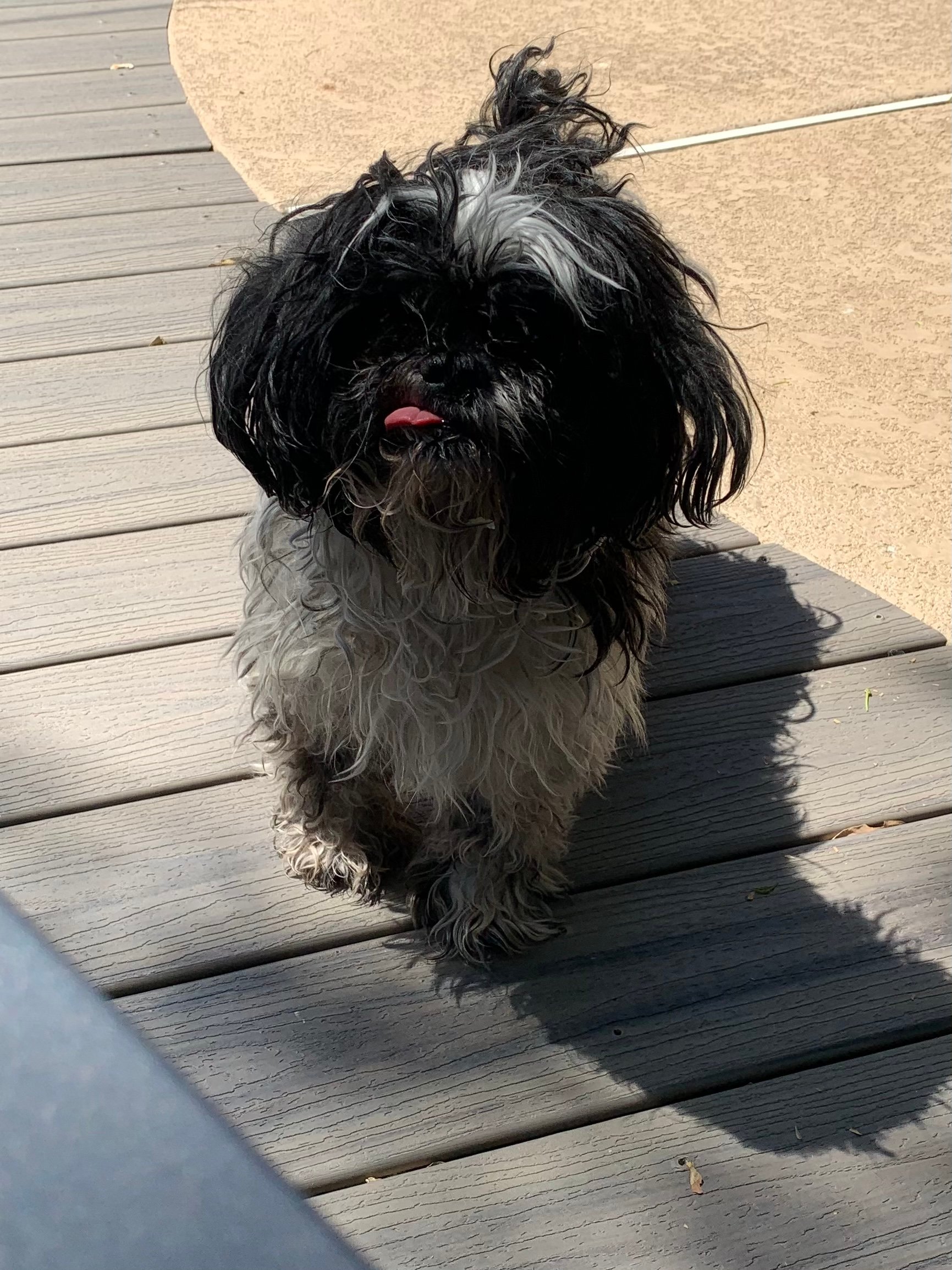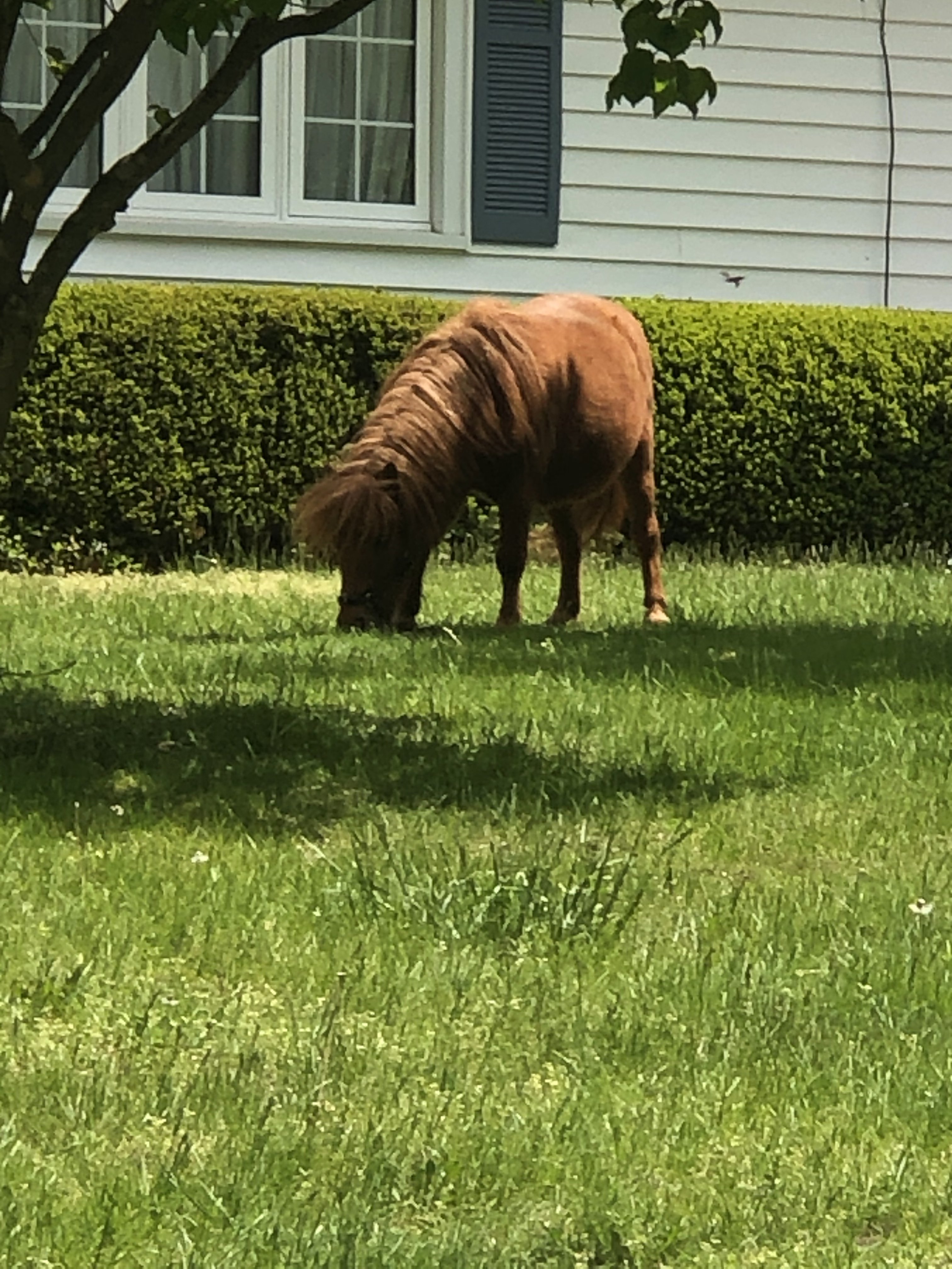 Ya know it’s kind of a mystery. It looks like he has enough room out back but I think he transports them must keep that at a farm or wherever people keep miniature horses. By the way hairy having a good day rolled around got her fur all dirty now recovering from the two minute frolic