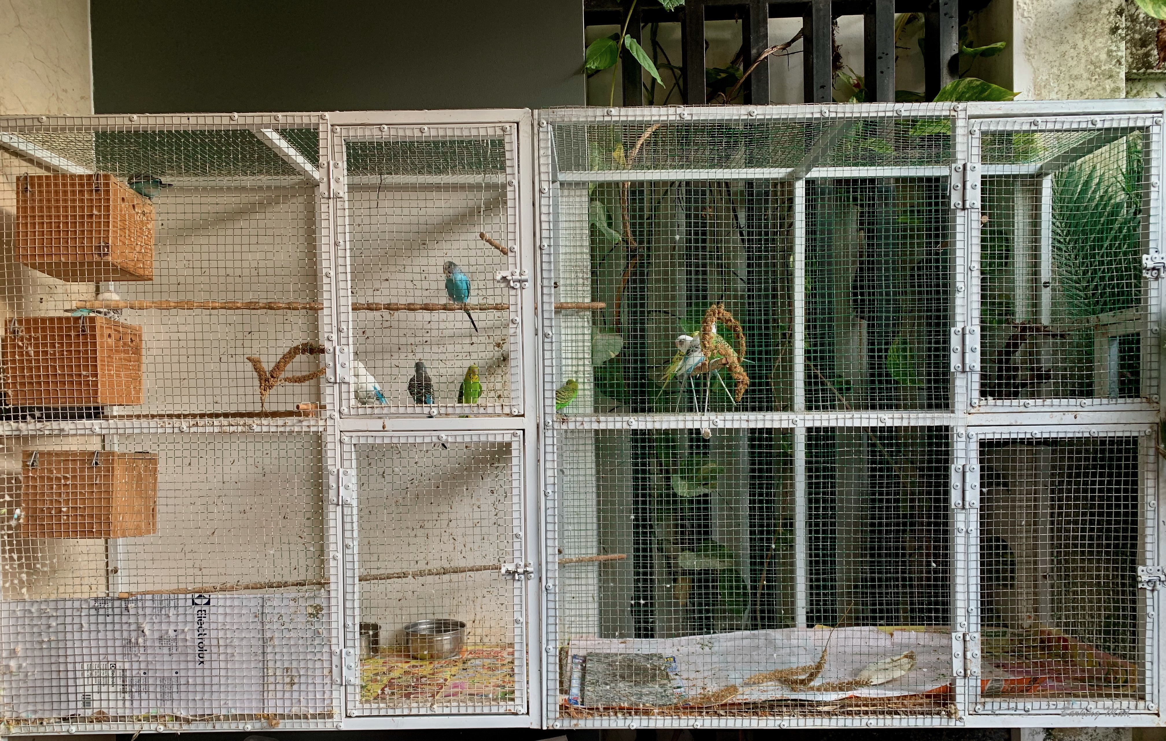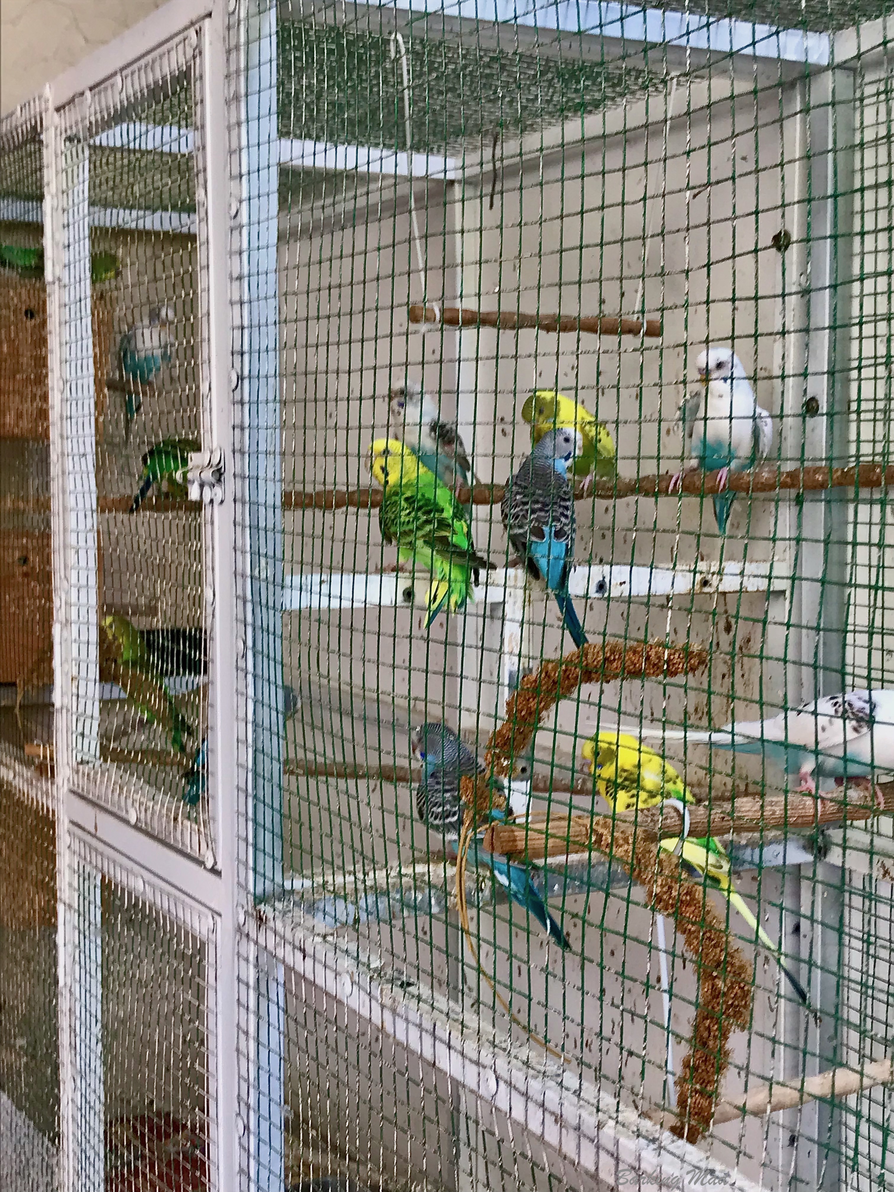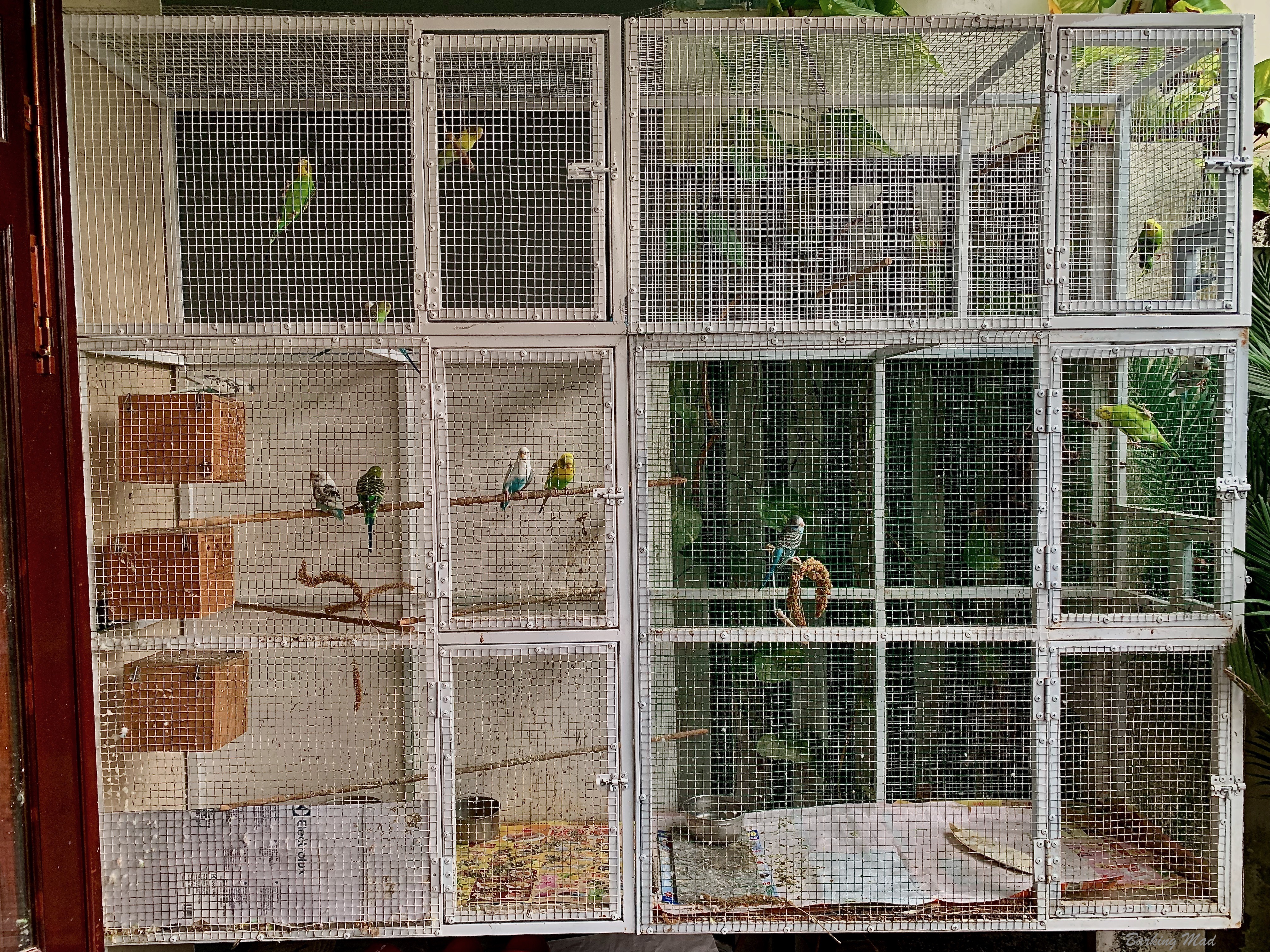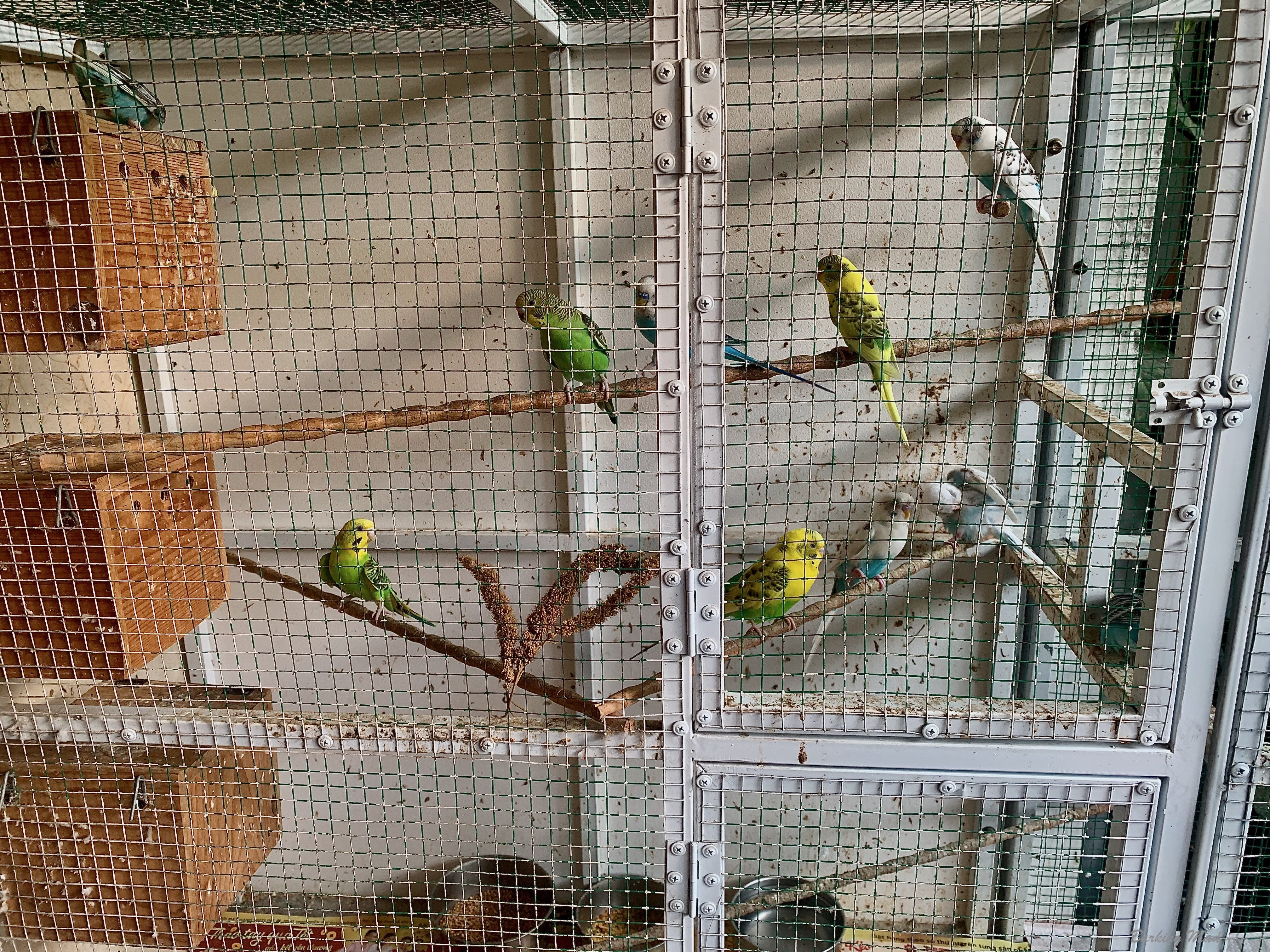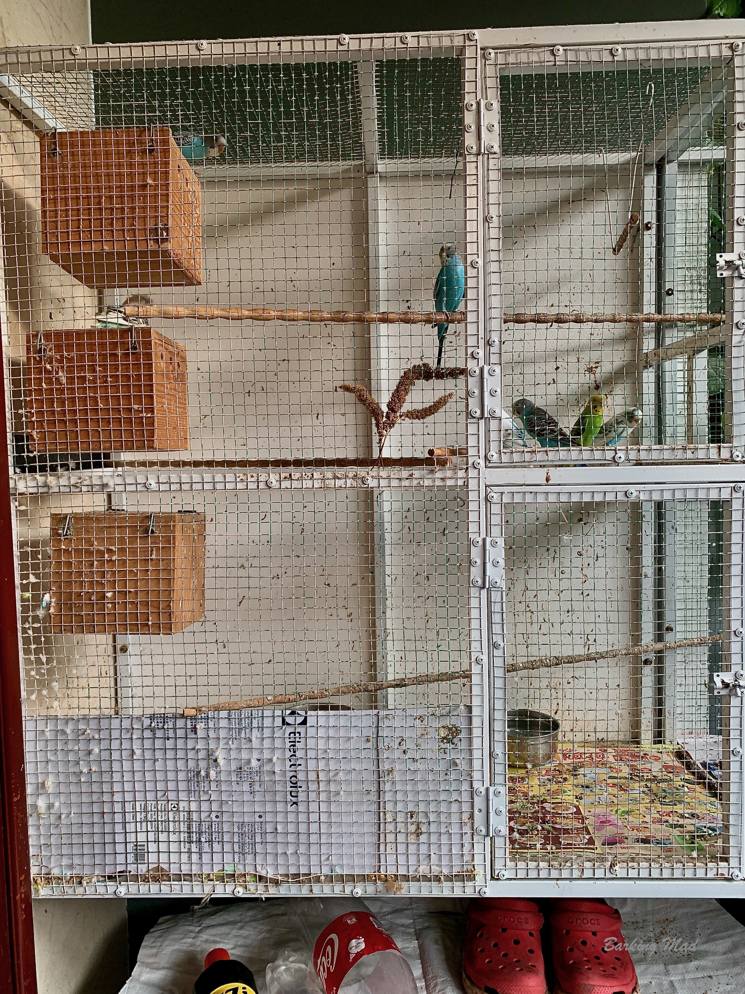 Seriously thinking about buying the budgies a television. Going through a population explosion at the moment. The blue one is a baby that hasn't left the nest yet.
