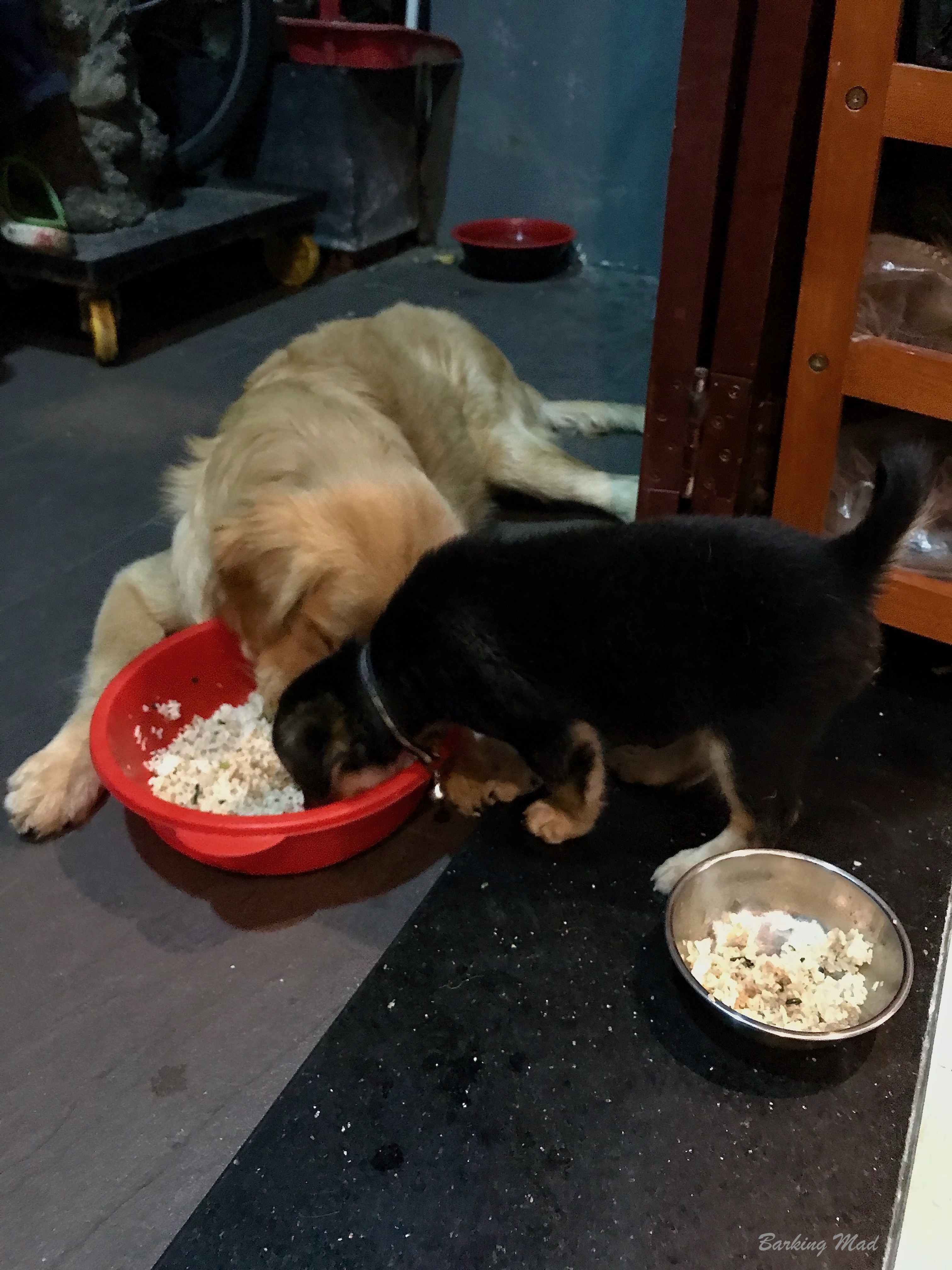 Got a big appetite for a little girl and it appears that Beaus food tastes best..