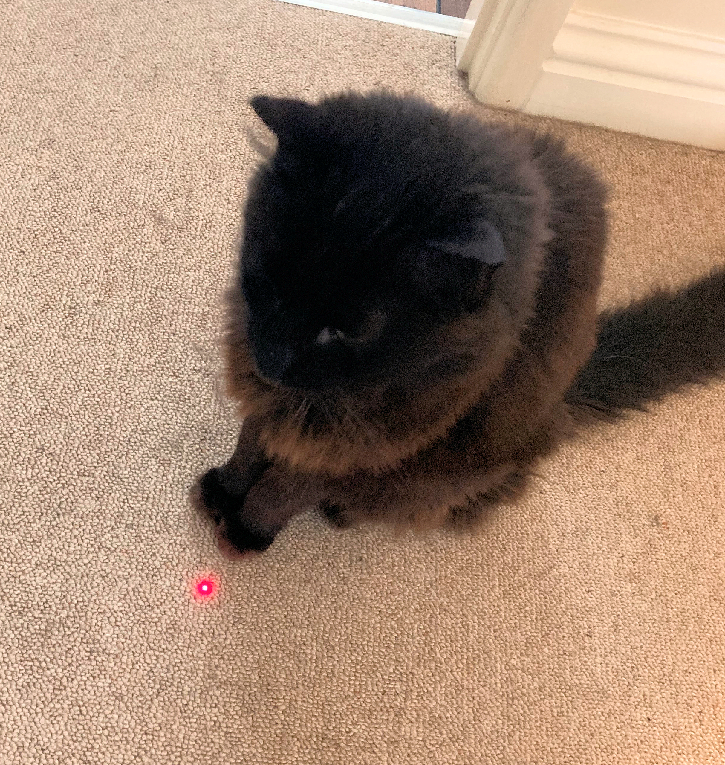 Engage your cat with a laser pointer the internet said… interactive and fun for them it said…