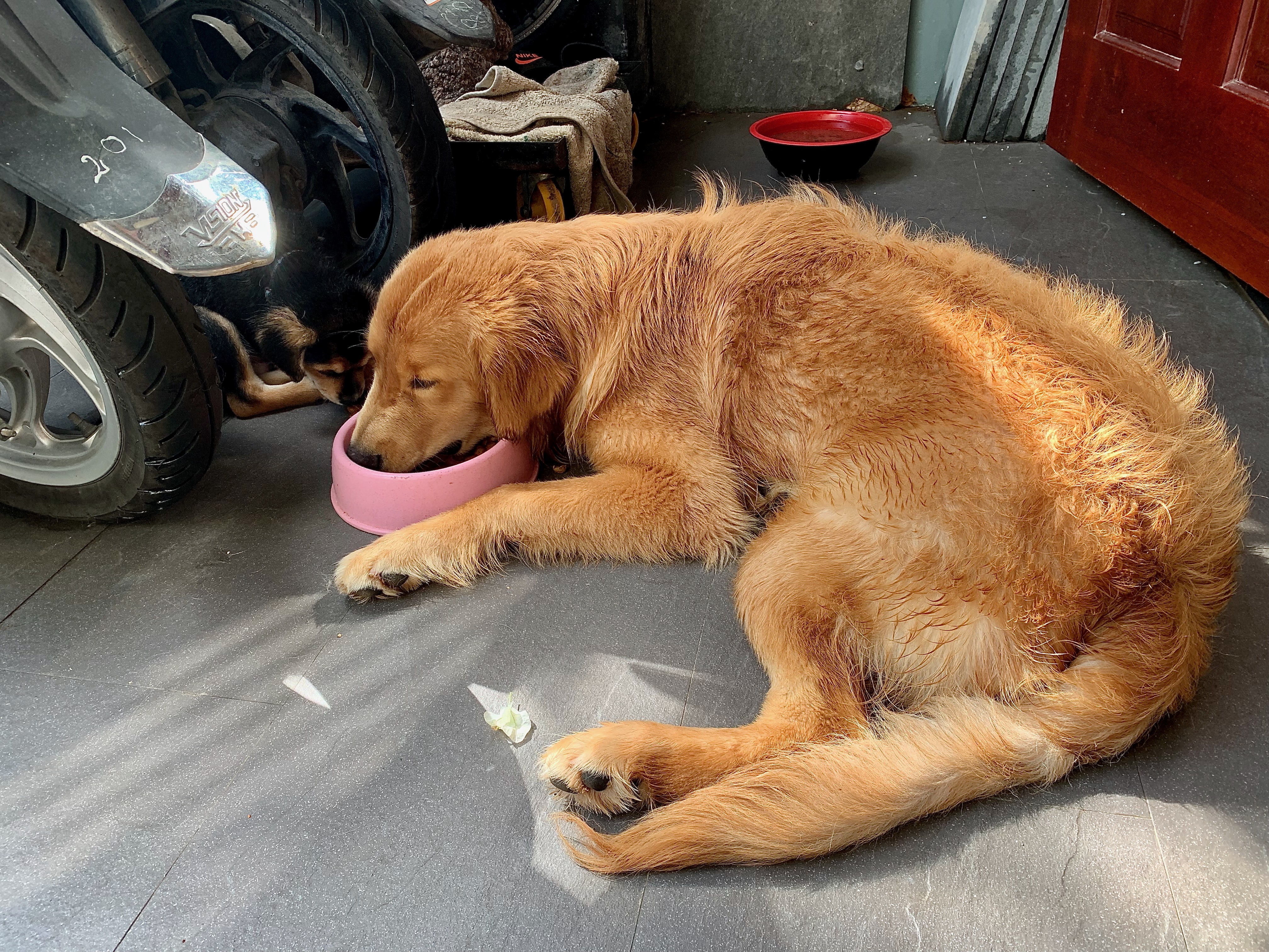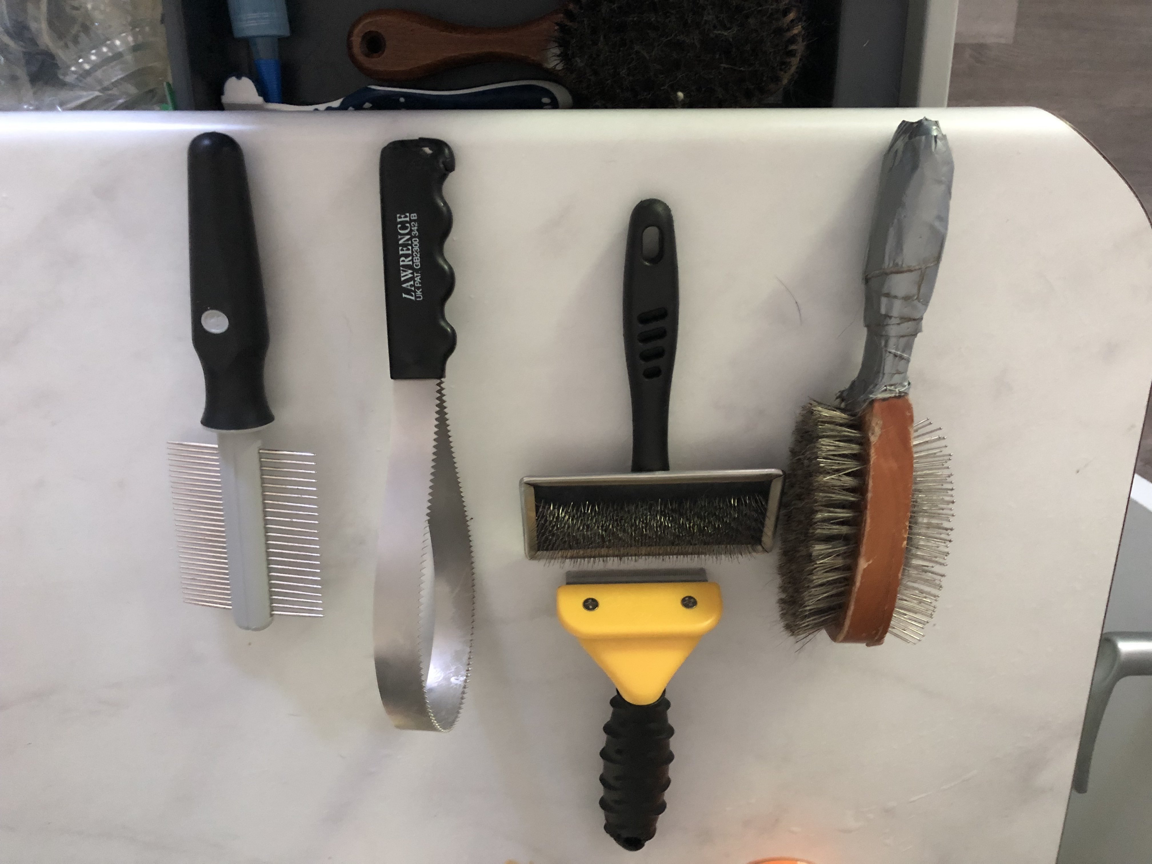 Summer coat coming out and winter coat coming in….This was the first session with the shedding blade. Piles are getting smaller. Fur patrol inside is a daily chore.