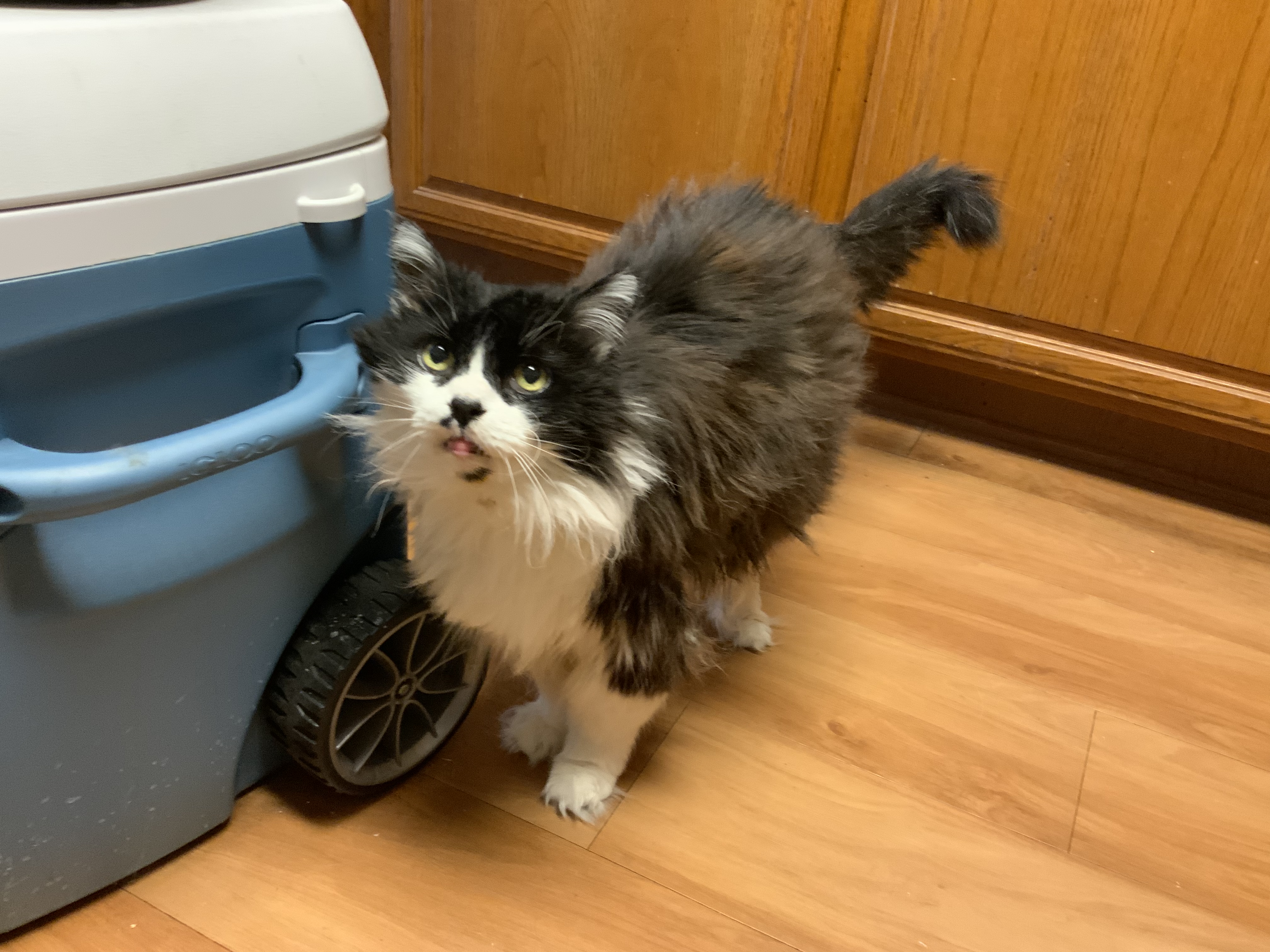 This was the first night, Neo found him under a car. The poor thing was all dirty, and probably only a few weeks old.