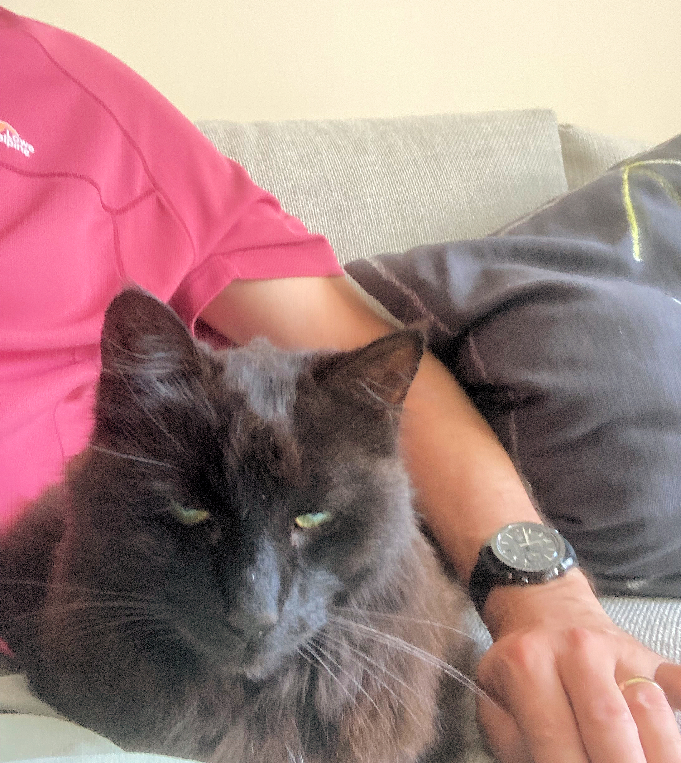 The cats of course hate the torture box we put them in for the drive. It is a little easier when we were allowed to go in because I could hold them as the vet violently attacked them with their gentle touch.