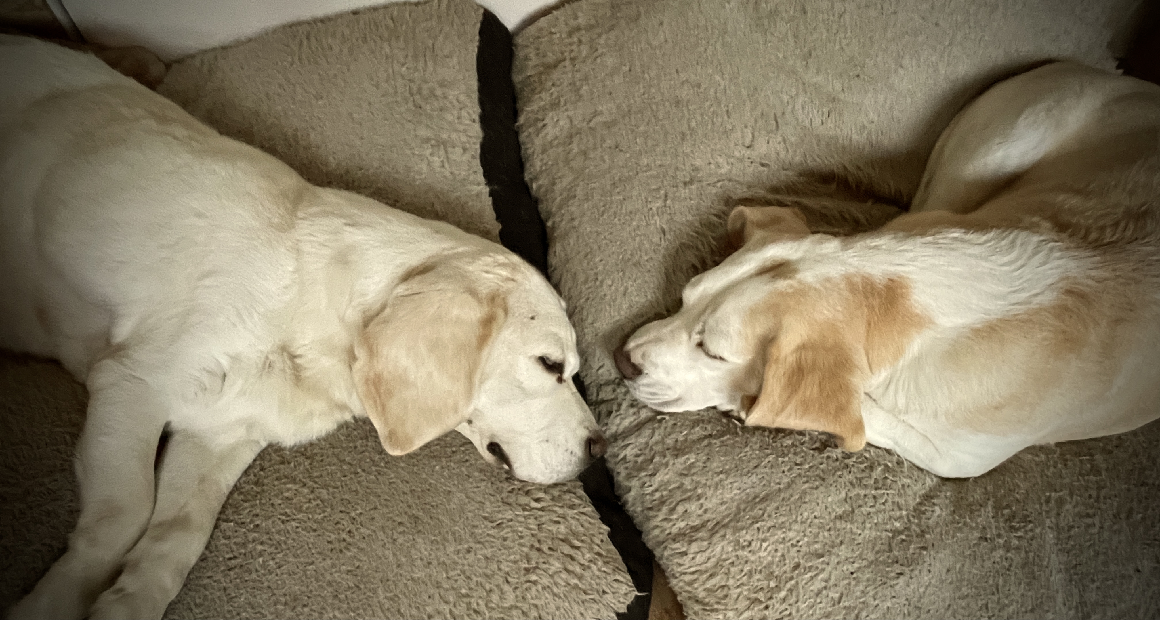 Maeve is clever - she just waits in the background for Remi to do the work, and if treats come out she walks up and gets one too!