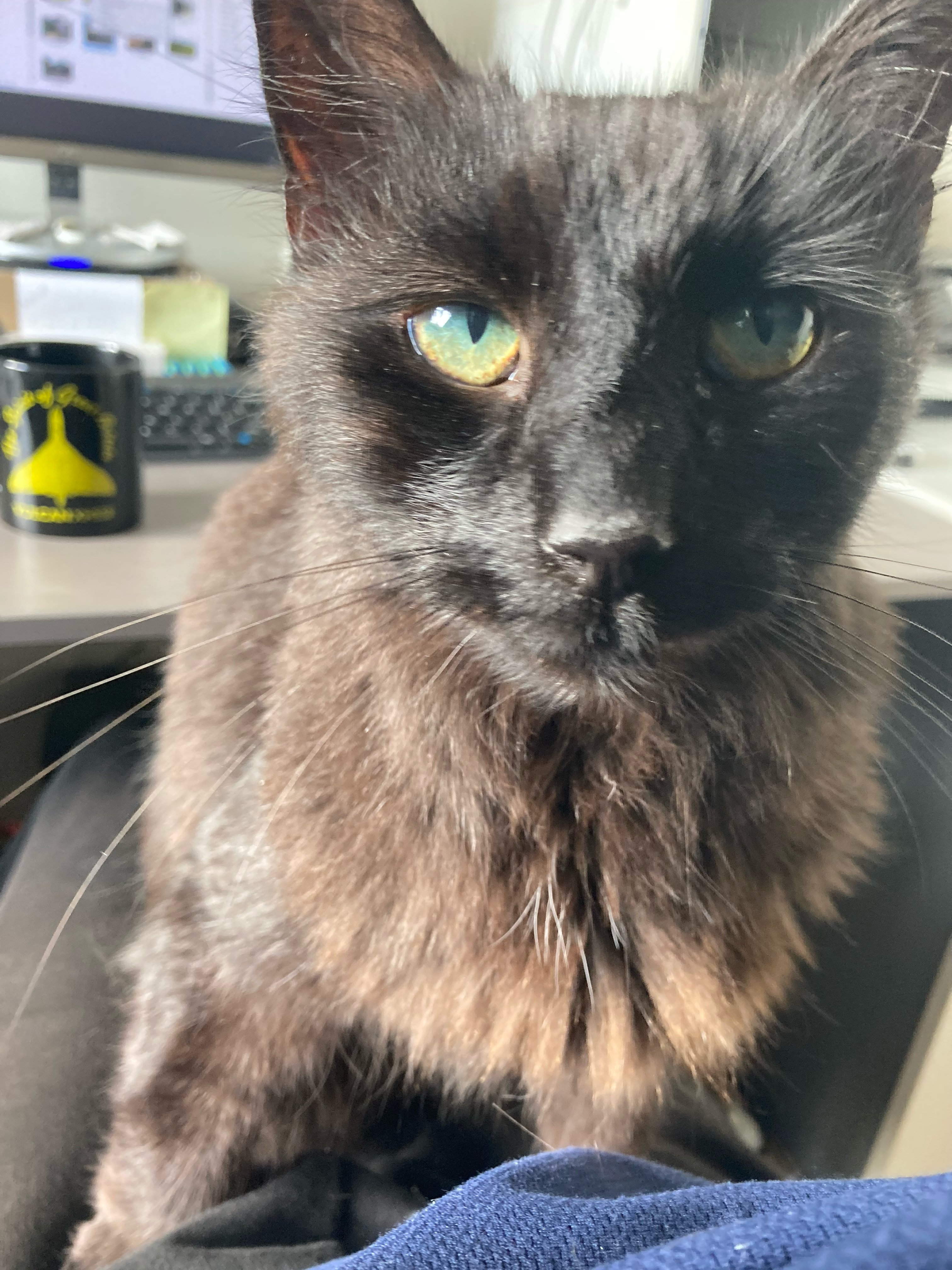 Remi will often come up to my chair and stare at me wanting a treat. This can go on for hours, so last night I decided to see what he would endure...so he had this potholder on his head for about 30 minutes...