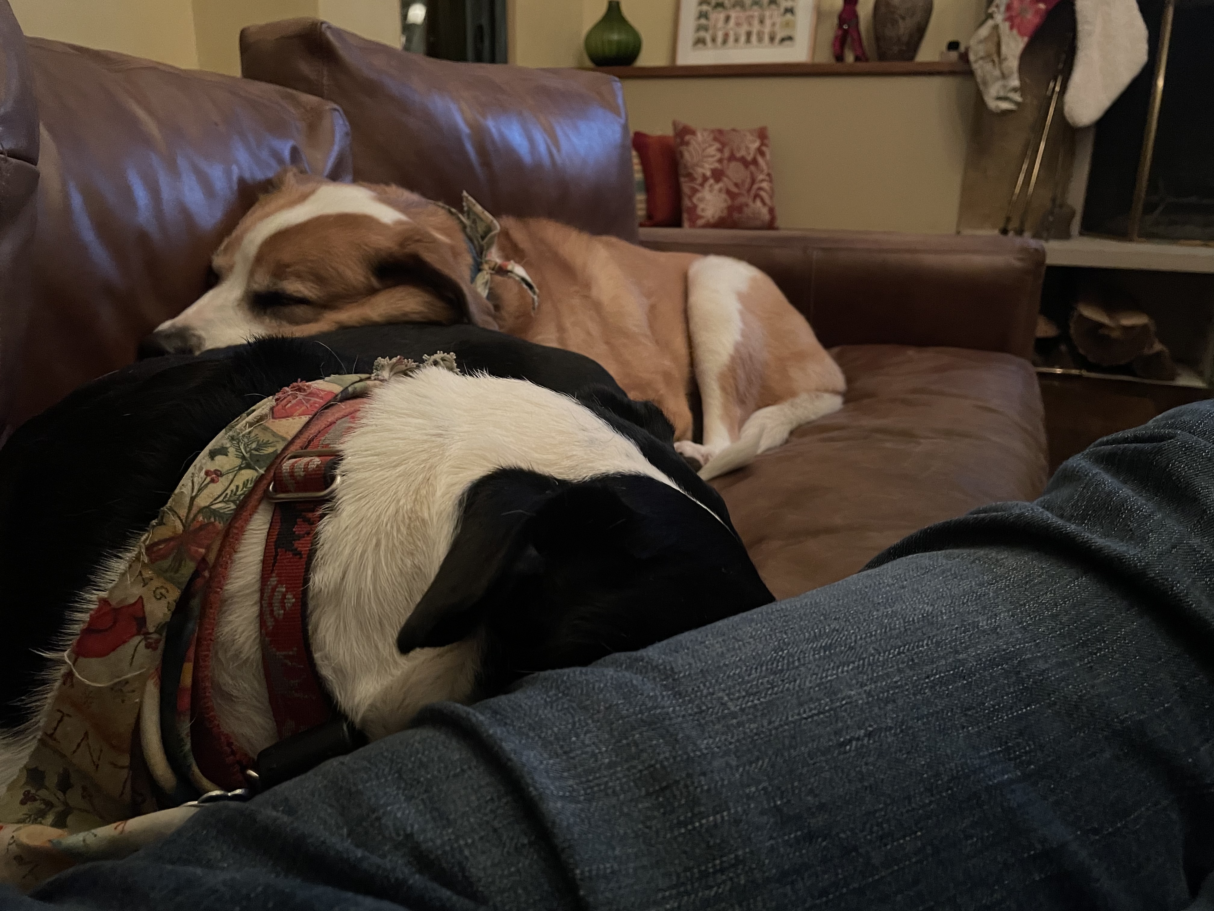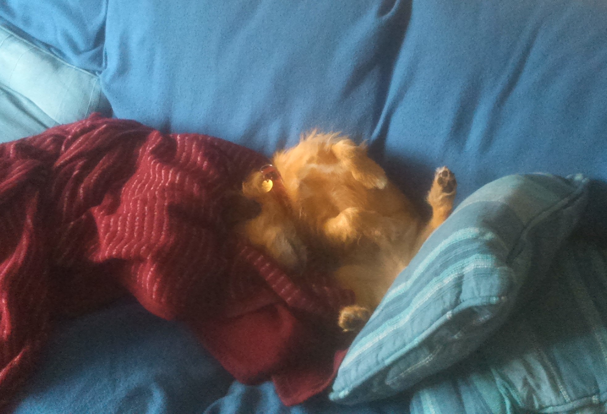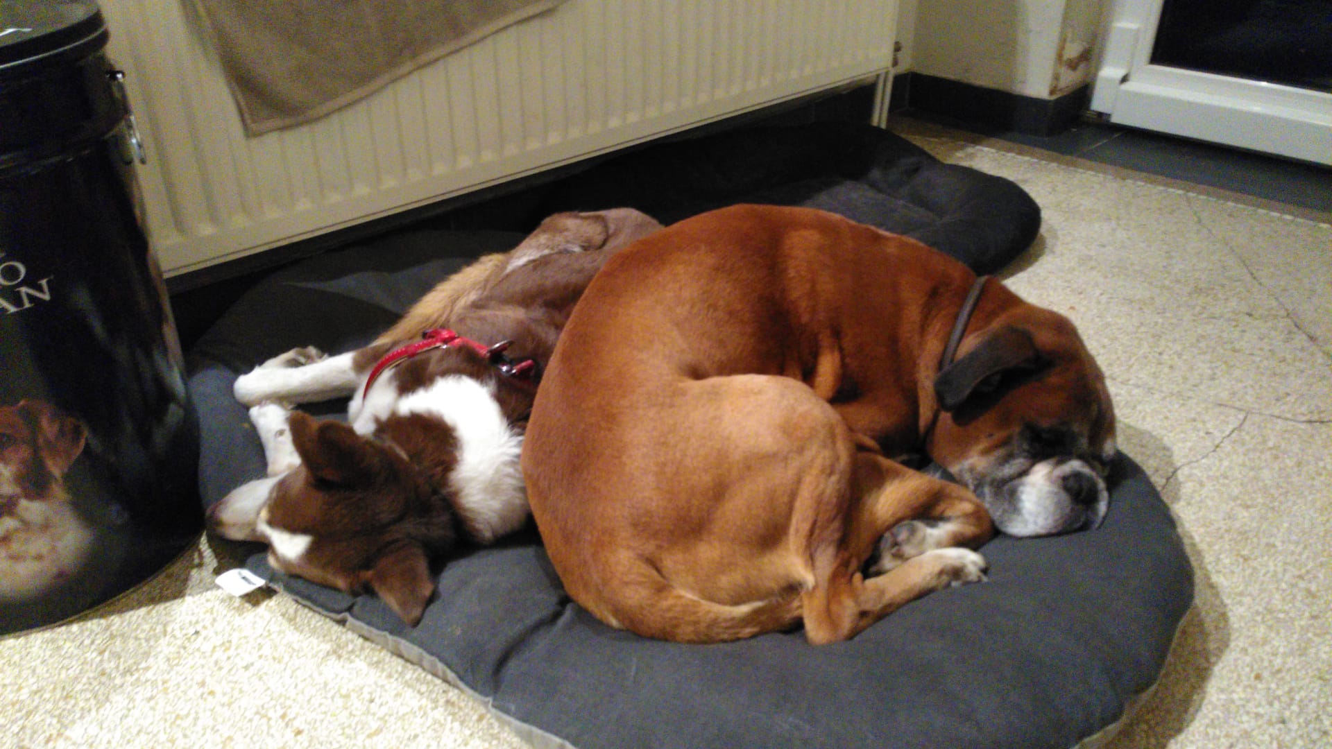 So, the dog sitter sent me a picture of Neo... He is enjoying himself, and even sharing a bed with an old enemy of his 😀 ... They are now friends but 5-6 years ago, they were almost fighting each others!