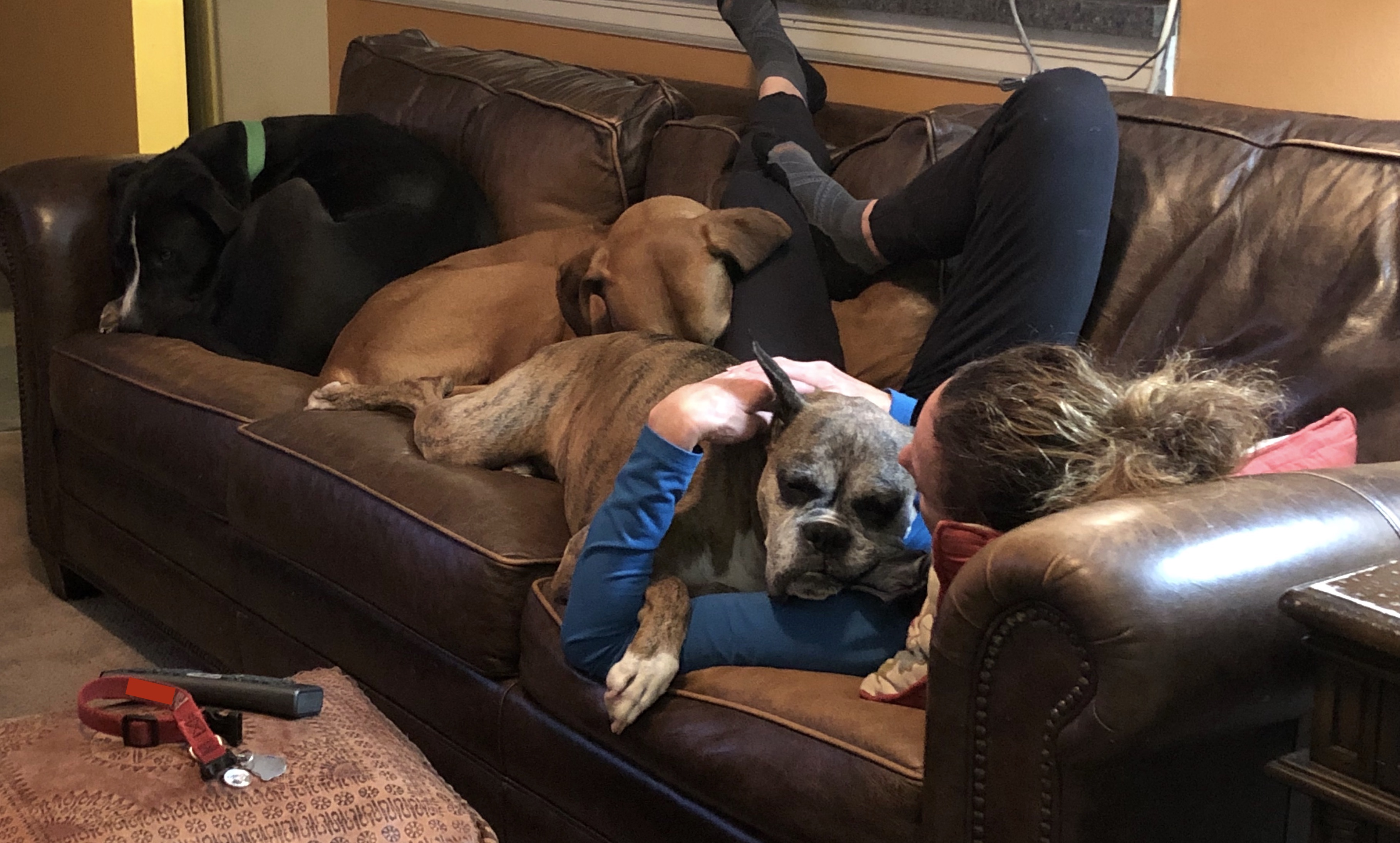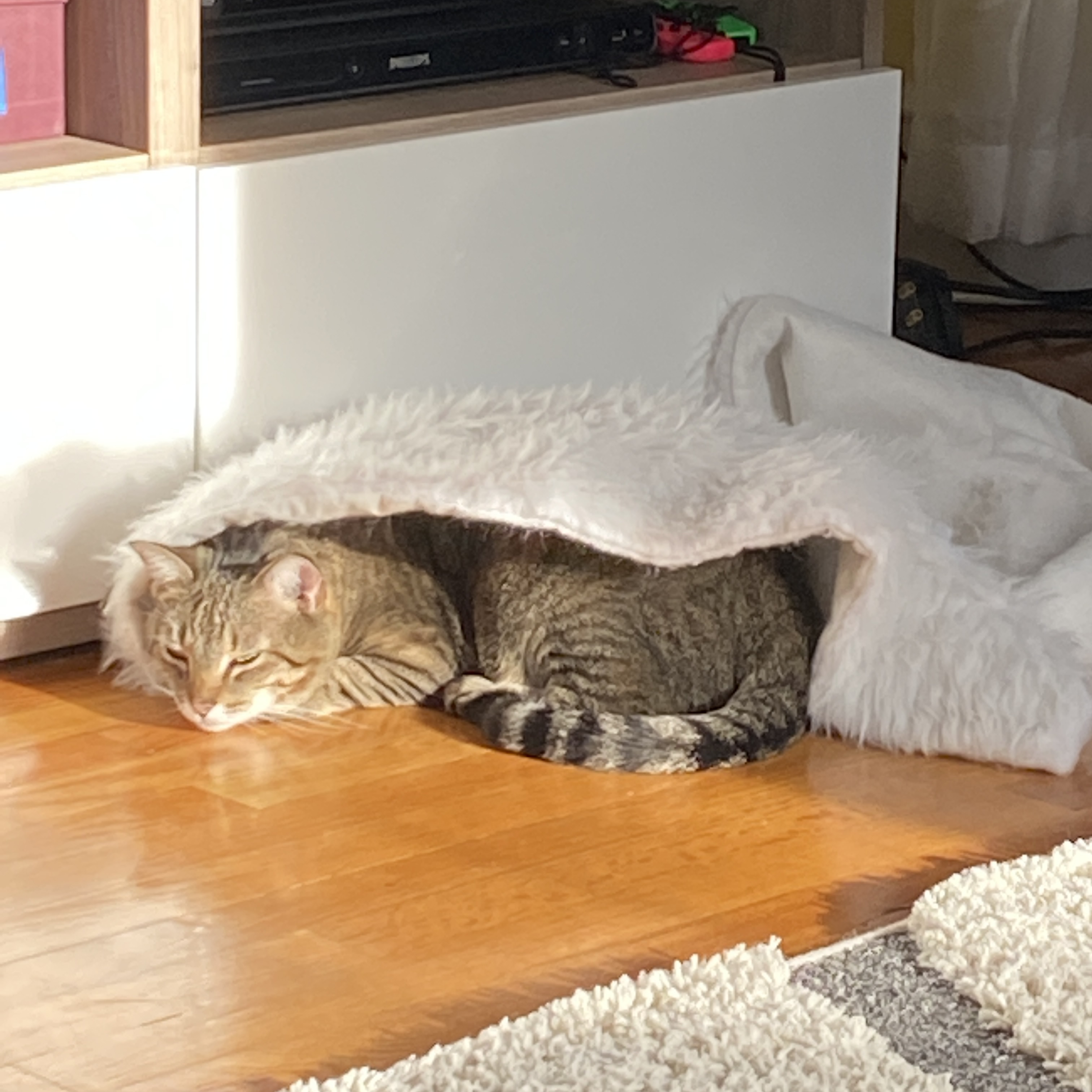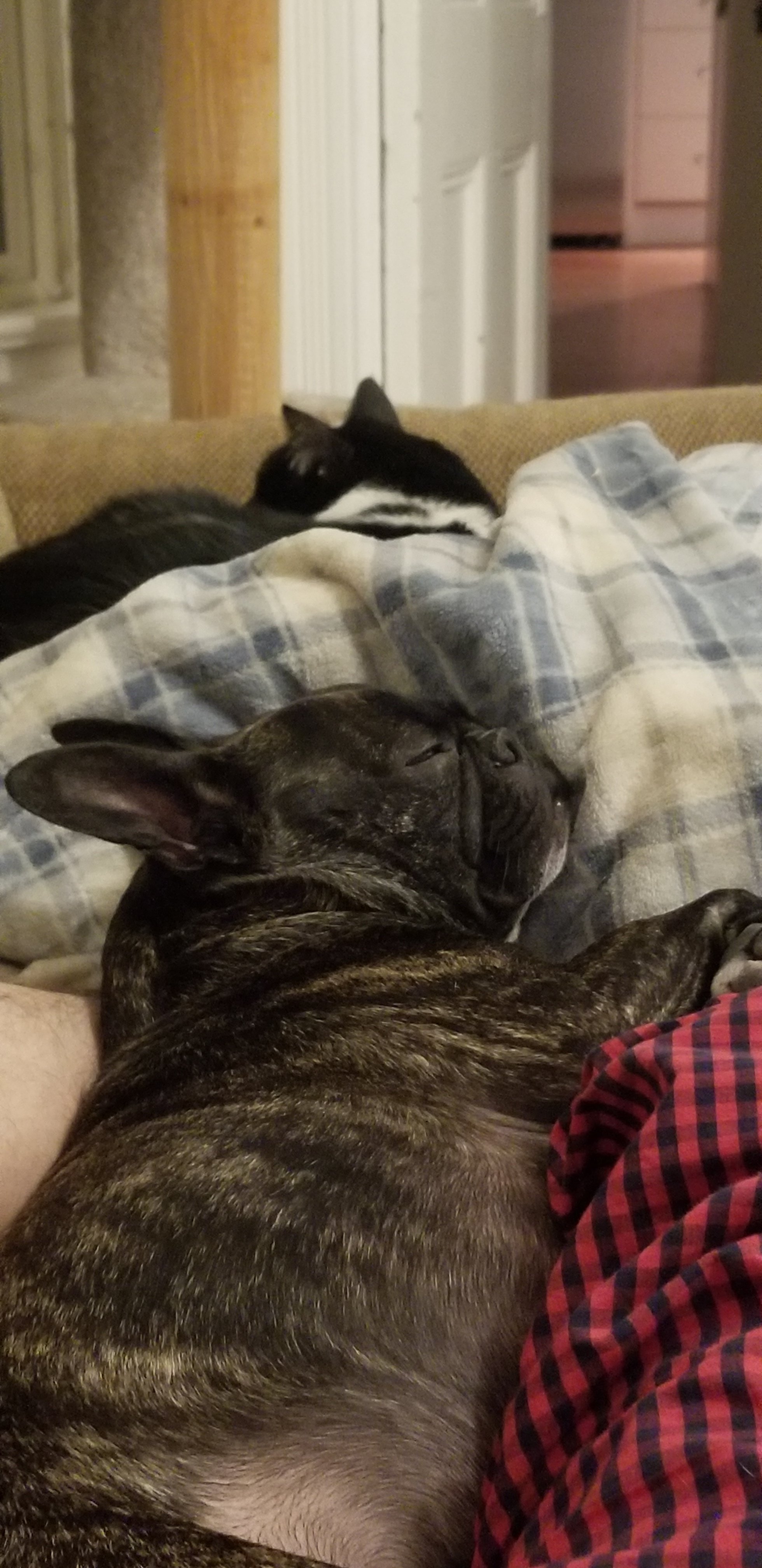 So, the dog sitter sent me a picture of Neo... He is enjoying himself, and even sharing a bed with an old enemy of his 😀 ... They are now friends but 5-6 years ago, they were almost fighting each others!