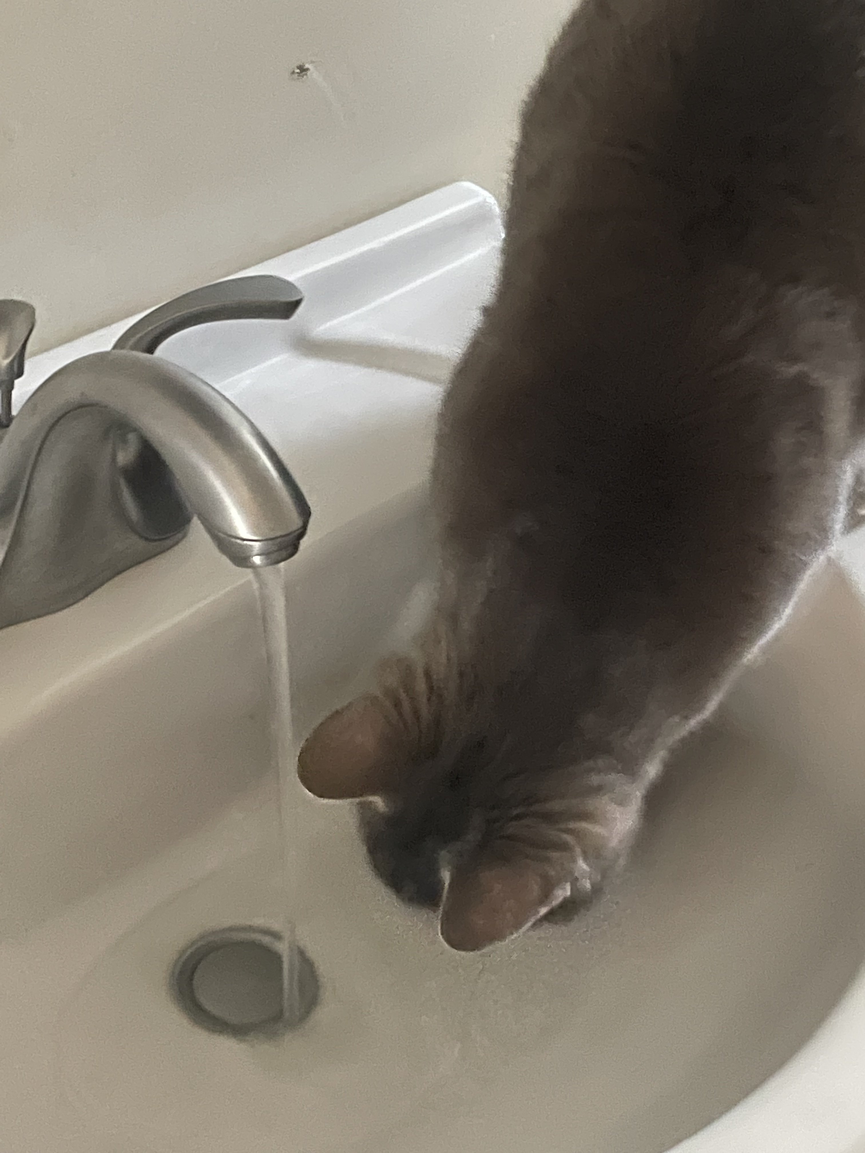 My good old Baxter who passed at the beginning of the year did the same thing. I used to wonder what that’s about but I noticed when he didn’t do it he would get a nose full of water and cough. I started to think perhaps it’s easier them to see the water level when the water is in motion. I read an article about cats vision and their site becomes more clear when they see movement. Mind you I’m putting this all together myself and could be completely wrong