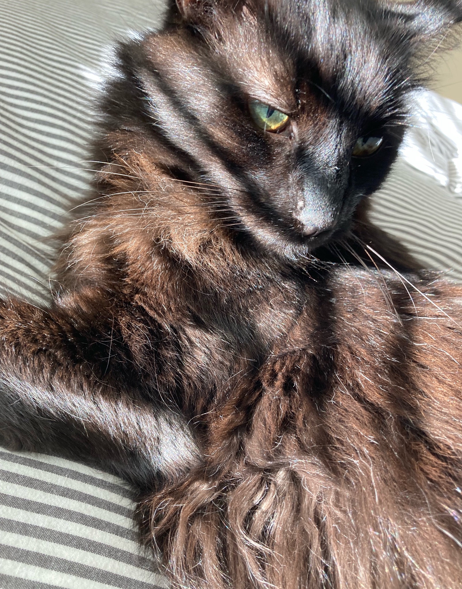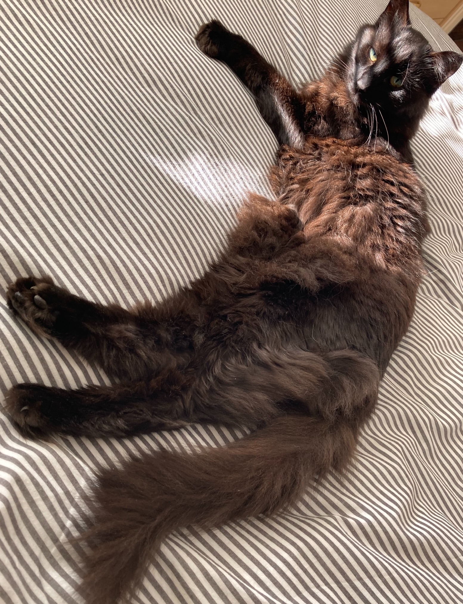 Great news, great picture and that bridge is cool as hec. Here is alphas cat counterpart today who I’m 99% sure will be 26 this year if she makes it to whatever time it is the vet sends the birthday card. She always has food on her face now as she has to jam her face in the food-bowl as I’m putting the food in and I just let her do what she wants it’s all good I know she is reaching the end so I’m rolling with it kinda preparing myself.