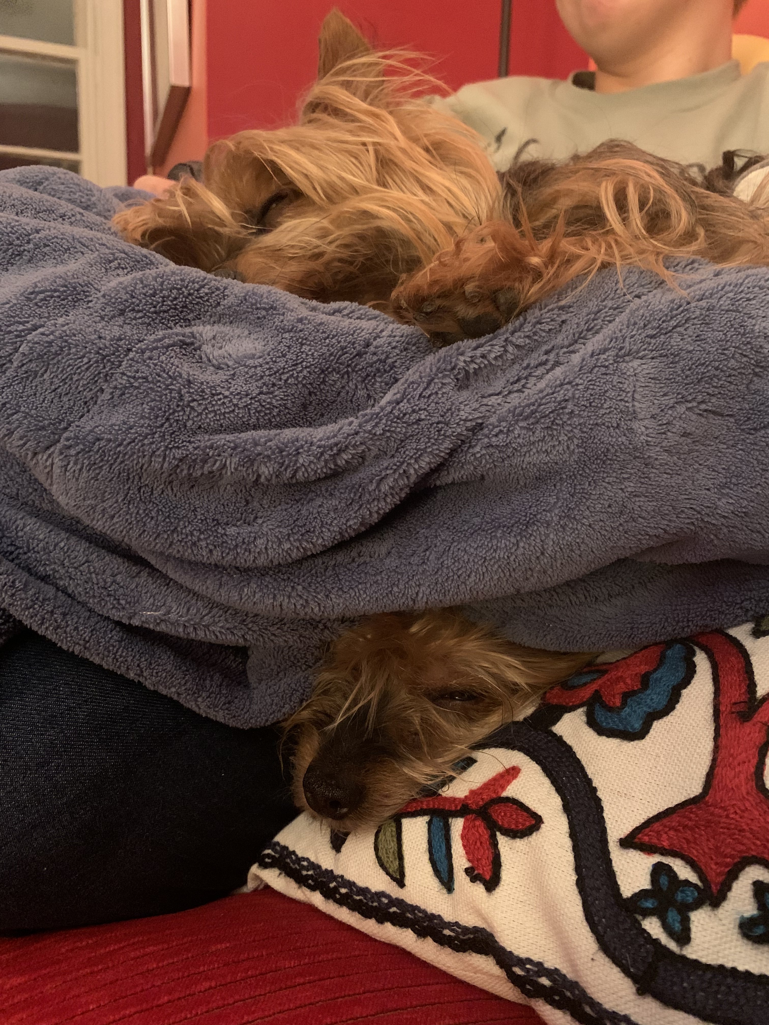 It’s never easy to see our furry friends uncomfortable. I’m sorry to hear about it. Hopefully this photo of our dumb one brightens your day just a tad