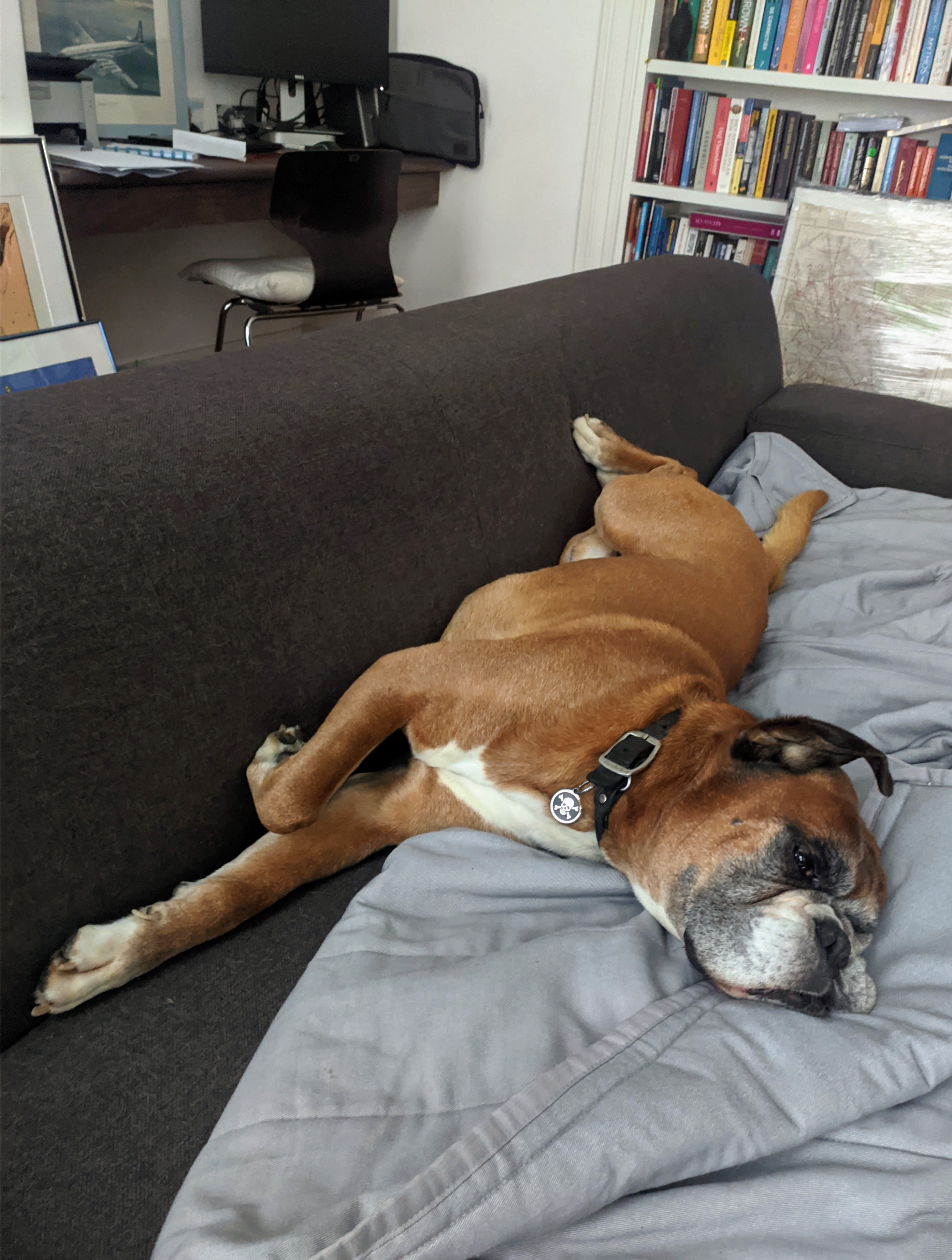 It’s time a fess up as I had another “dog incident”. This time no teeth or pain involved but after I worked with the dogs owner he asked me to check it out see if I thought the doggy was health. The dog is ten years old, weighs 75lbs but has no problem going from laying down to standing up, fur coat shiny, I saw no signs of teeth irritation and it’s very happy that’s about the extent of my vet skills so I deemed the dog healthy. Although it’s nails should be clipped. Now here is the rub. At the end of my expert 2 minute dog health exam I took the dogs cactus chew toy and threw it across the living room. I did not realize this 10 year old 75lb doggo thinks it’s a puppy and charged after the rubber squeaky cactus knocking over a small table and sent a flat screen TV that was set up on a cheap stand rocking back and forth. I had to move quick as I’m pretty sure that TV would have toppled probably cracking the screen. The dog can move pretty quick but it appears stopping quick is a different story. So it was my second dog incident this month.